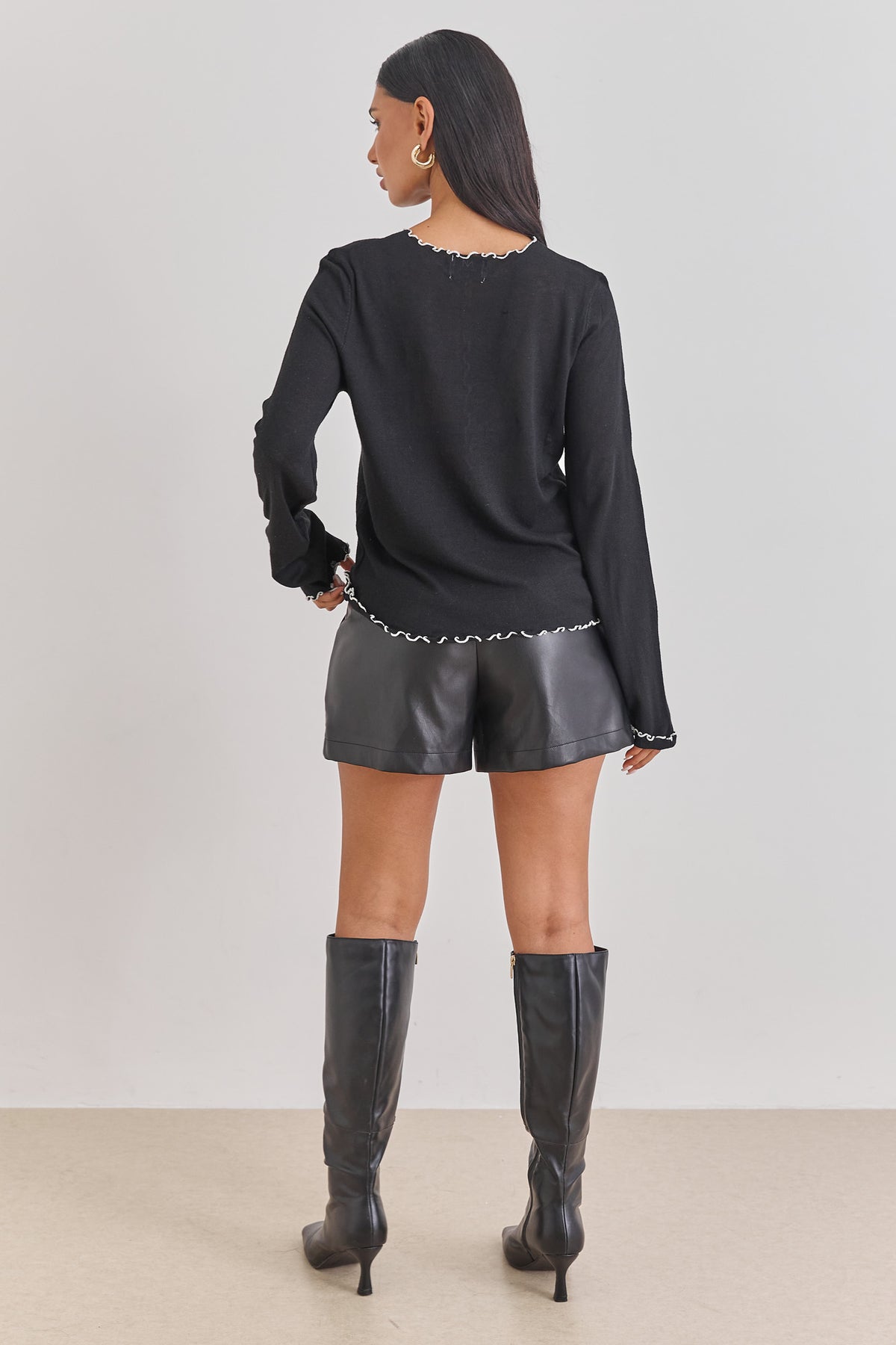 חולצת סריג דק ומעט שקפקף, בשילוב תיפורי בייבילוק בולטים