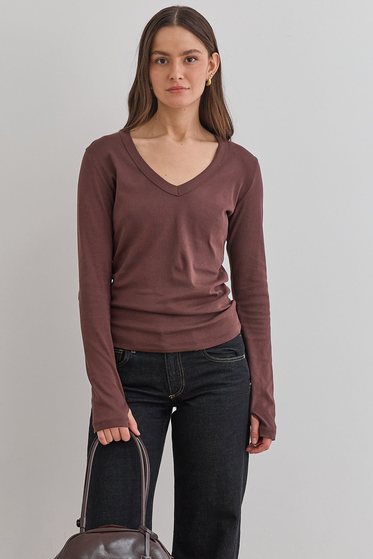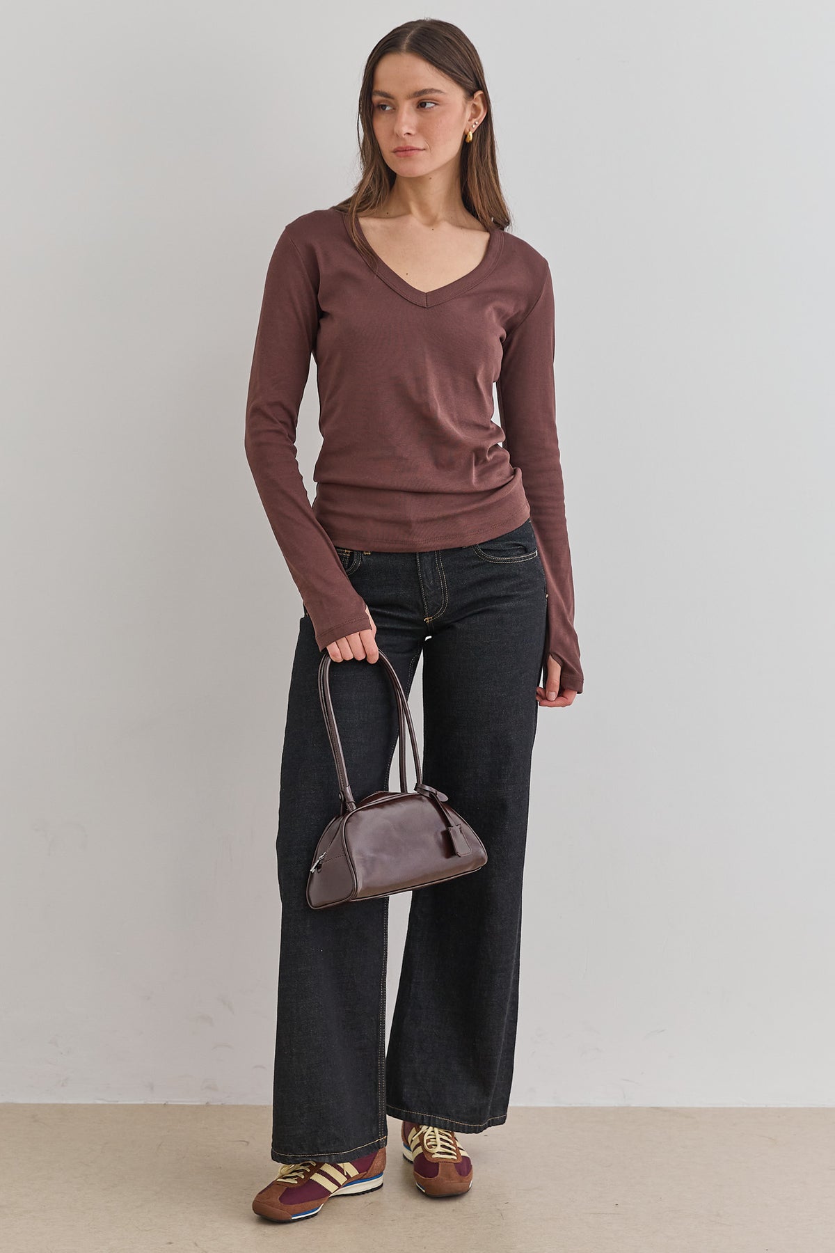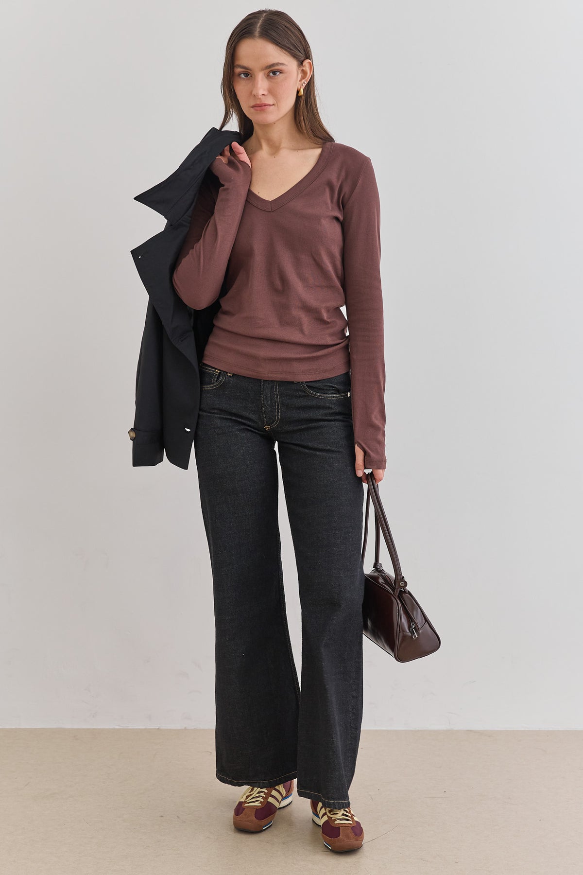 חולצת בייסיק בשילוב מחשוף וי ושרוול כפפה