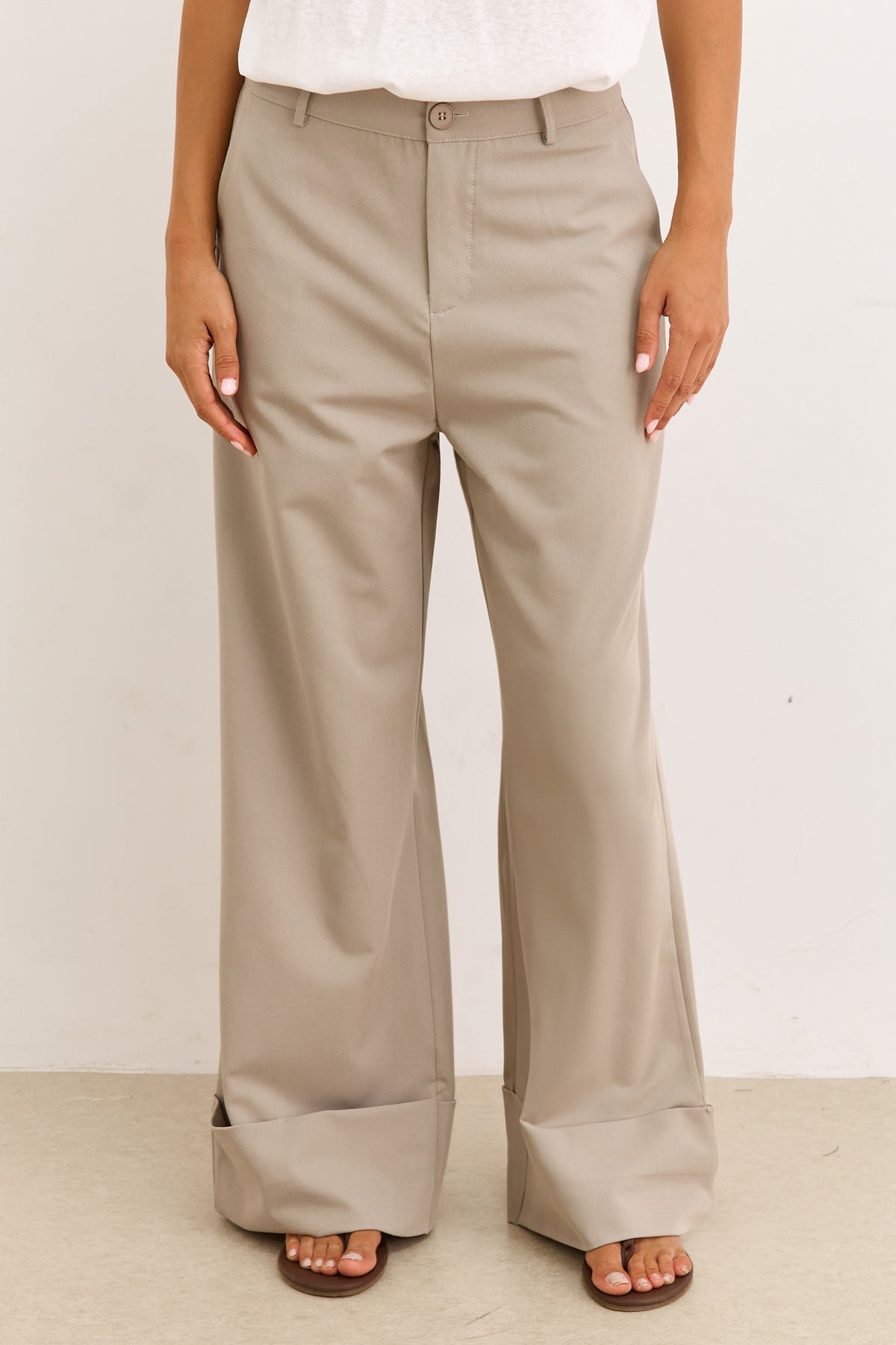 מכנסיים ארוכים בגזרה מחויטת וסיומת קיפול