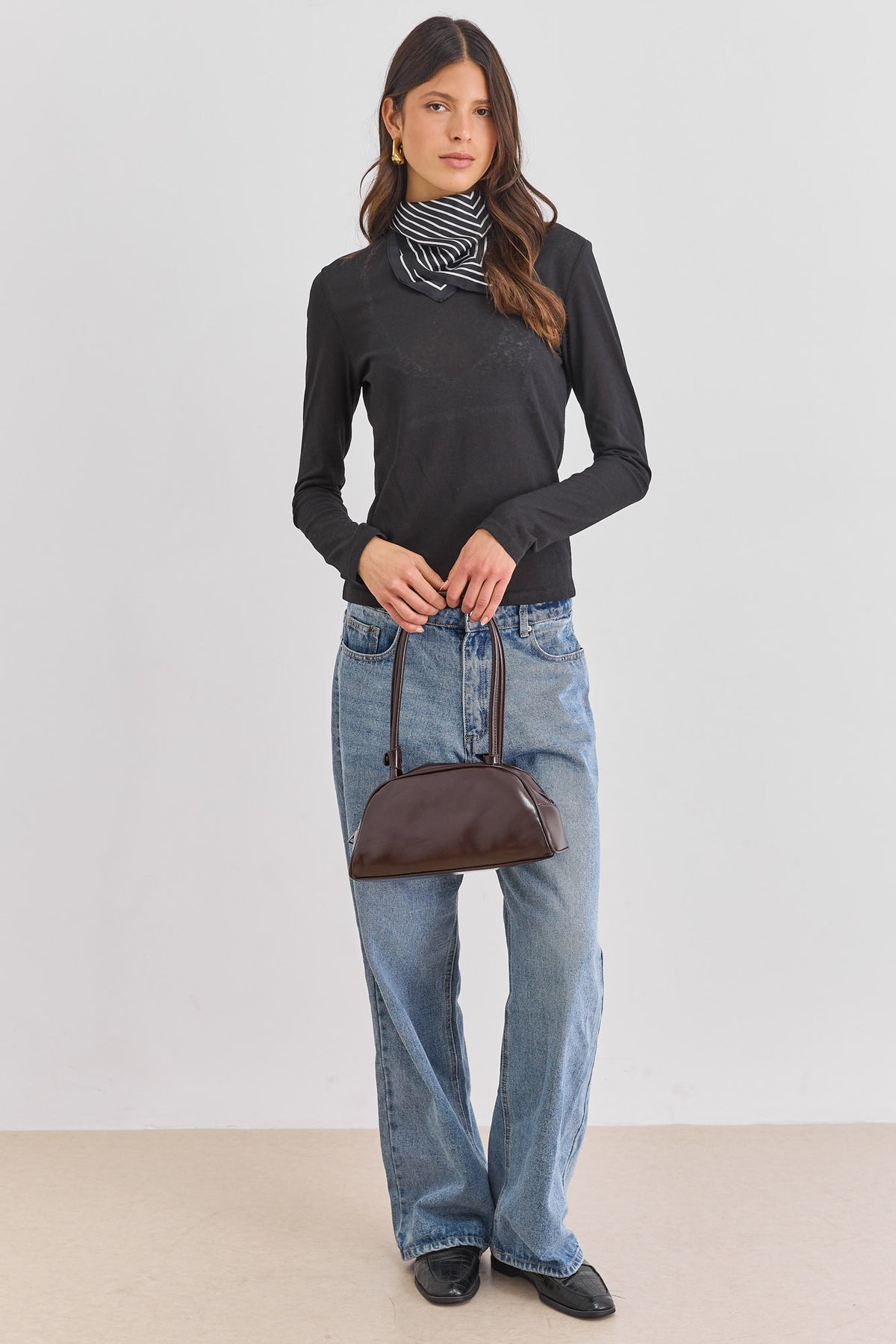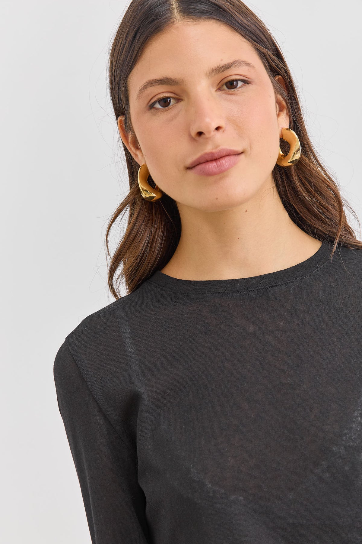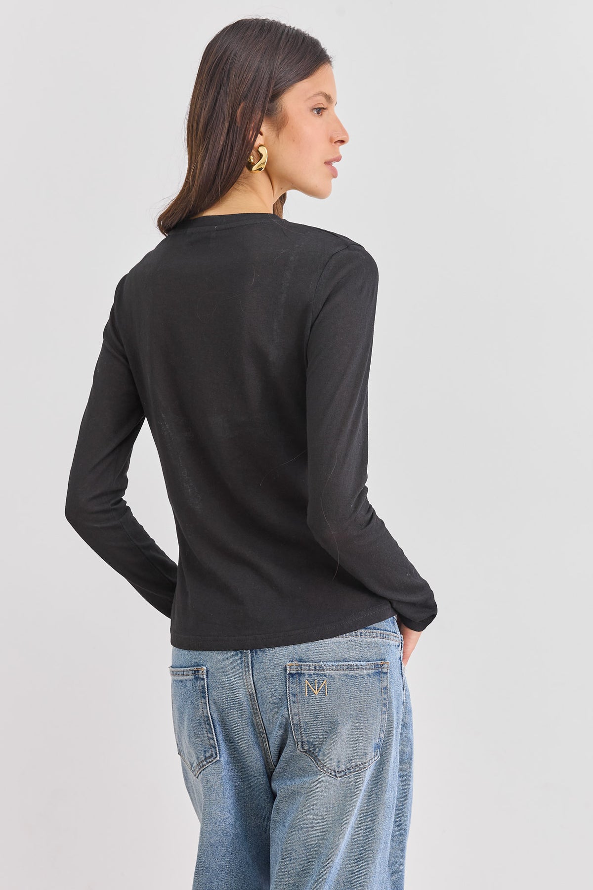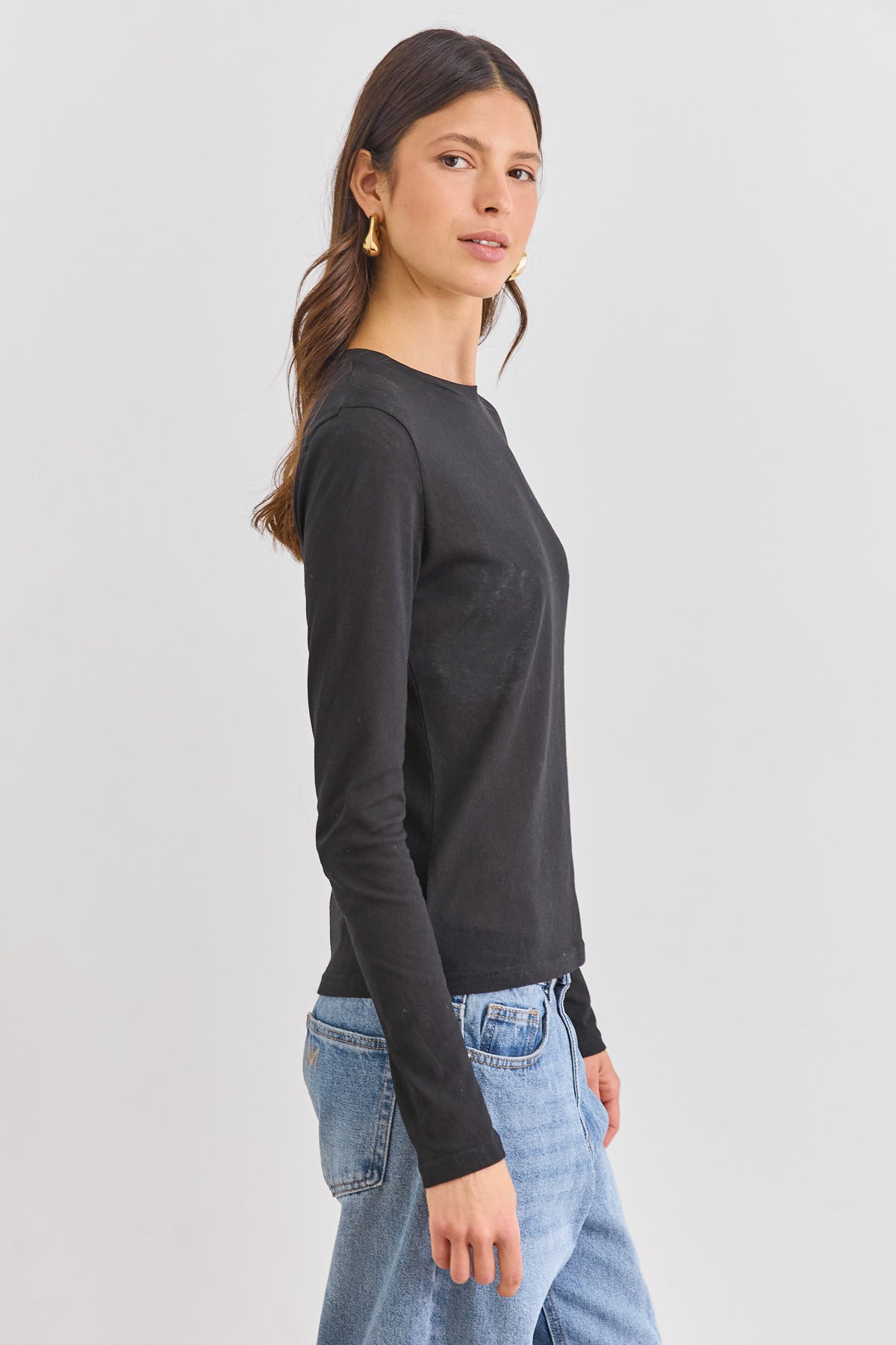 חולצה דקיקה מבד שקפקף עם צווארון ניקי ושרוולים ארוכים