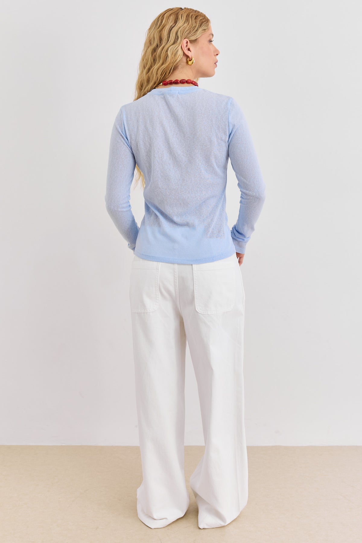 חולצה דקיקה מבד שקפקף עם צווארון ניקי ושרוולים ארוכים