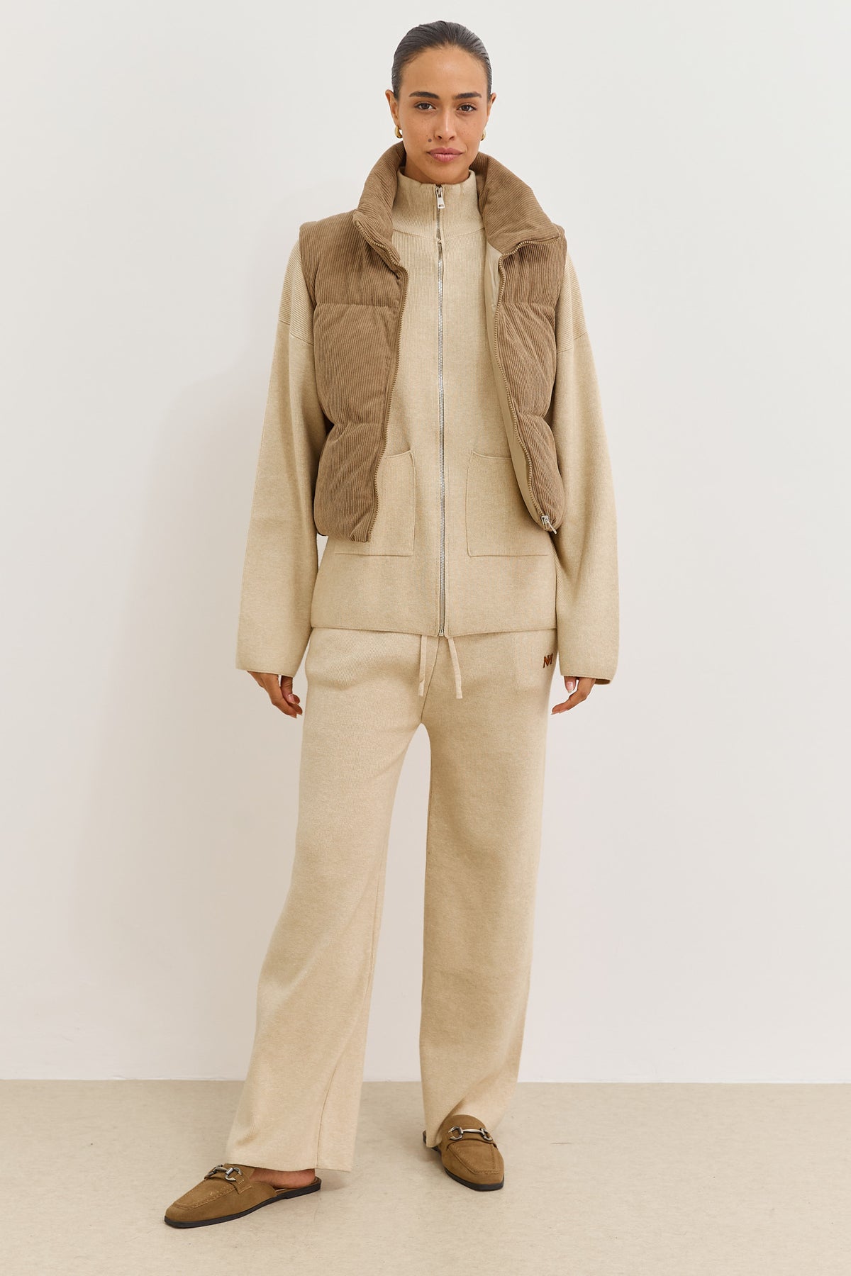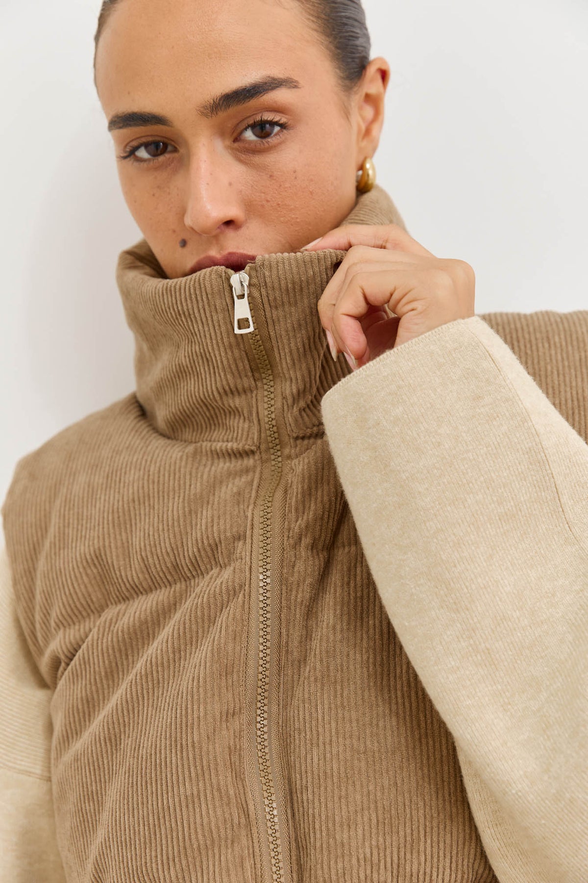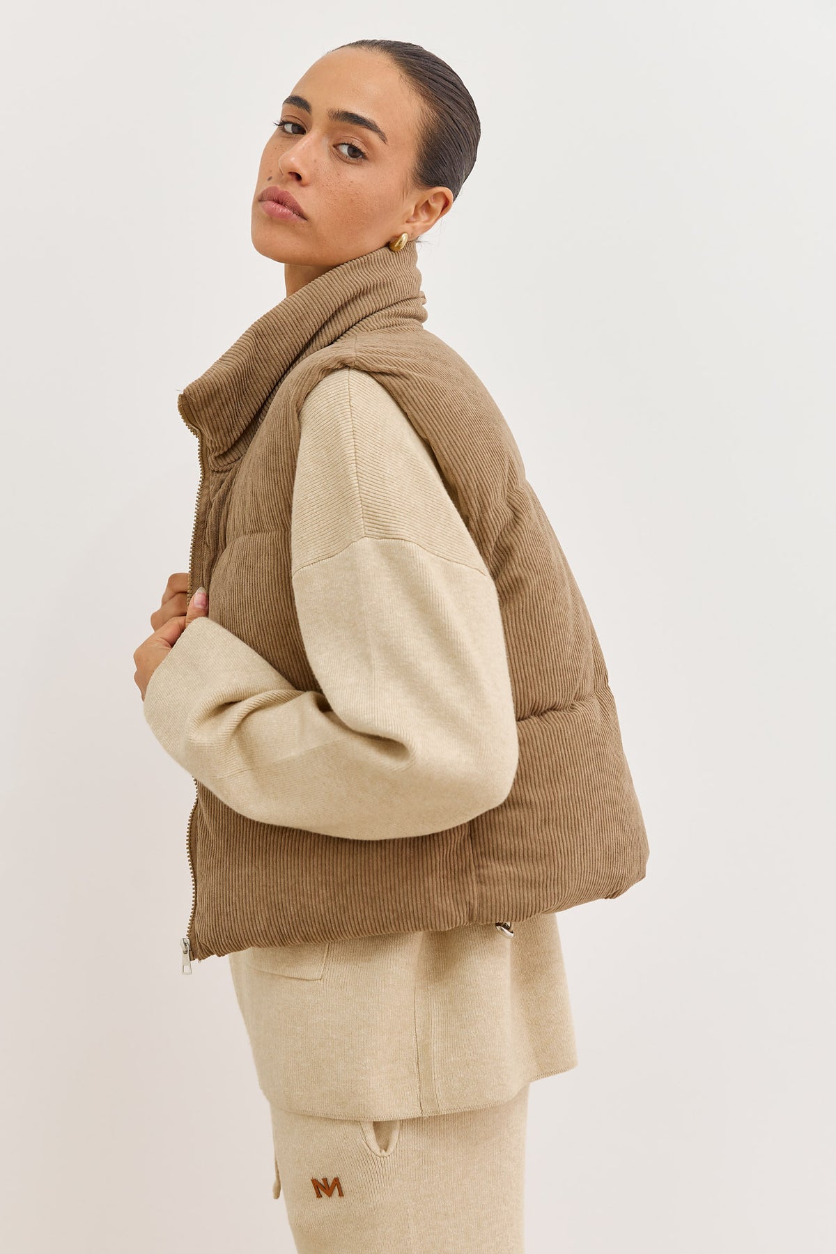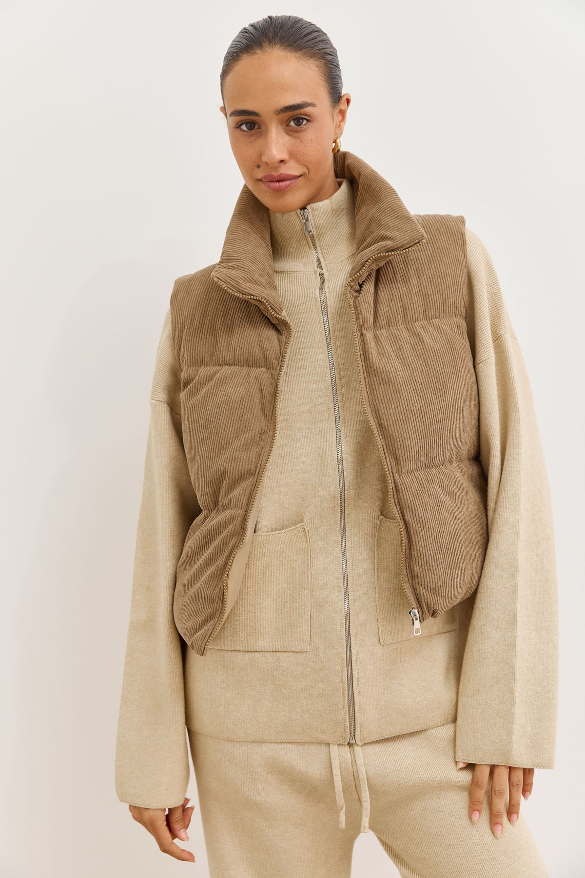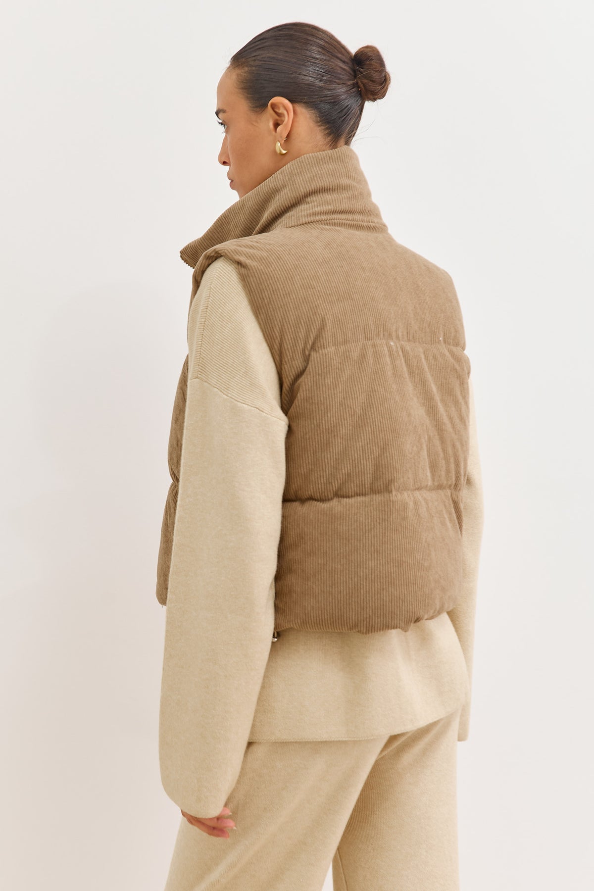 ווסט מרופד מבד קורדורוי בשילוב צווארון גבוה וסגירת רוכסן