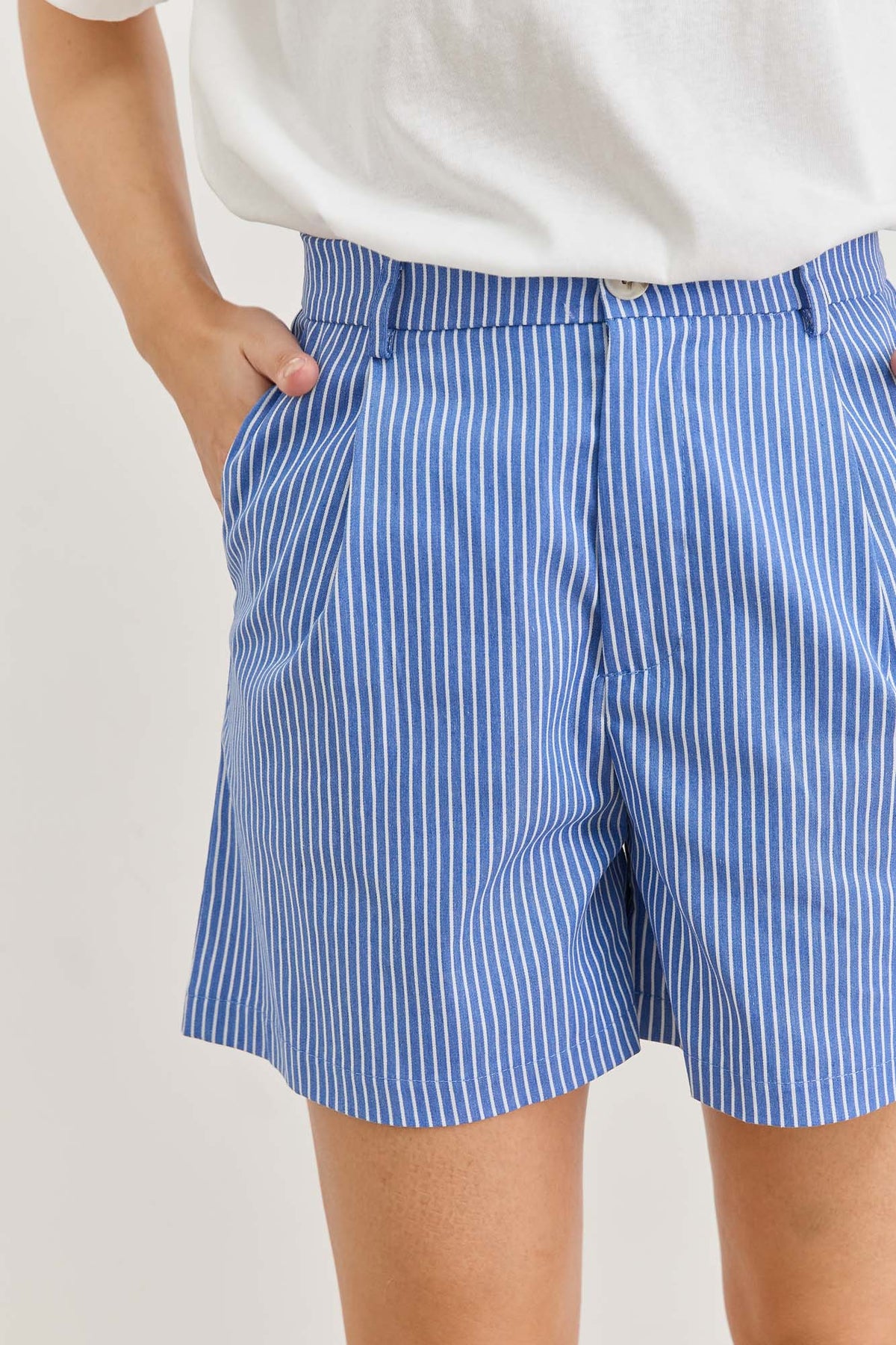 מכנסיים מחויטים בגזרה ישרה ובשילוב הדפס פסים