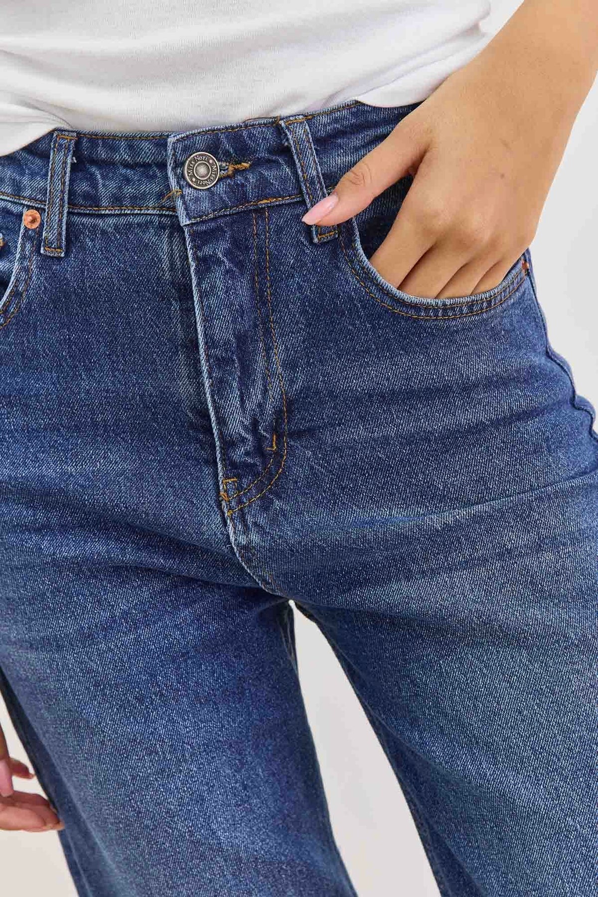 מכנסי ג'ינס בגזרה ישרה עם מכפלת גזורה
