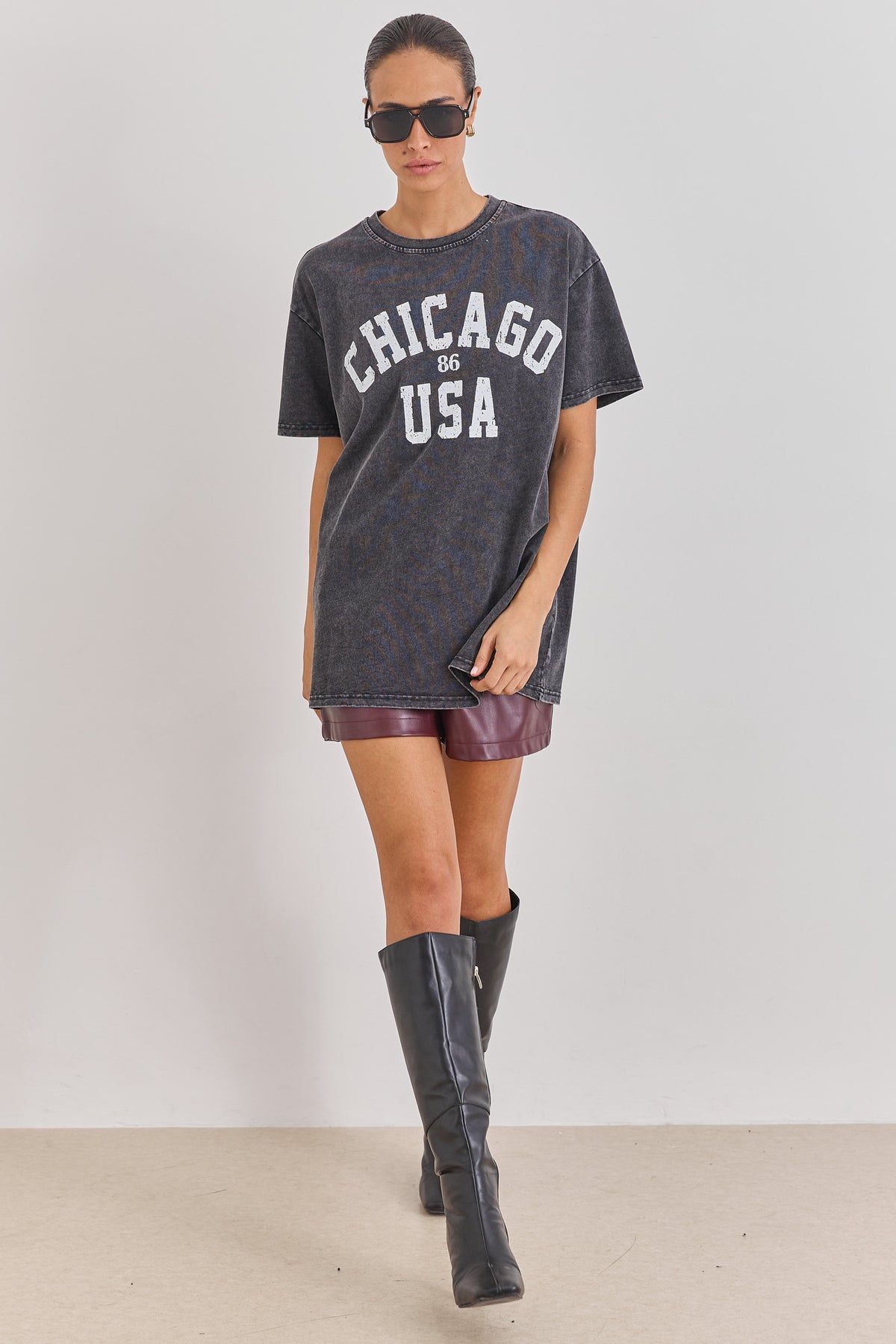 טי שירט אוברסייז CHICAGO וואש | שחור