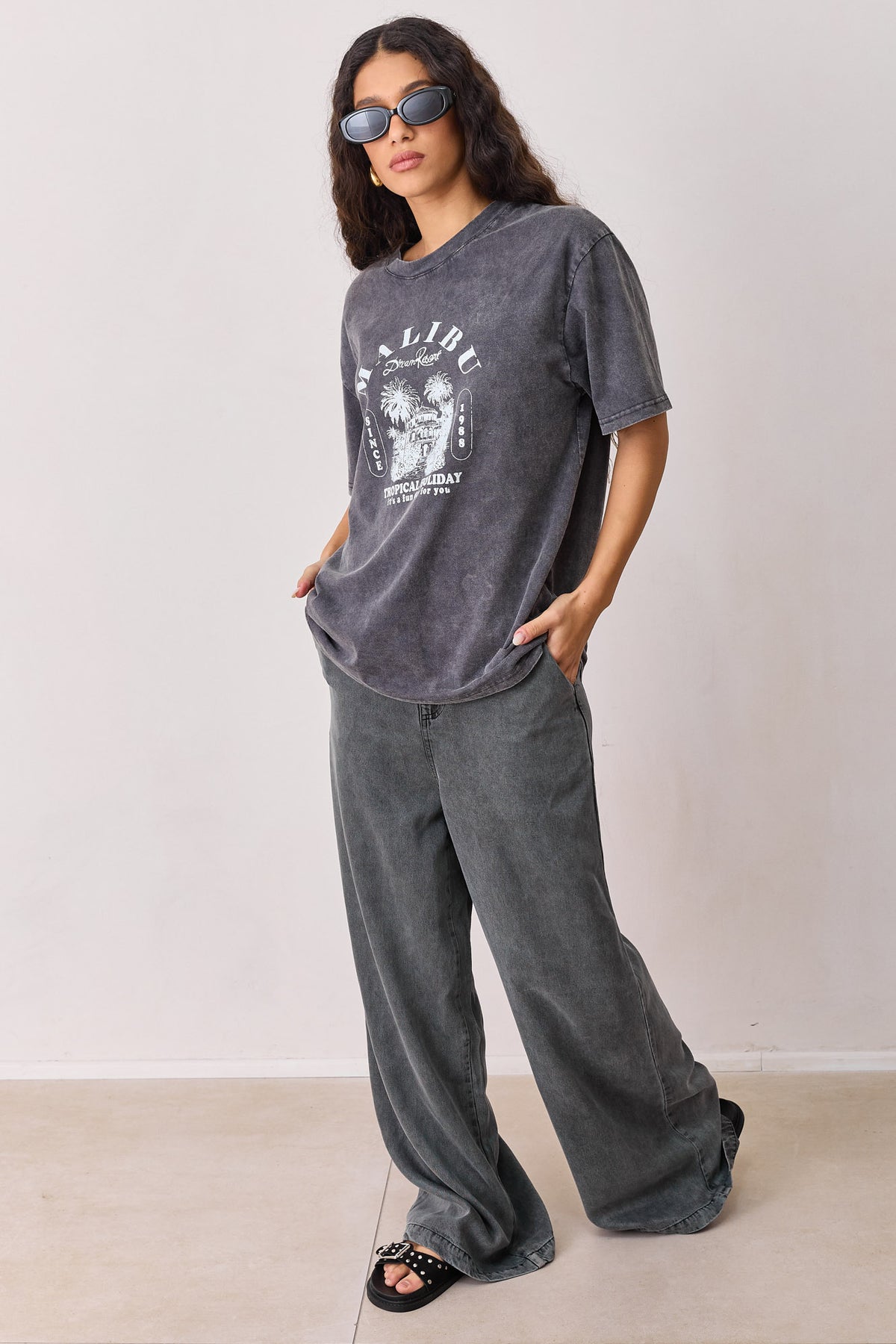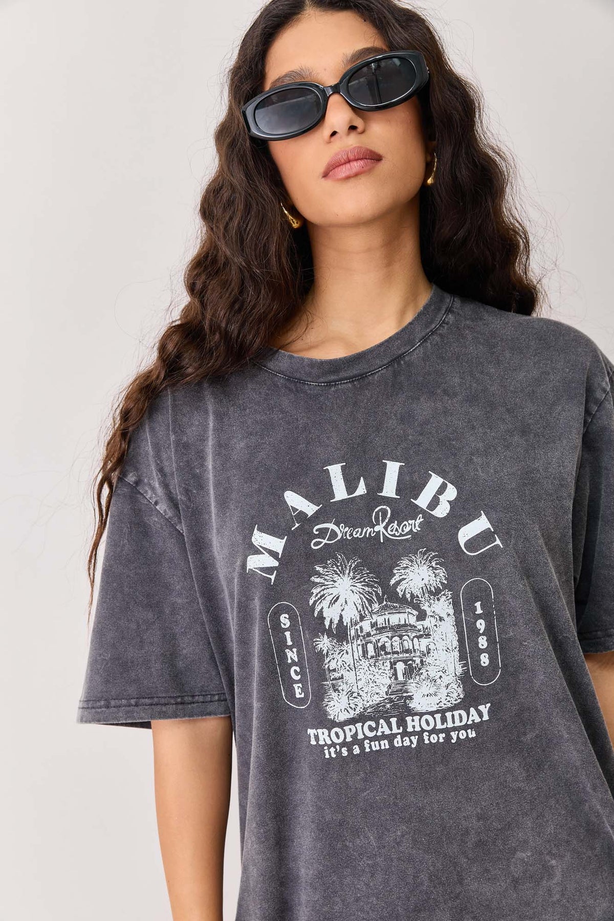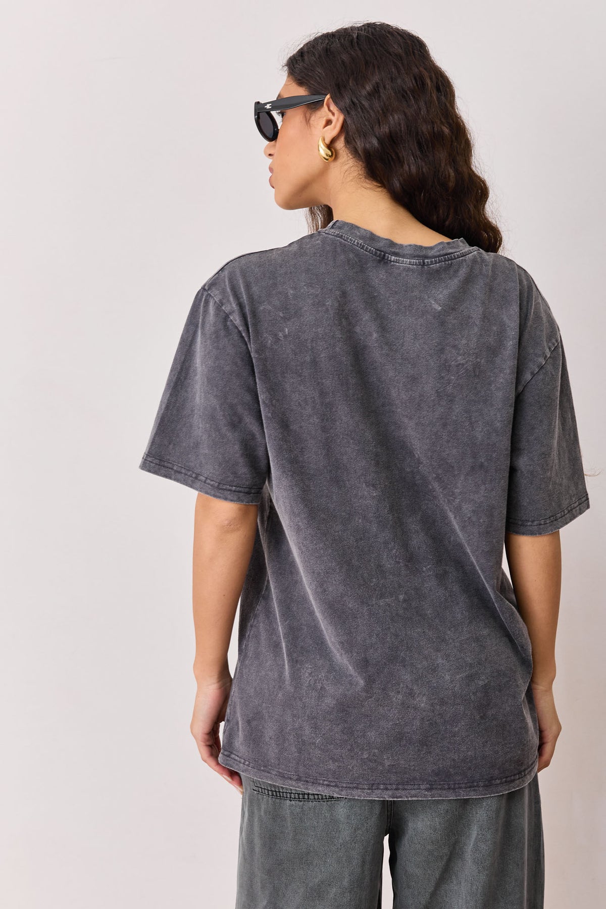 טי שירט אוברסייז בשטיפת וואש בשילוב פרינט קדמי