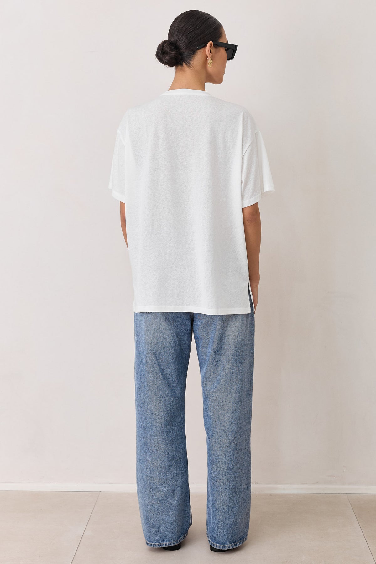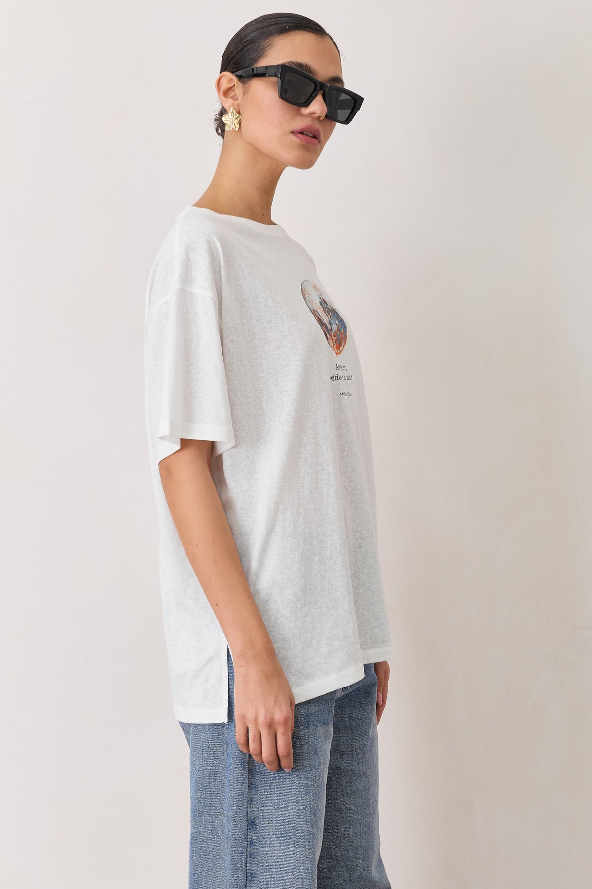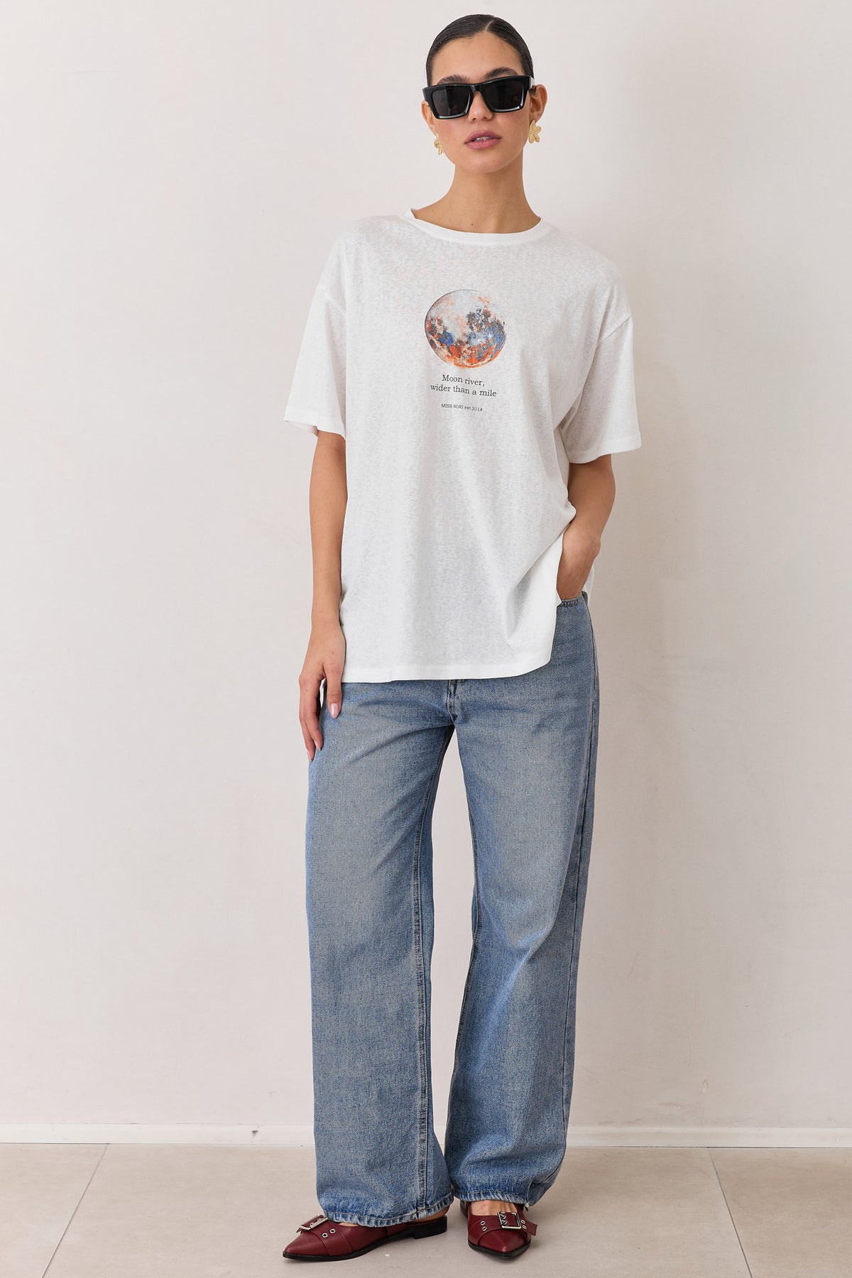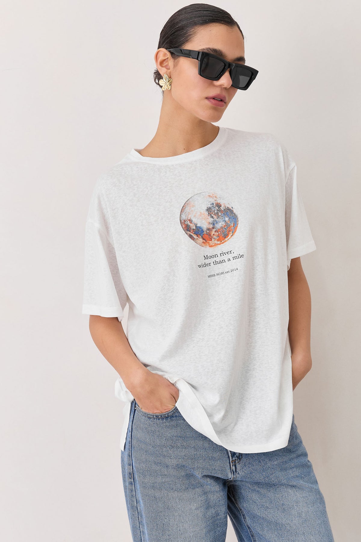 טי שירט בגזרת אוברסייז מבד שקפקף בשילוב פרינט קדמי