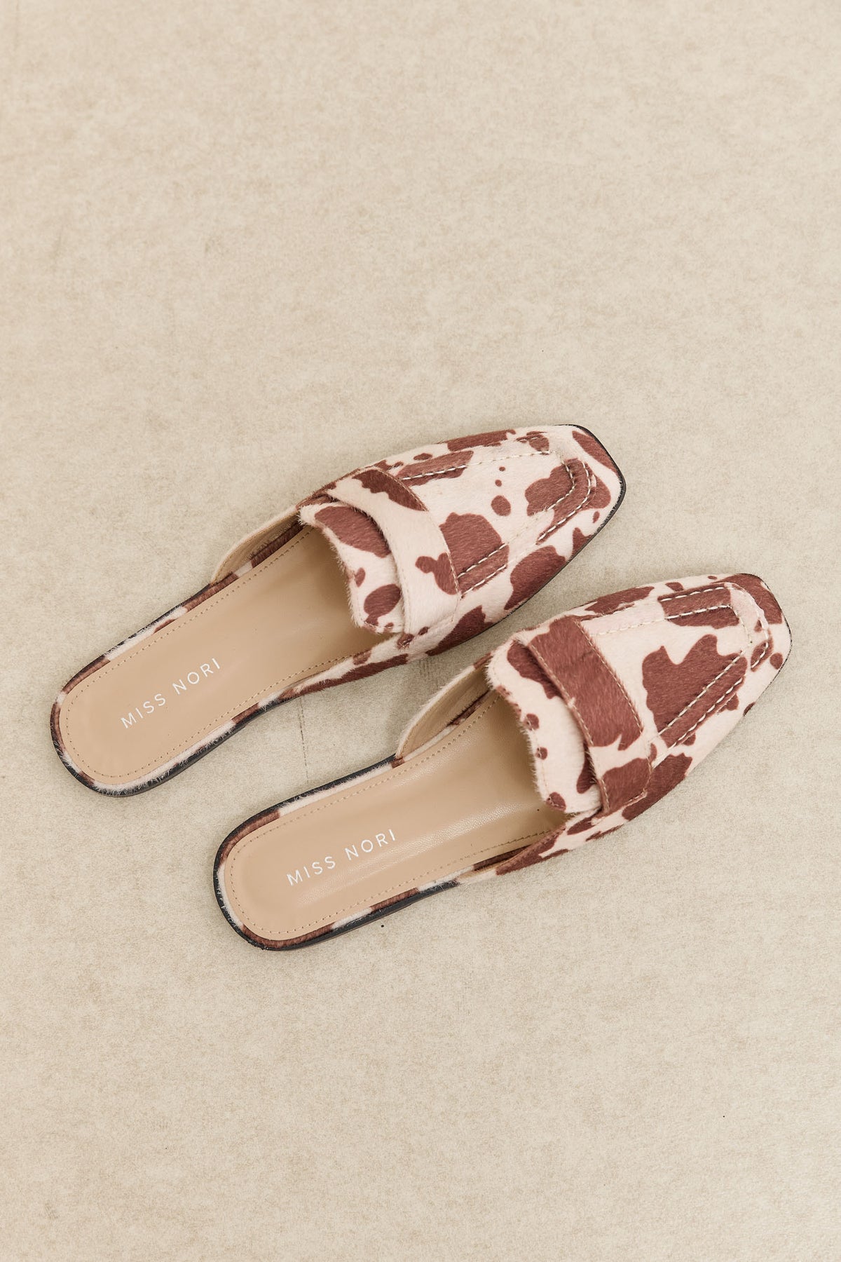 כפכפי מוקסין שטוחים דמוי זמש בשילוב פרינט פרה