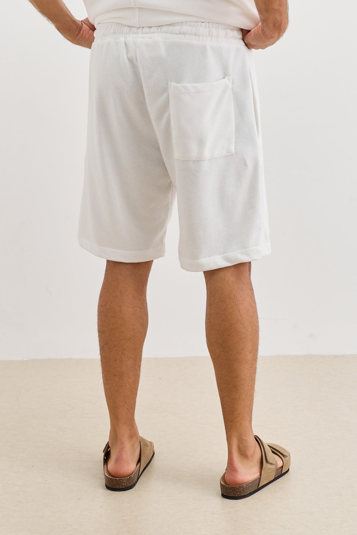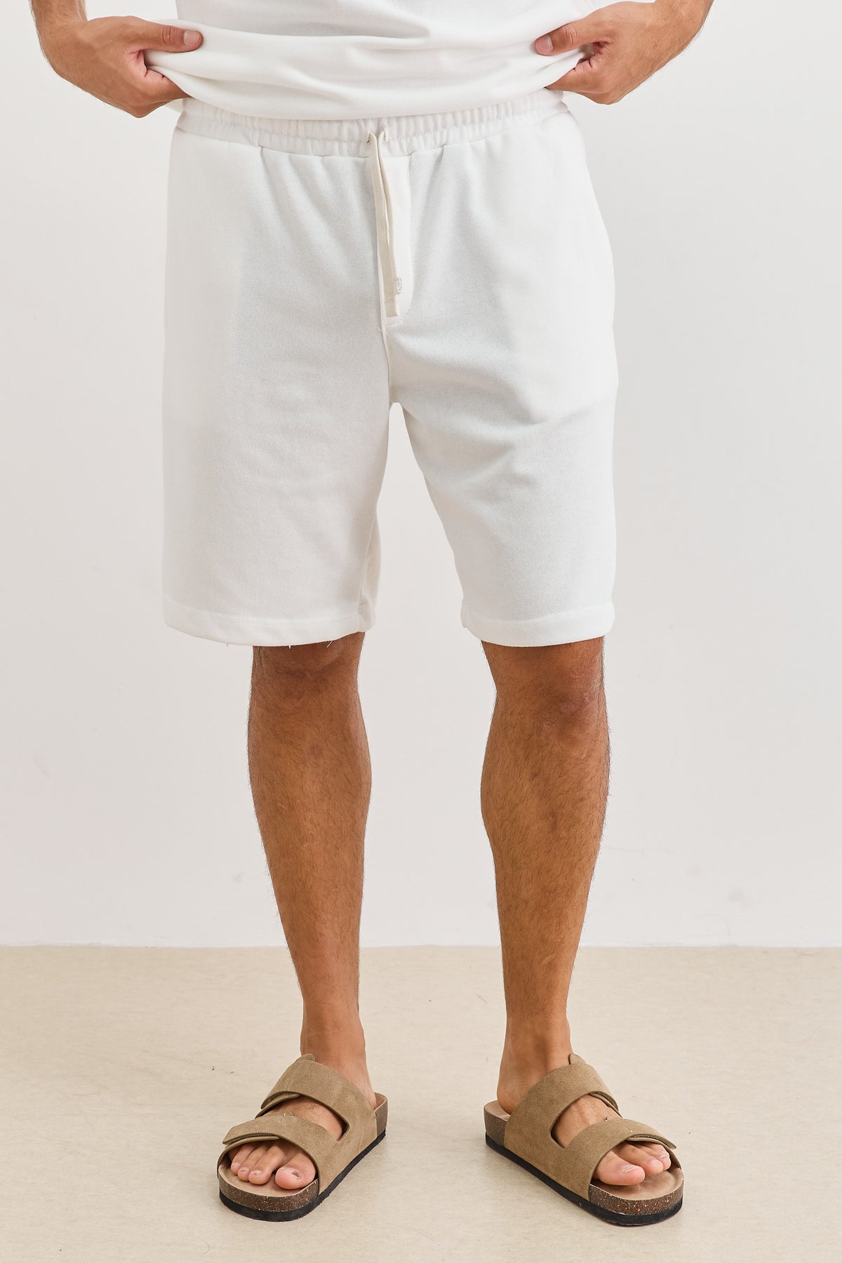 מכנסיים קצרים מבד פרנץ' טרי עם כיסים, גומי במותן, שרוך וכיס אחורי