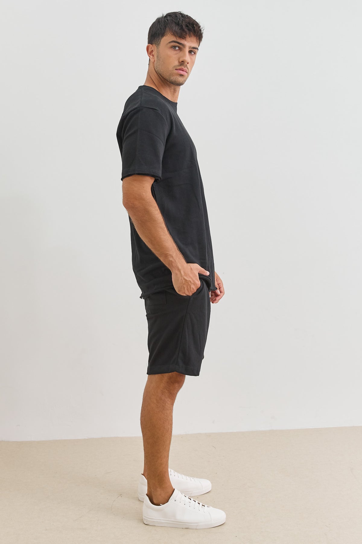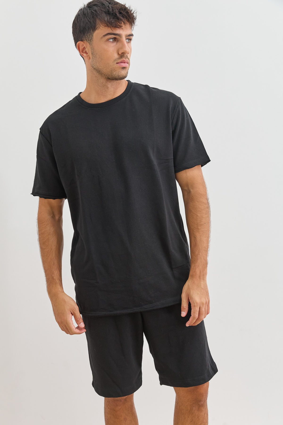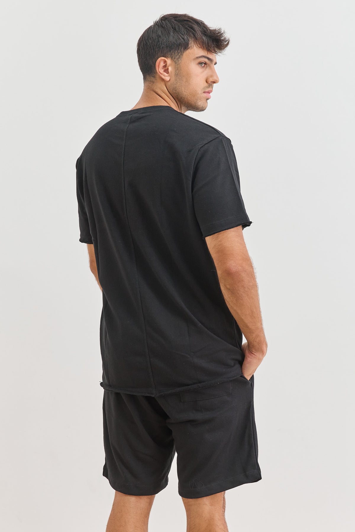 טי שירט תומאס פרנץ' טרי סיומת גזורה | שחור