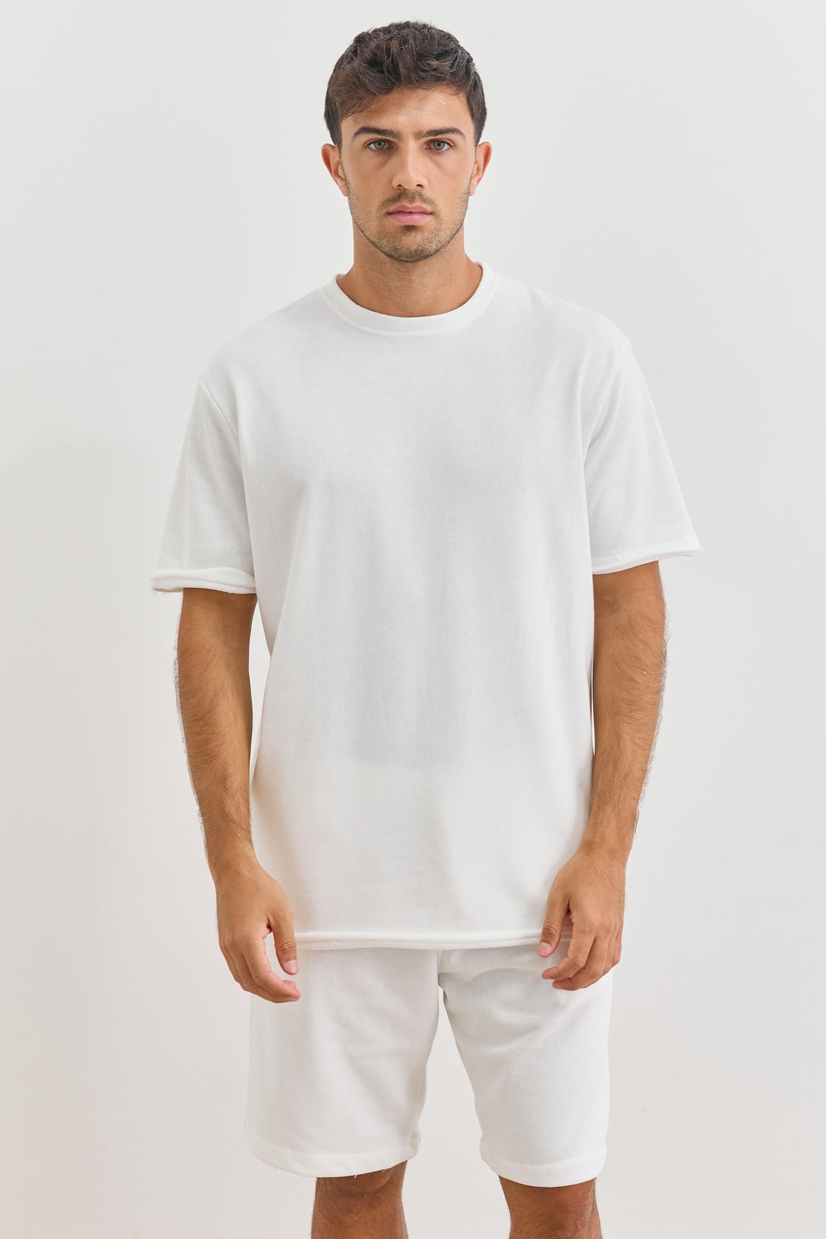 טי שירט תומאס פרנץ' טרי סיומת גזורה | לבן