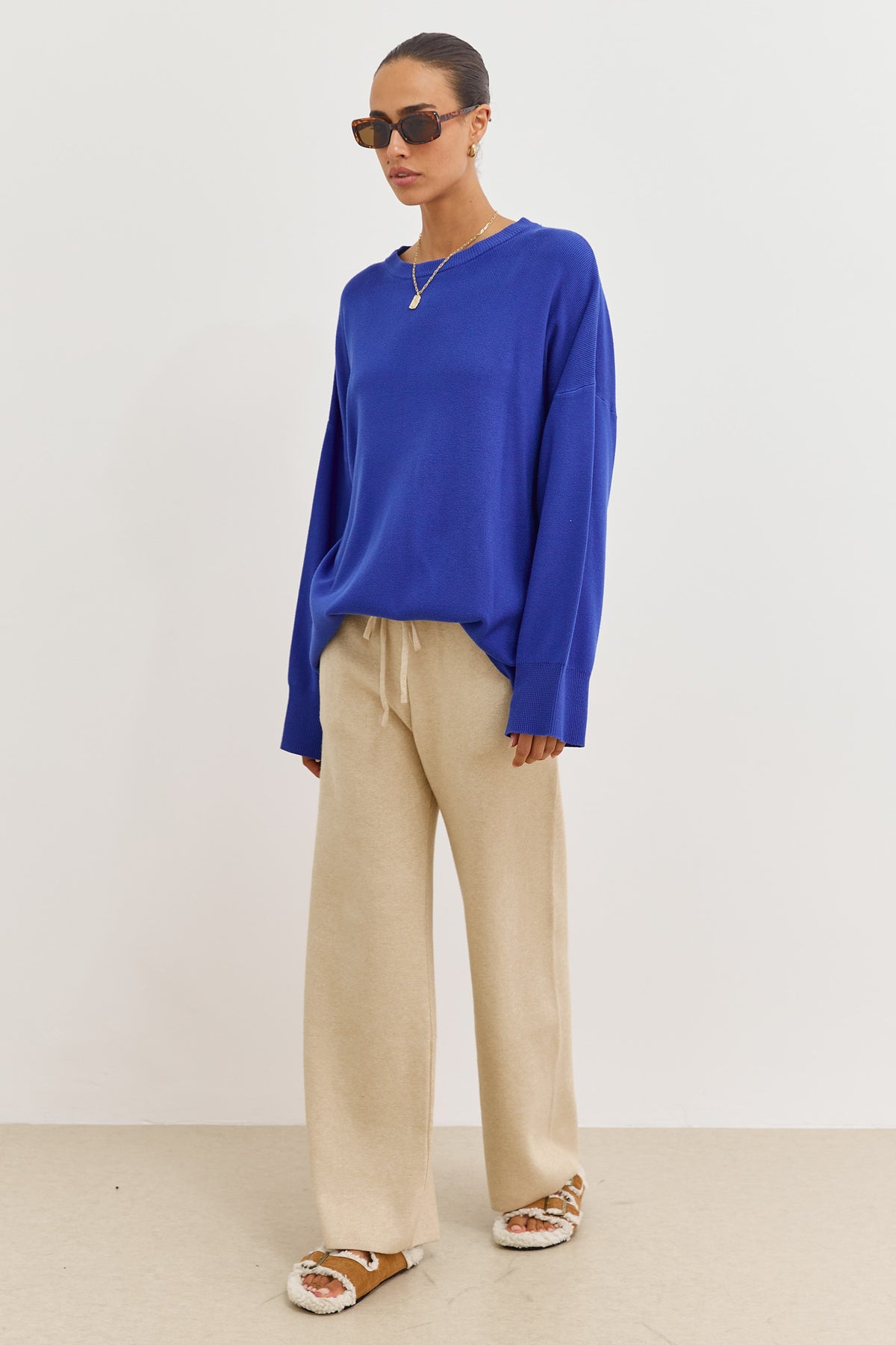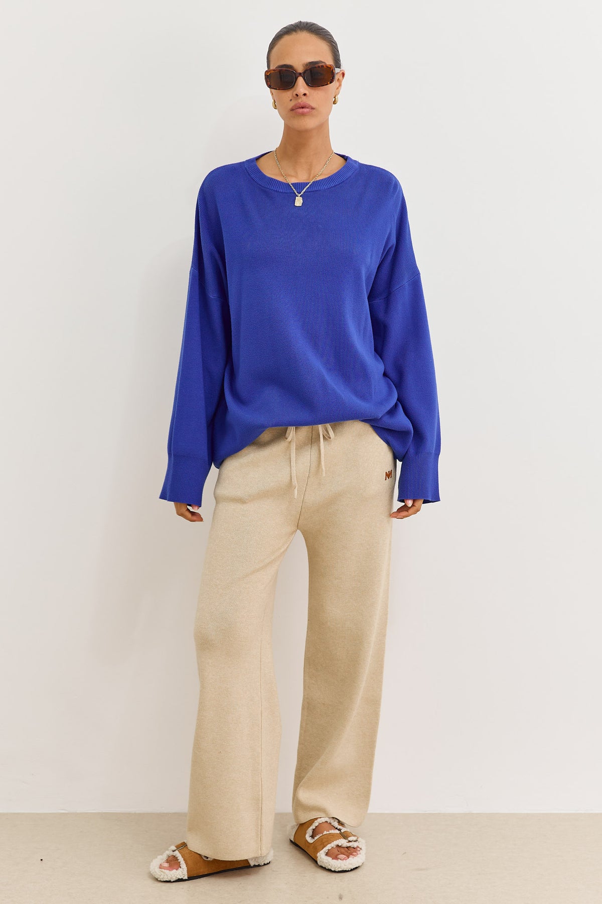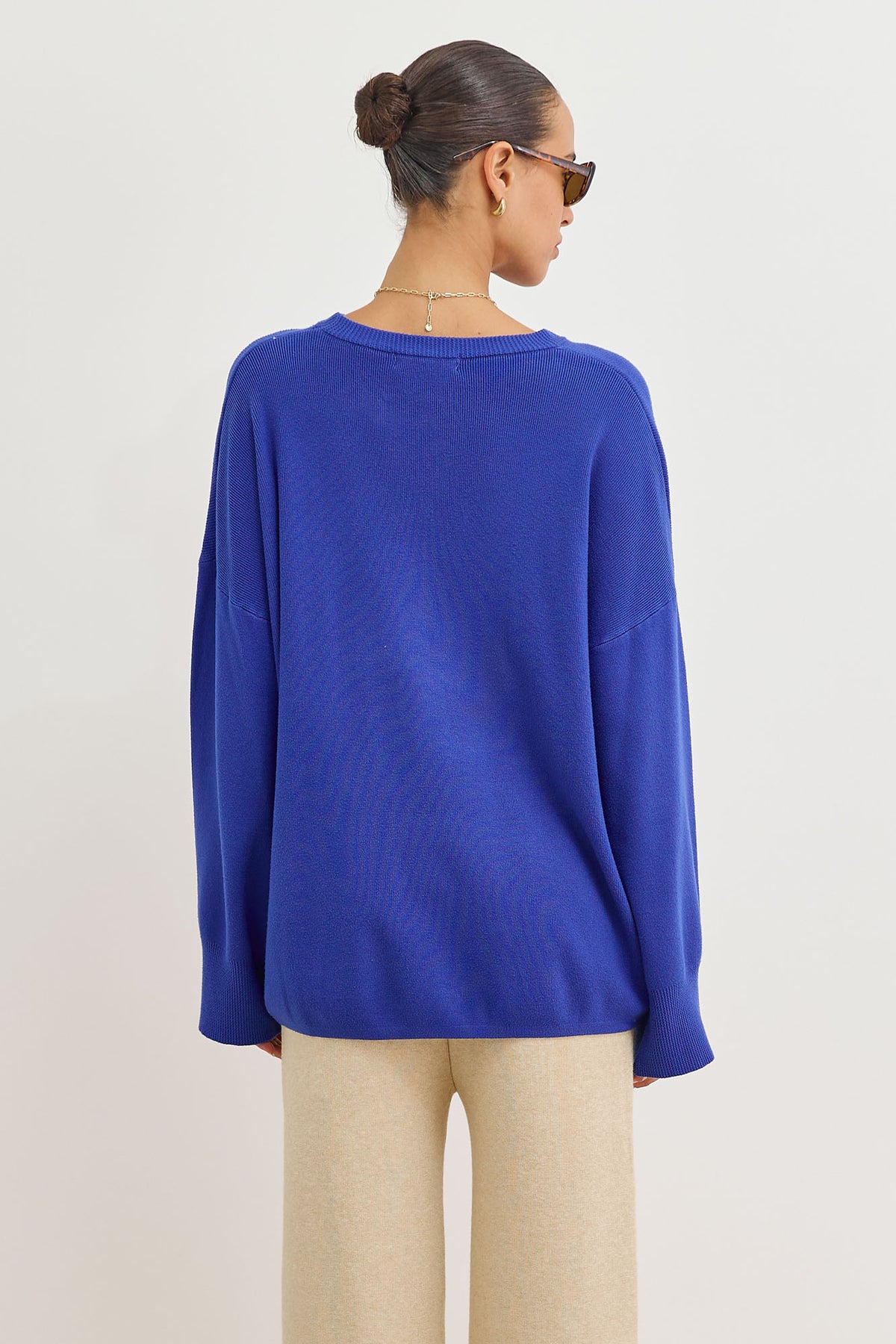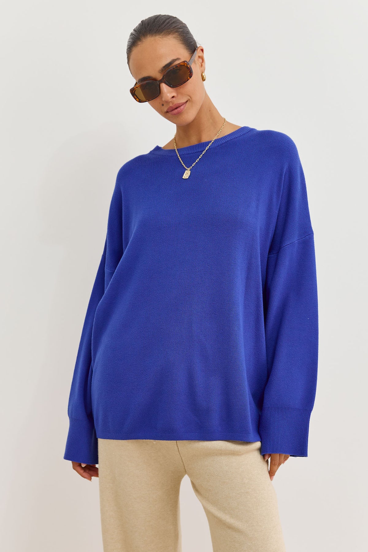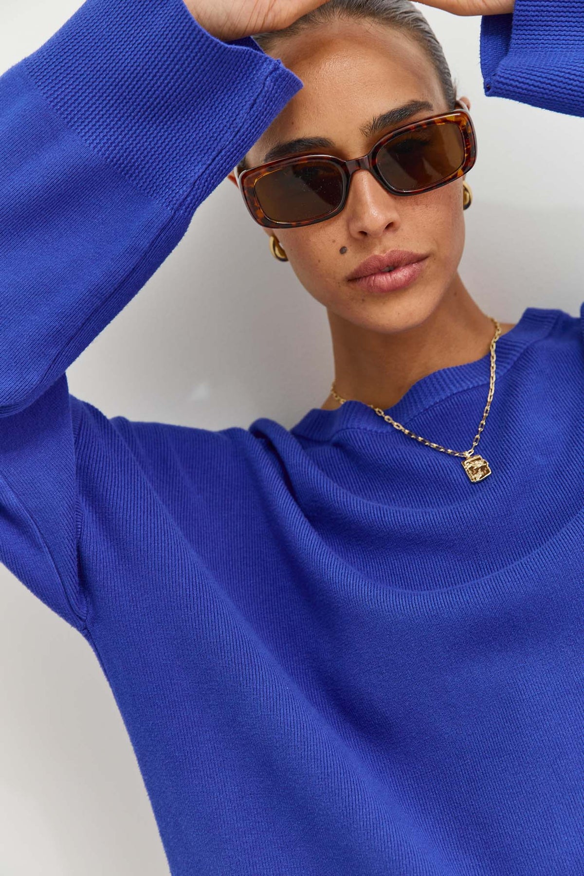 חולצת סריג בגזרת אוברסייז עם צווארון ניקי וסיומת מנג'ט