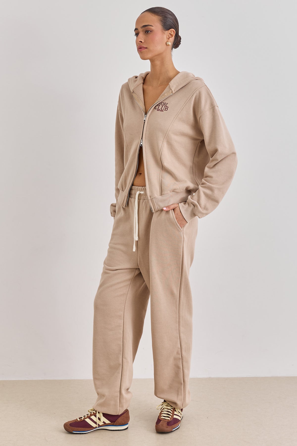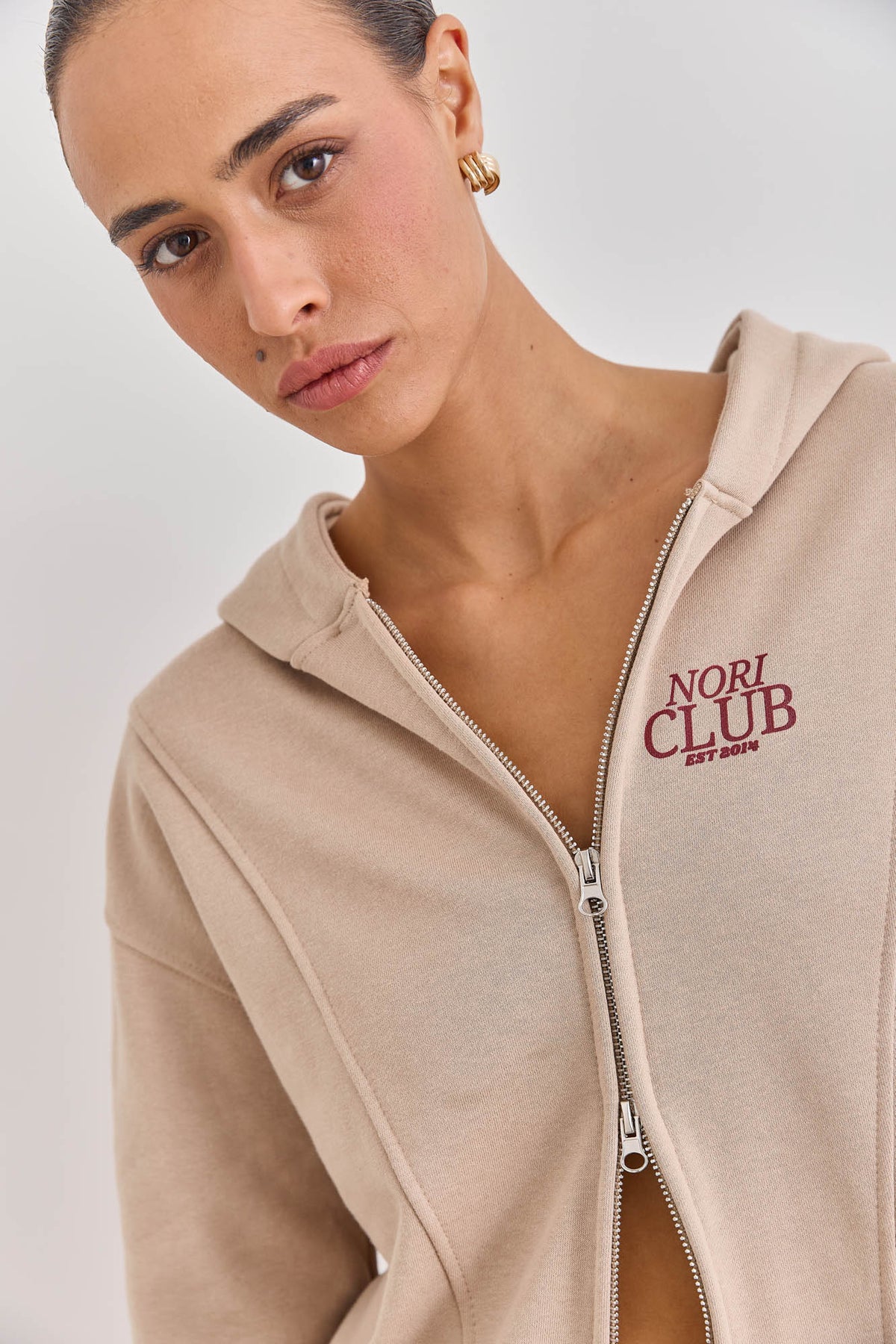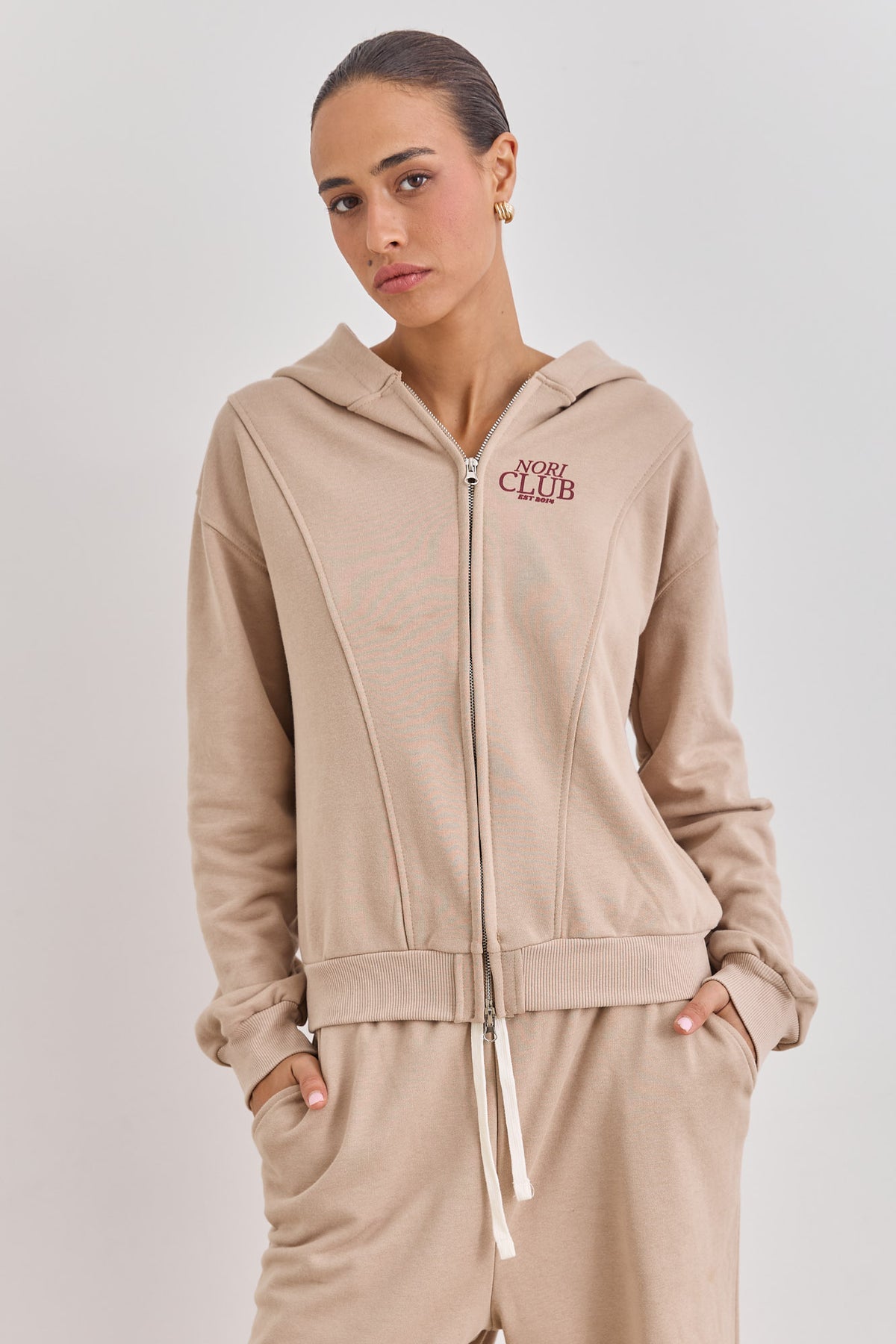 קפוצ'ון מבד פרנץ' טרי בשילוב לוגו ורוכסן כפול הניתן לרכיסה במגוון דרכים