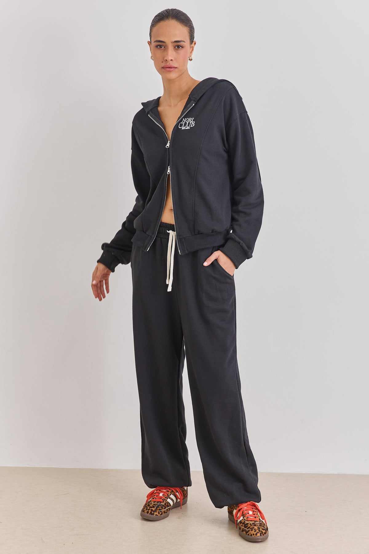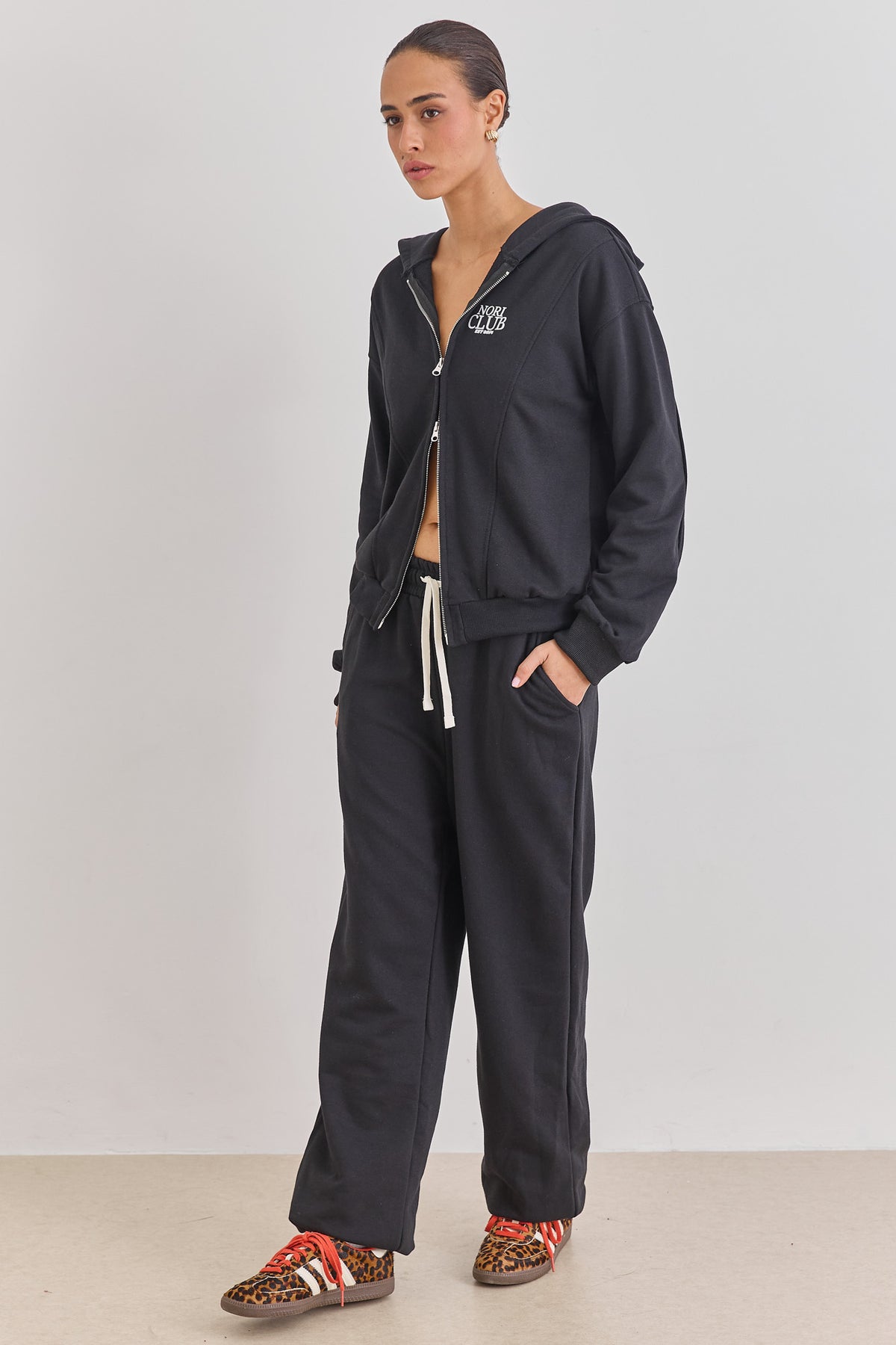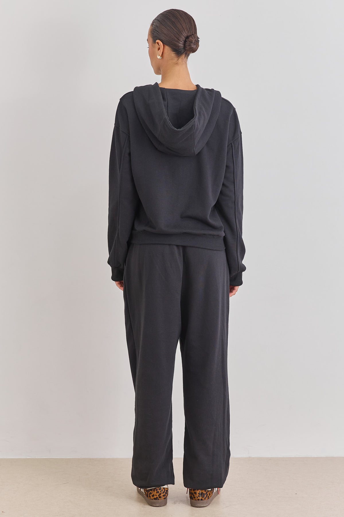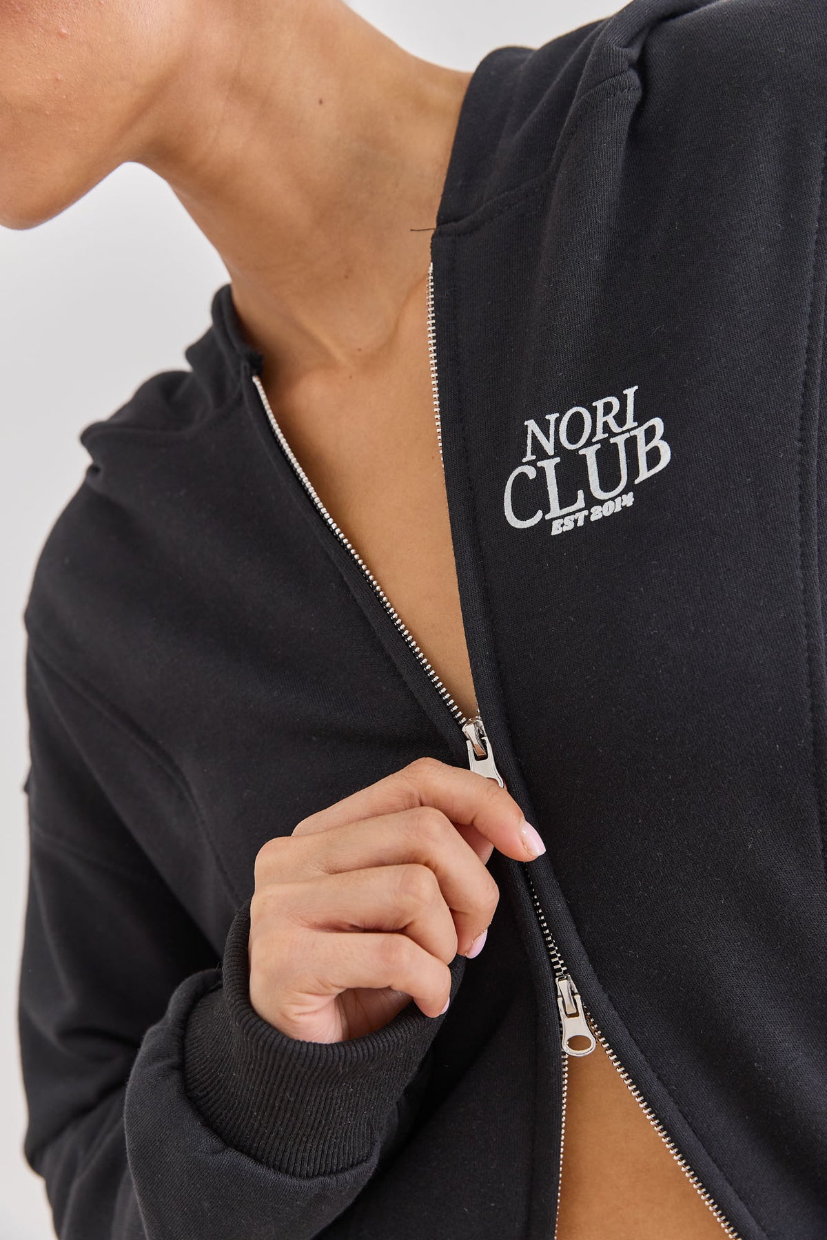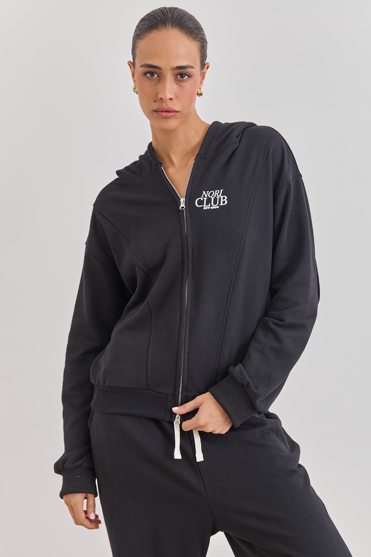 קפוצ'ון מבד פרנץ' טרי בשילוב לוגו ורוכסן כפול הניתן לרכיסה במגוון דרכים