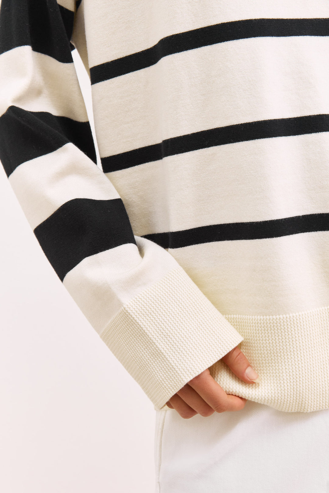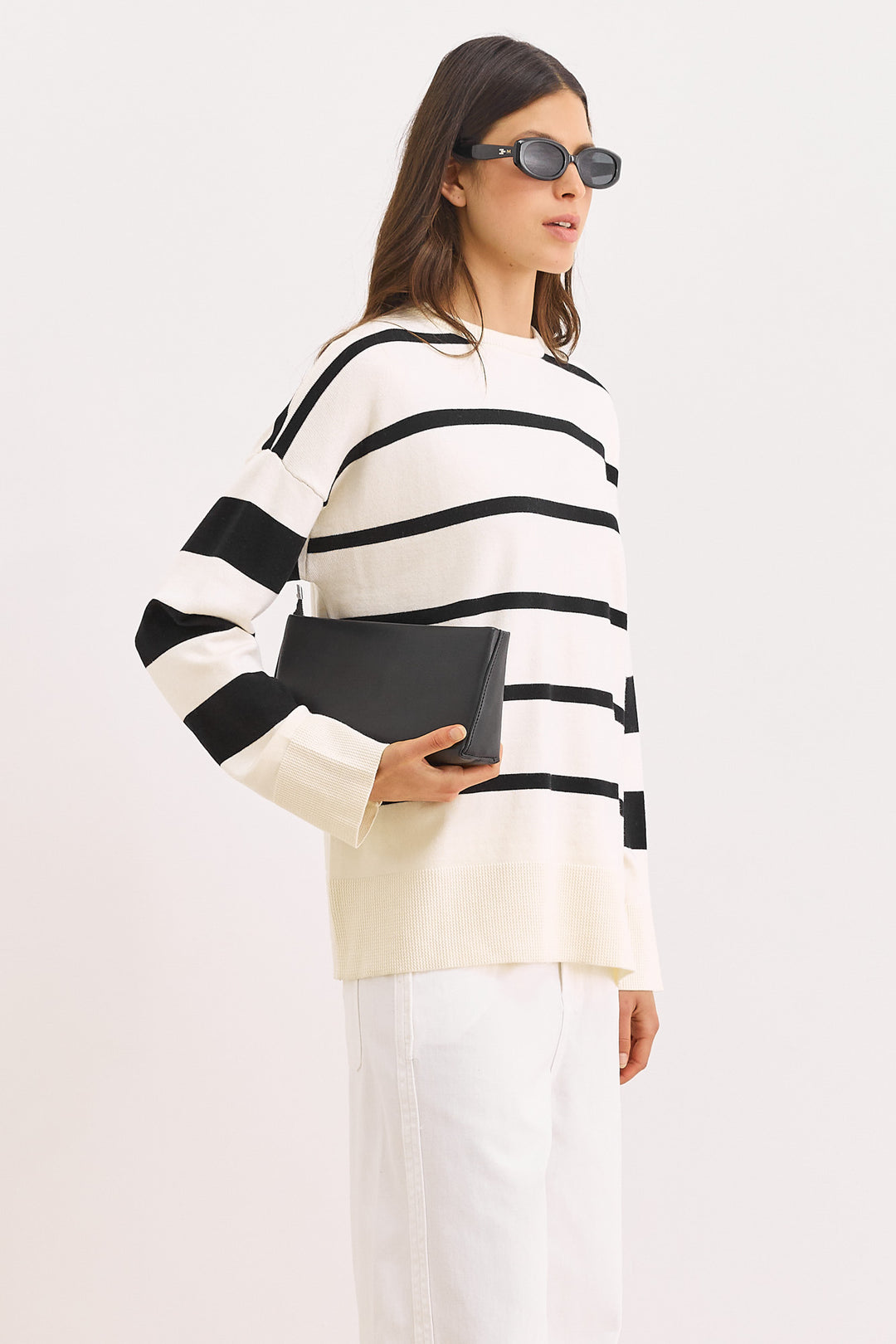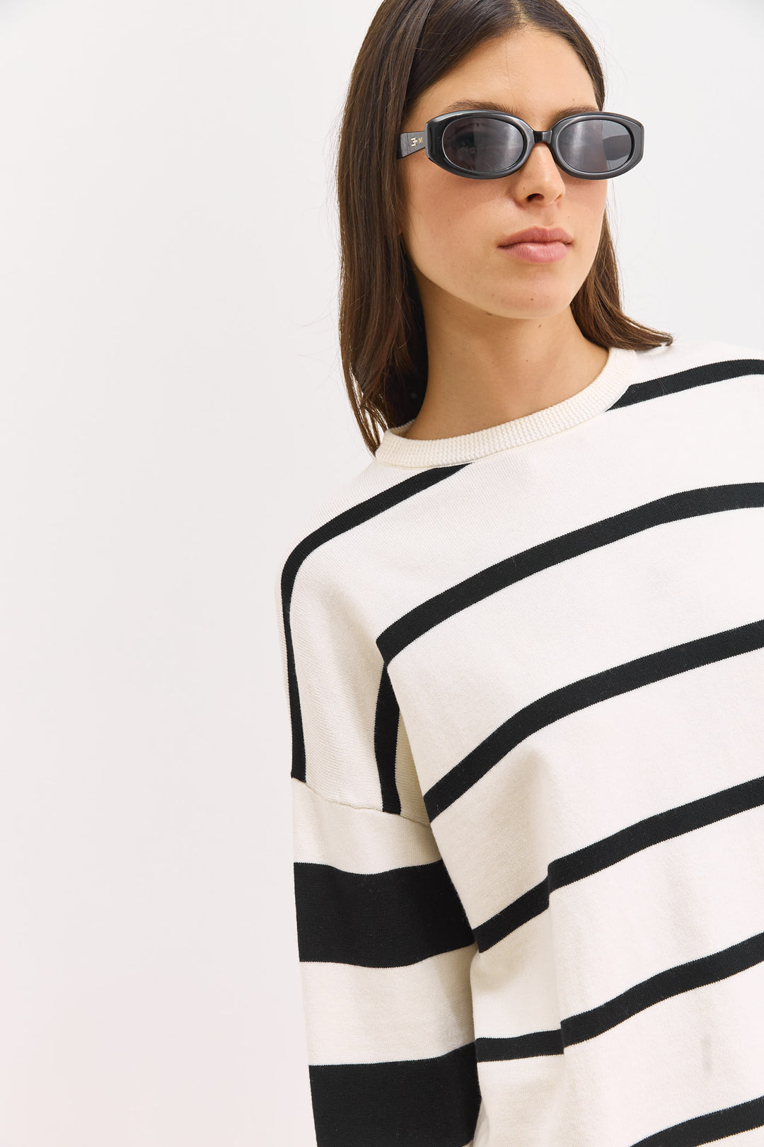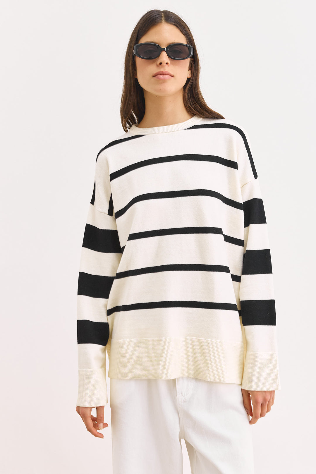 סריג אנאבל סטרייפס גזרת אוברסייז | קרם/שחור