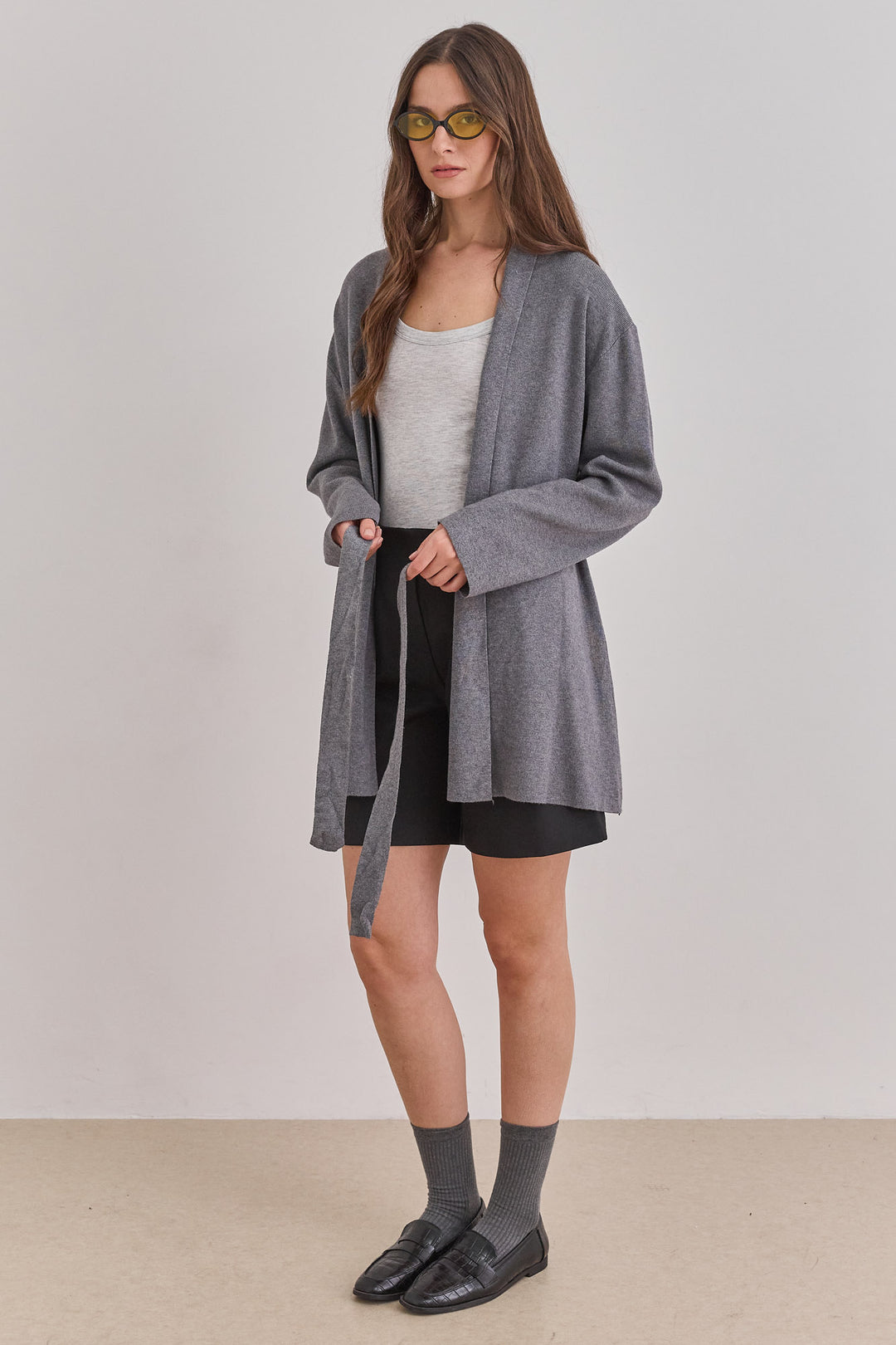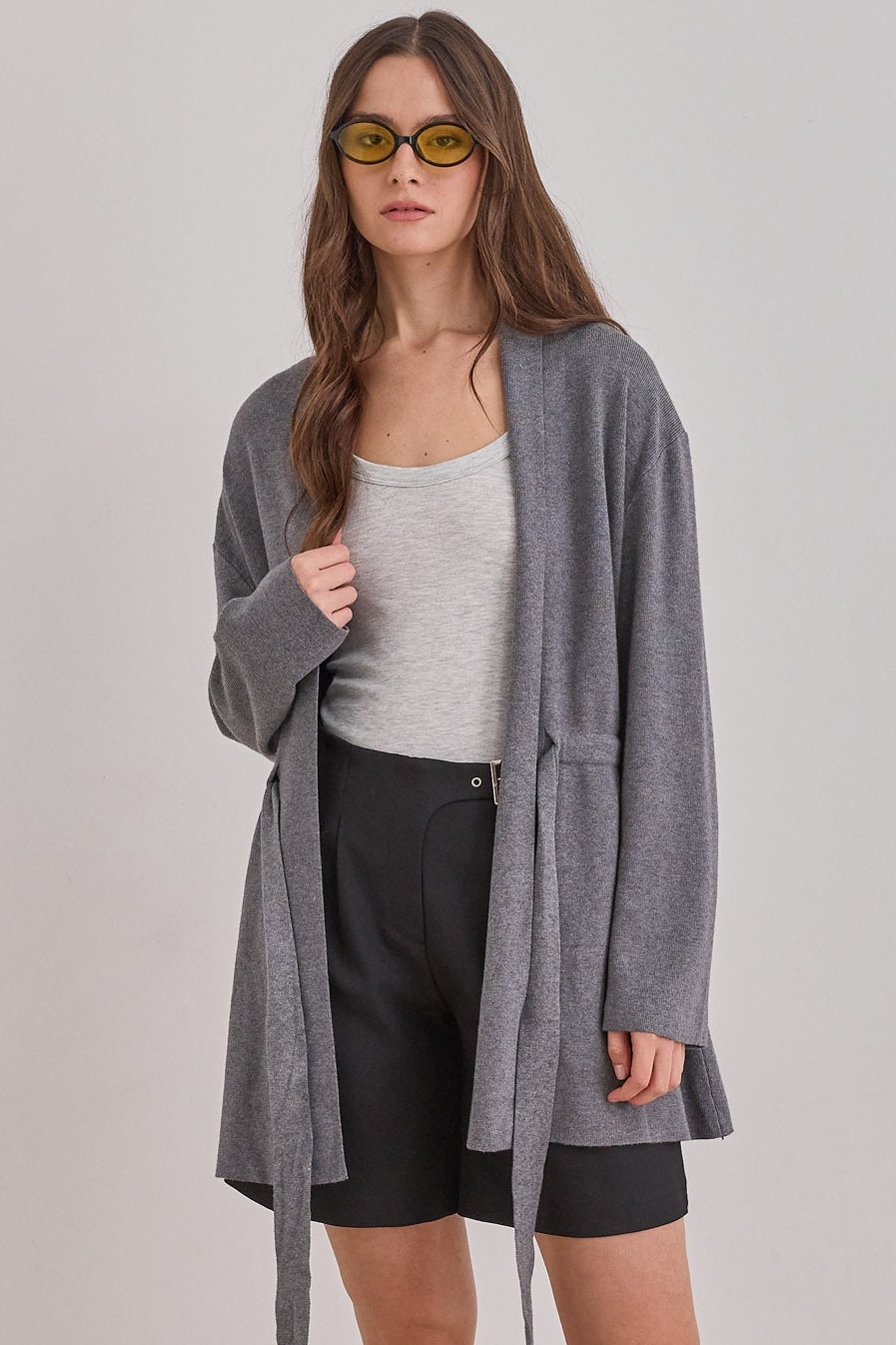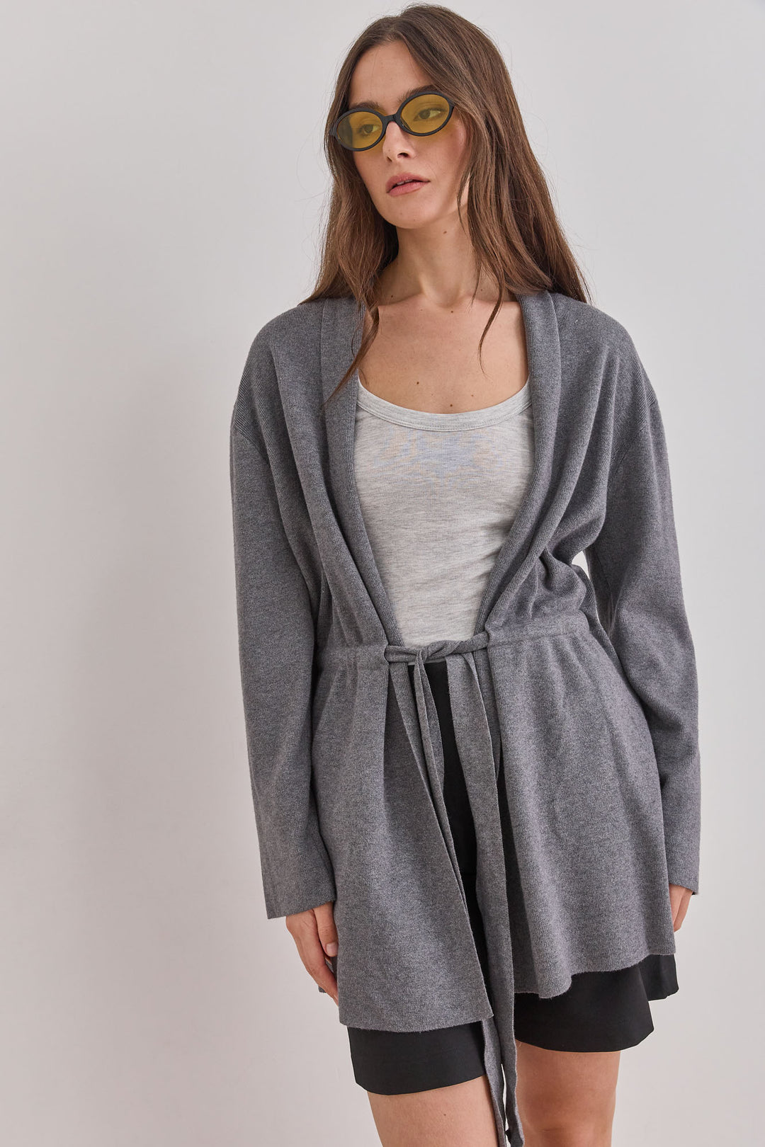 קרדיגן סריג רובי בשילוב כפתורים | אפור
