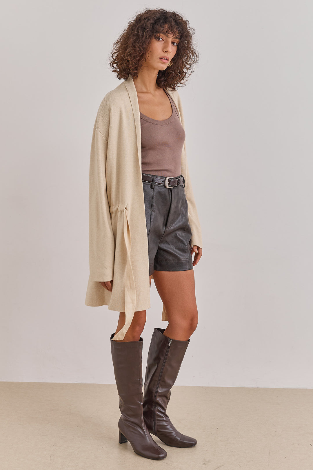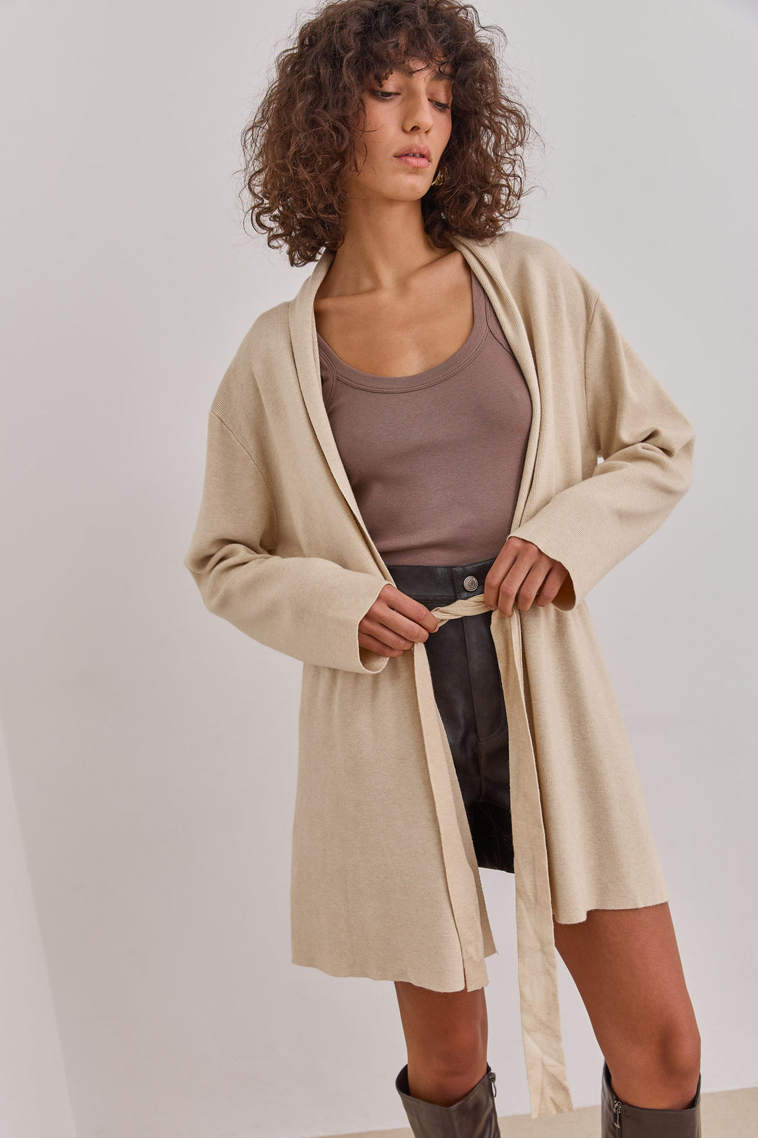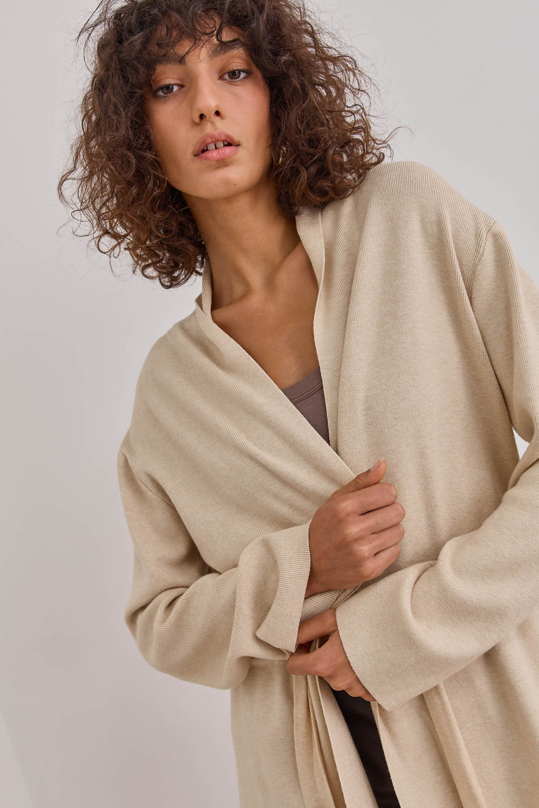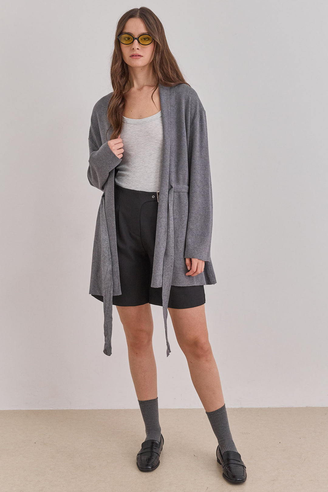 קרדיגן סריג רובי בשילוב כפתורים | אפור