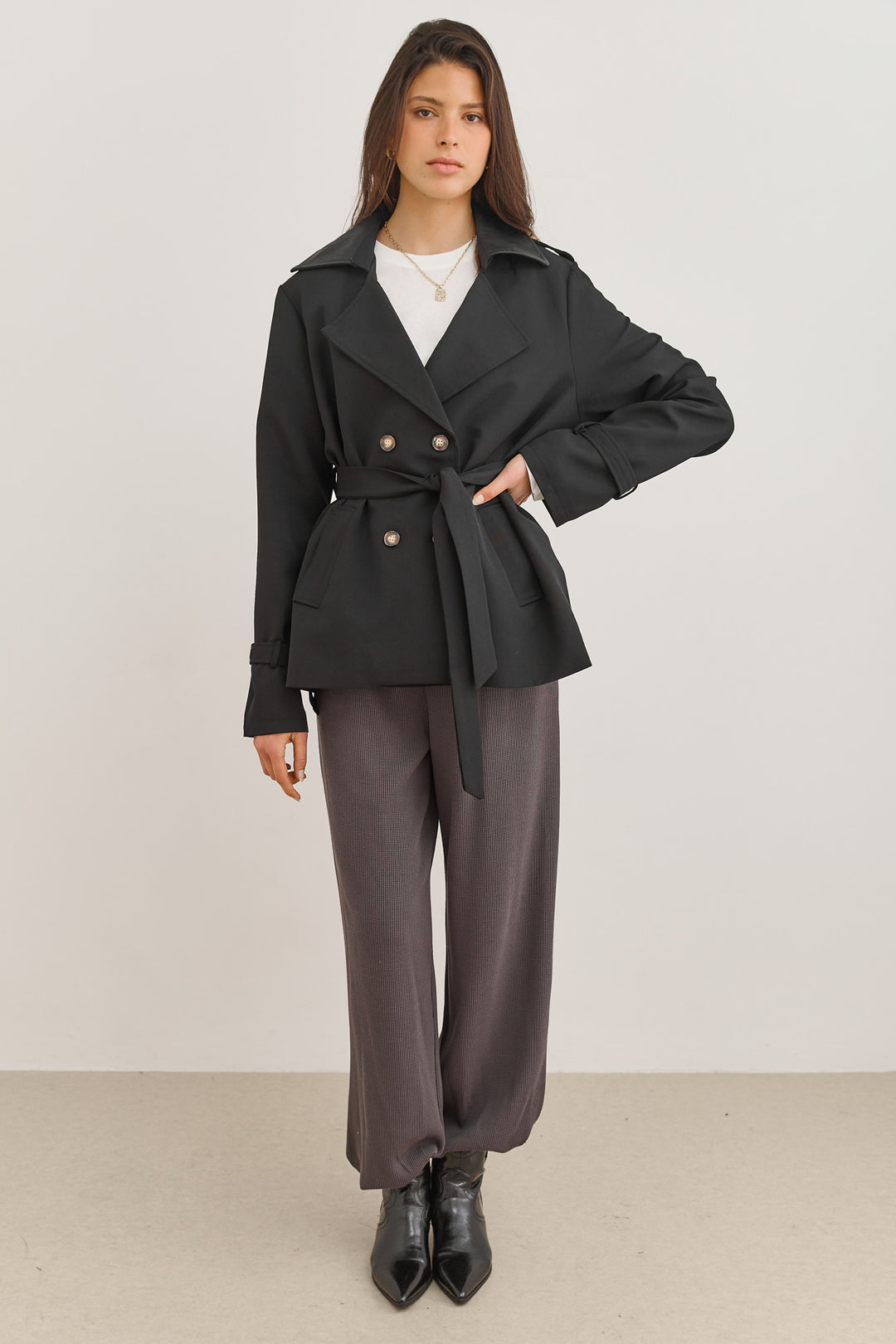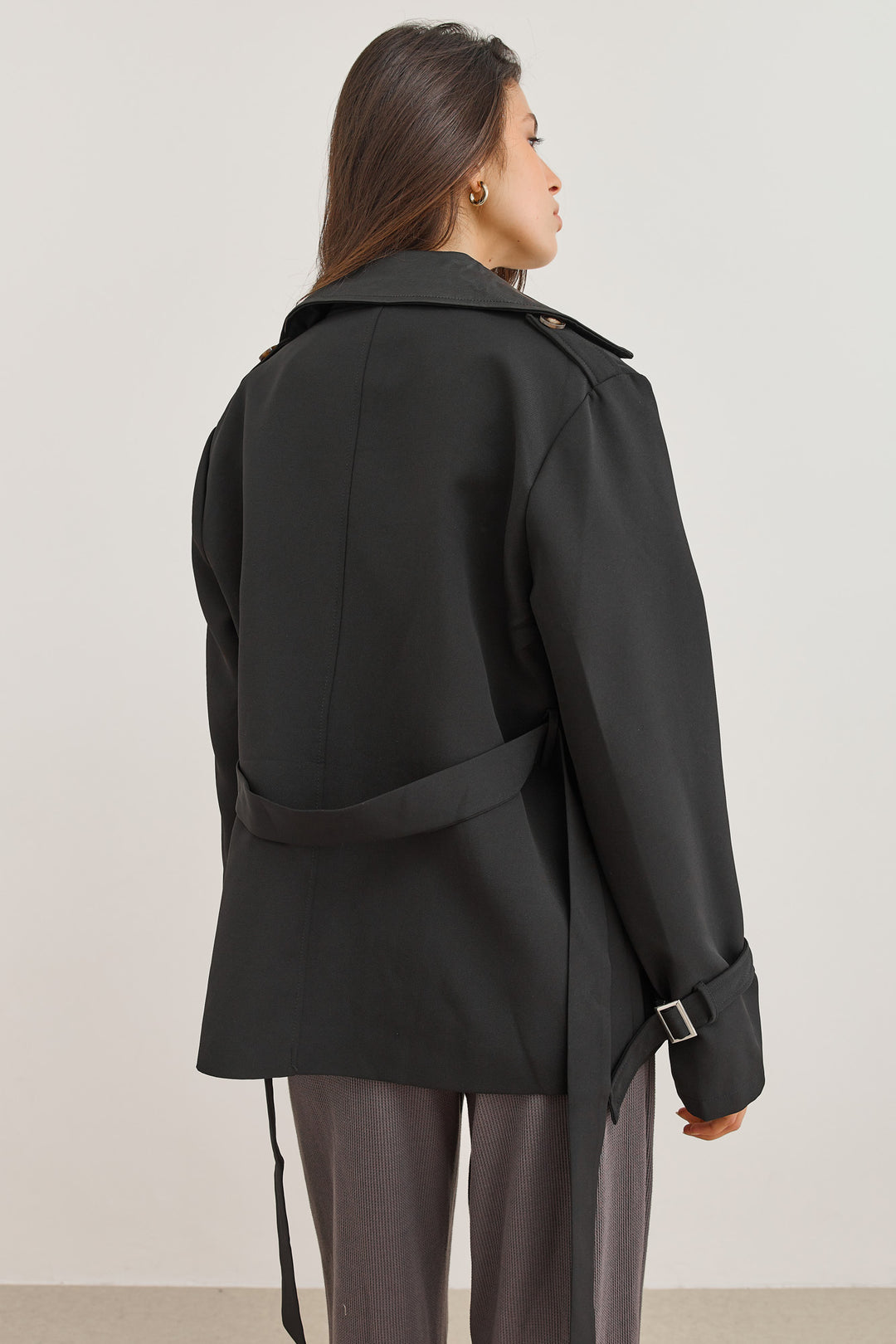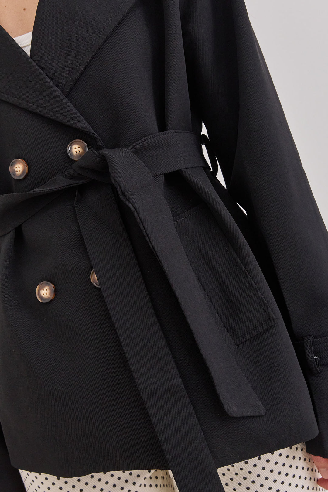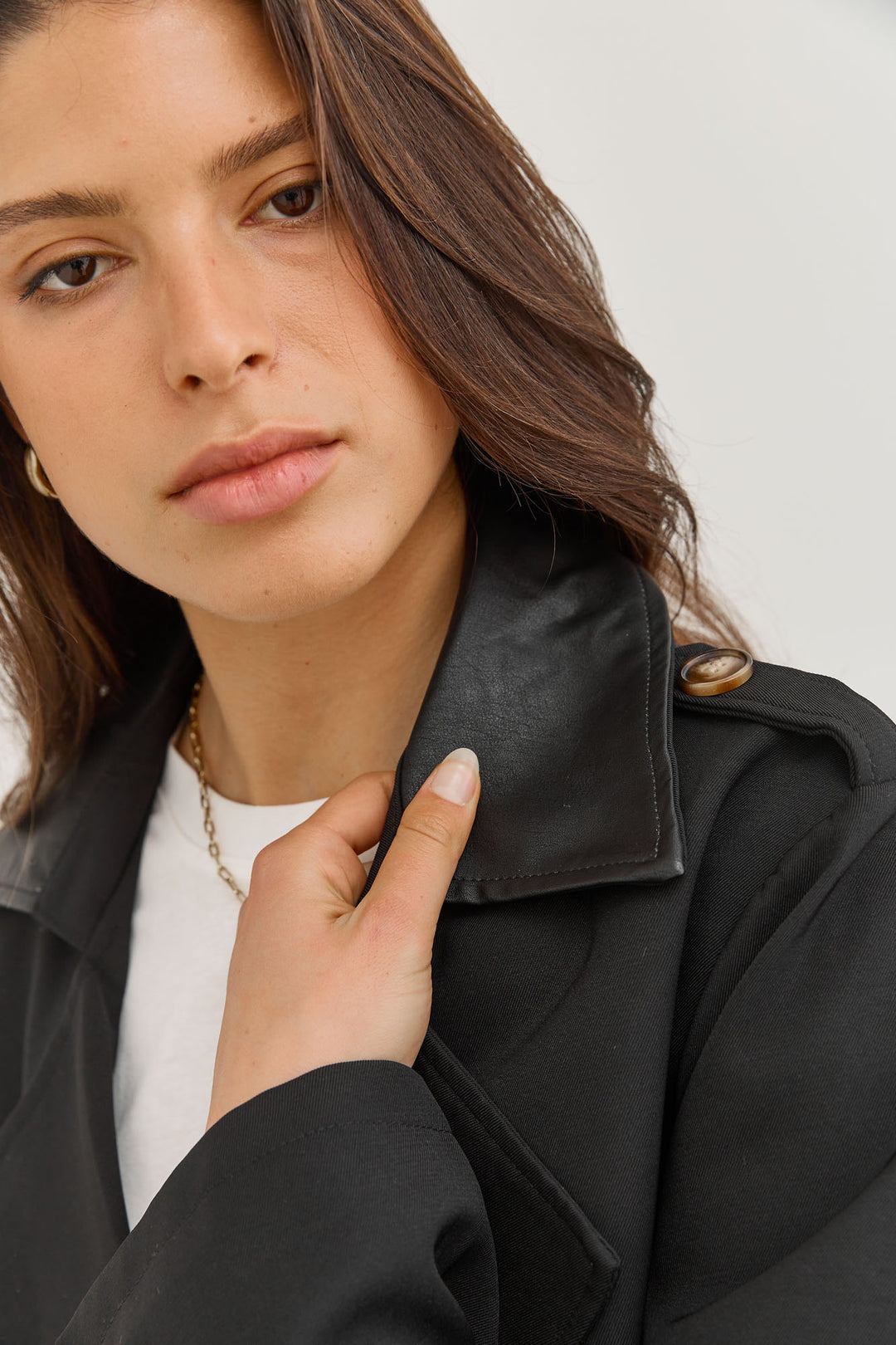מעיל טראנץ' אנדראה צווארון דמוי עור | שחור
