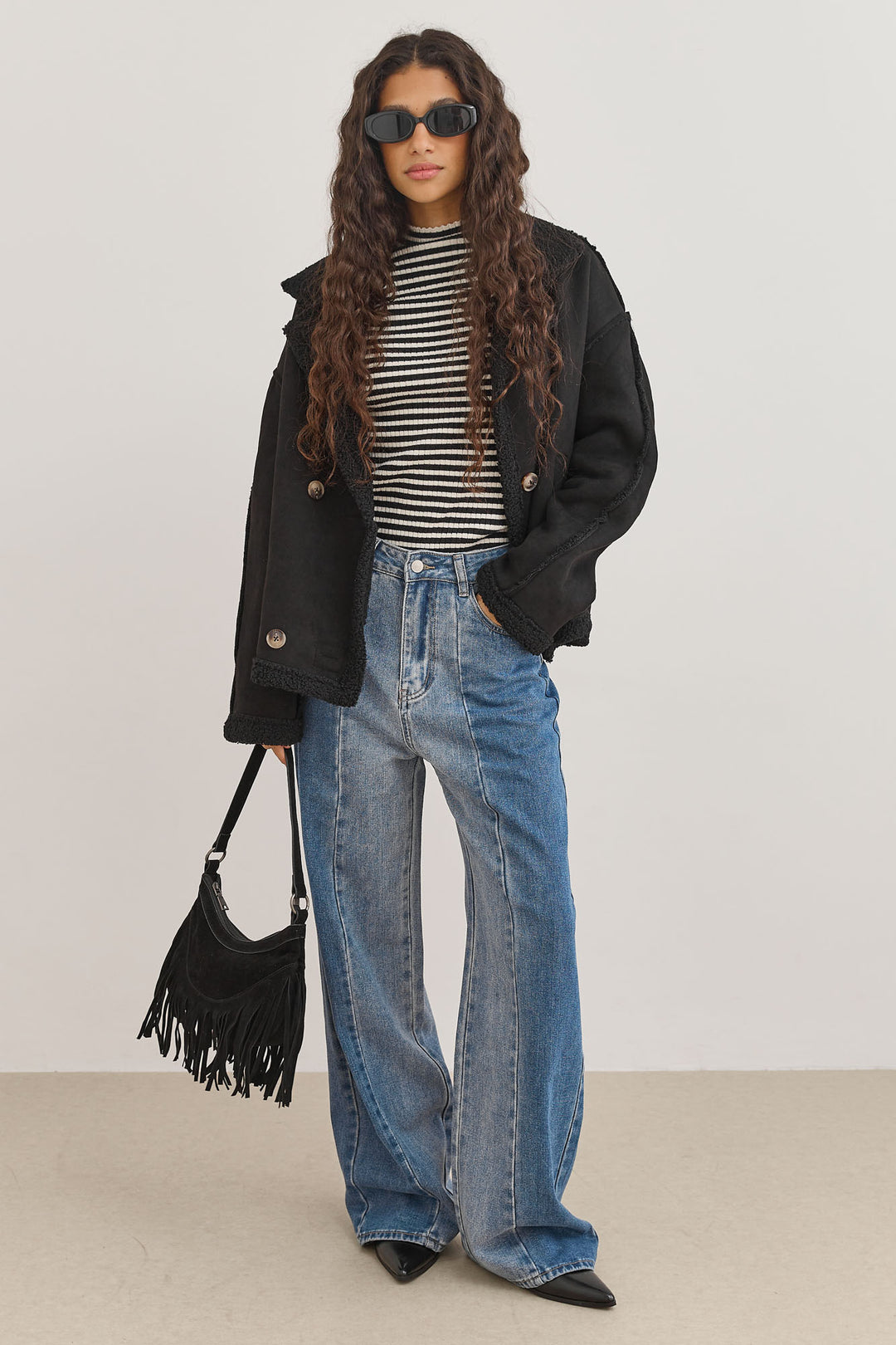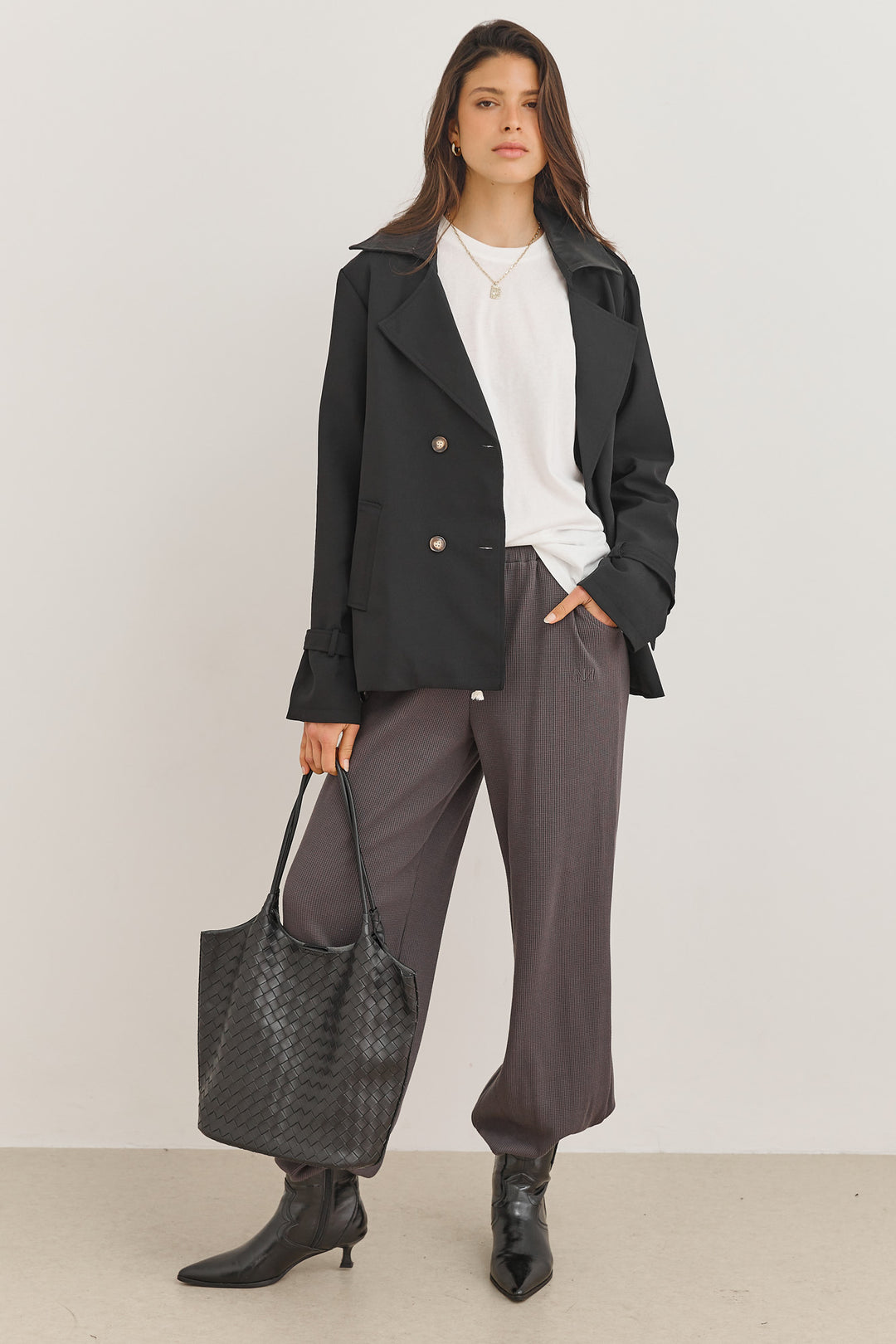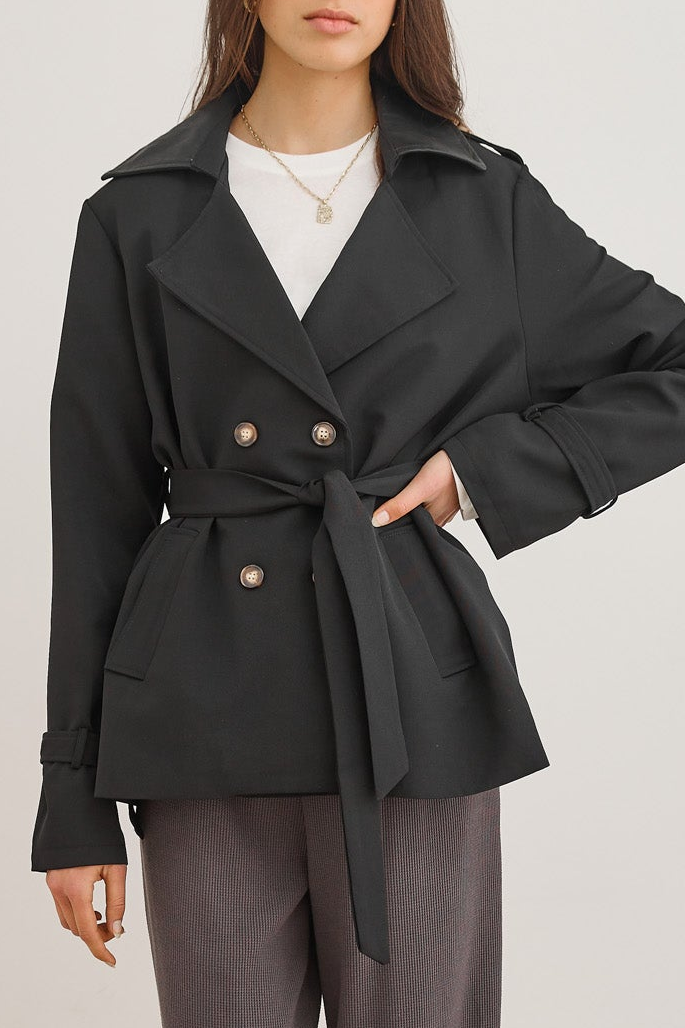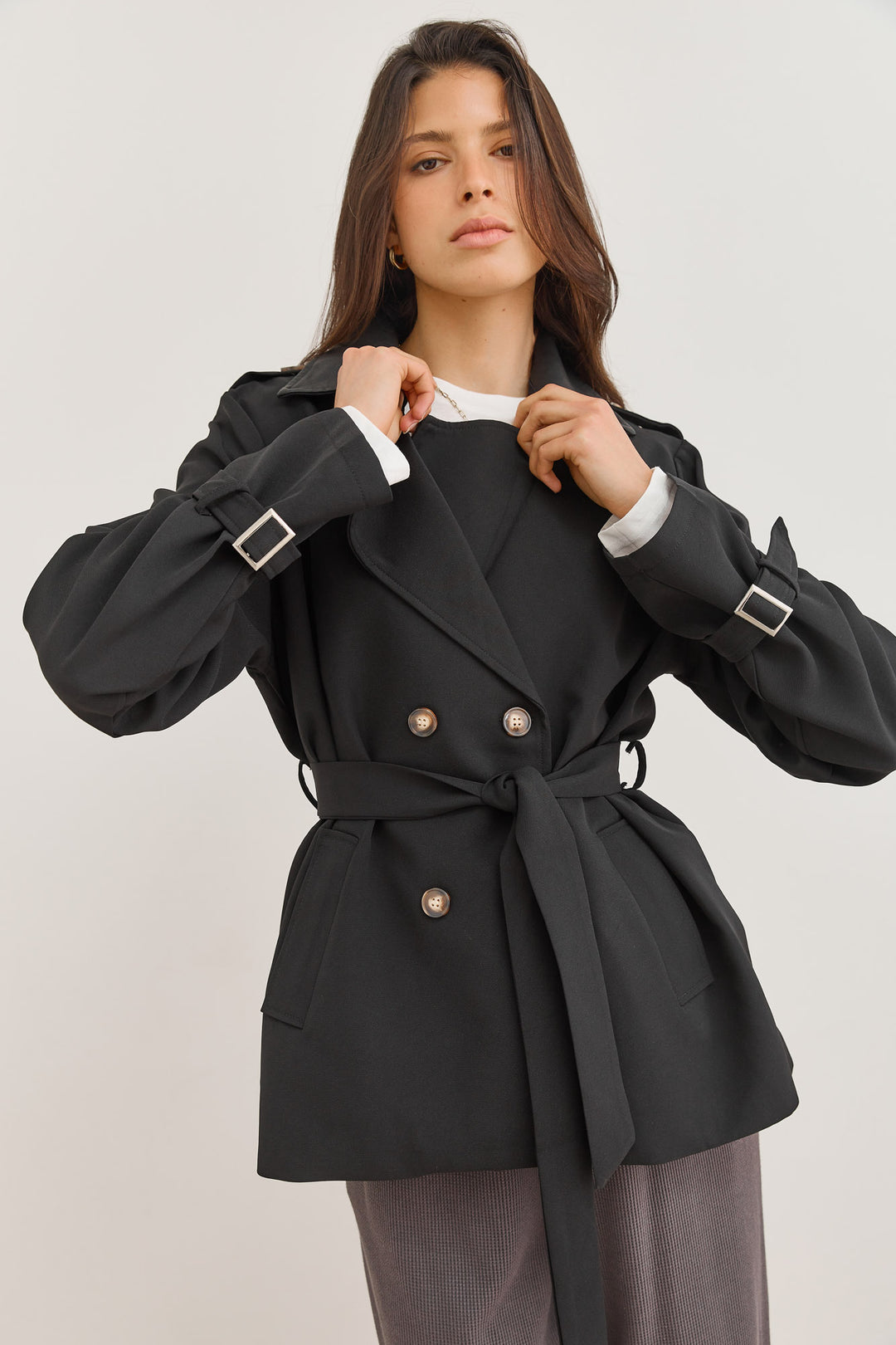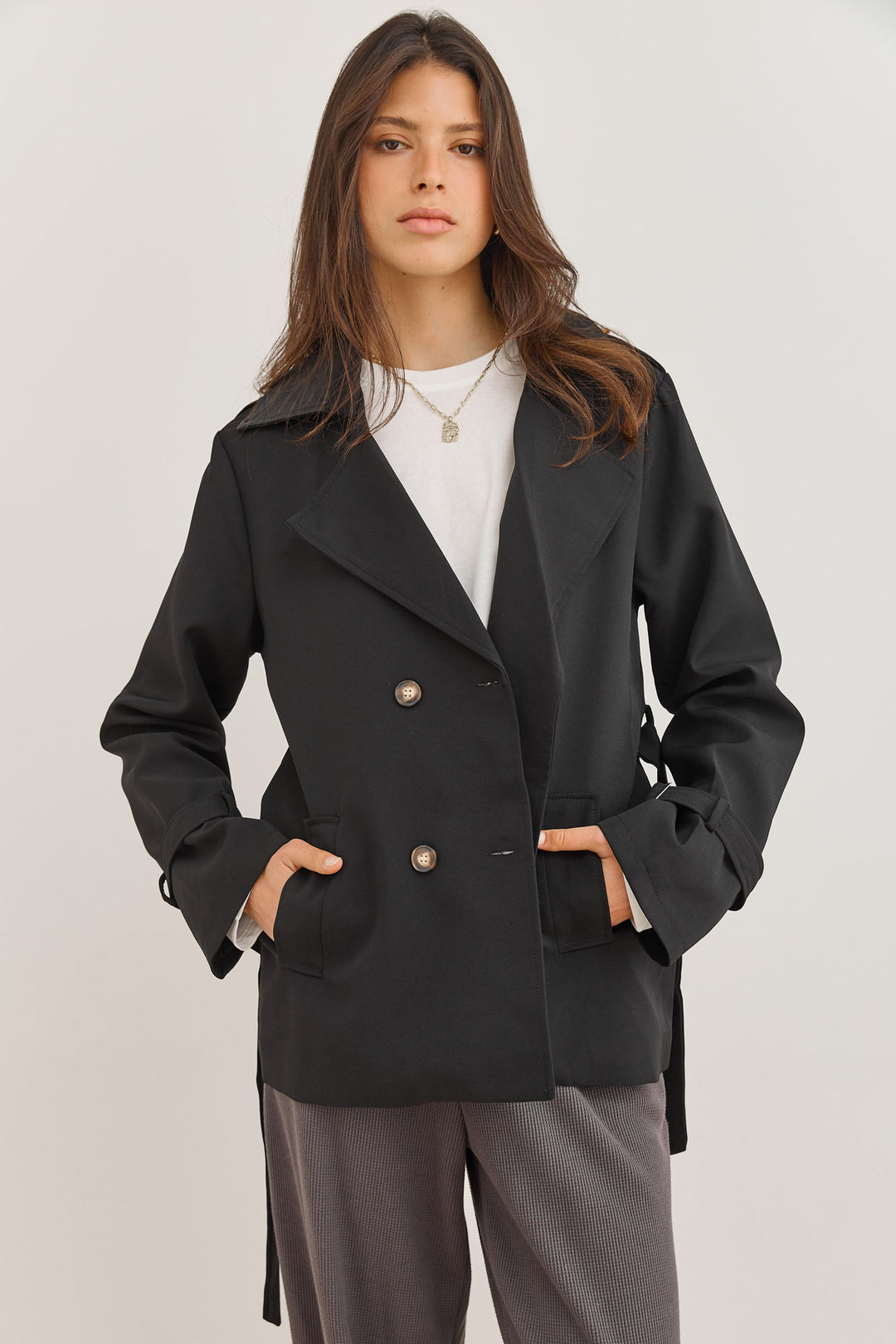 מעיל טראנץ' אנדראה צווארון דמוי עור | שחור