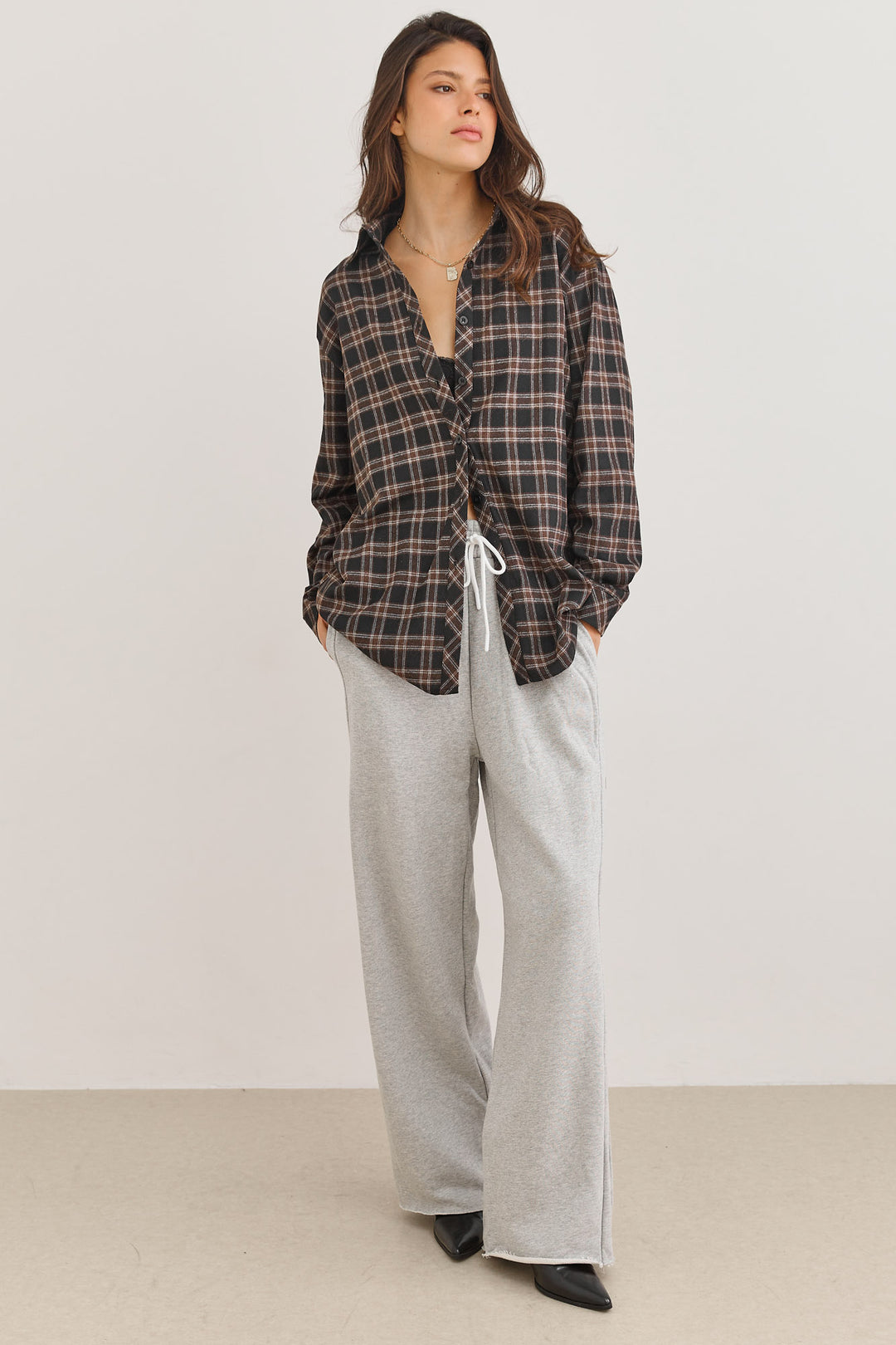מכופתרת לילו משבצות גזרת אוברסייז | שחור/חום