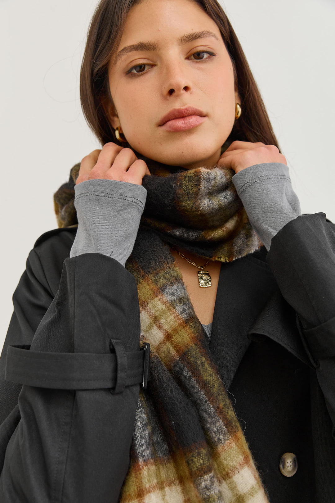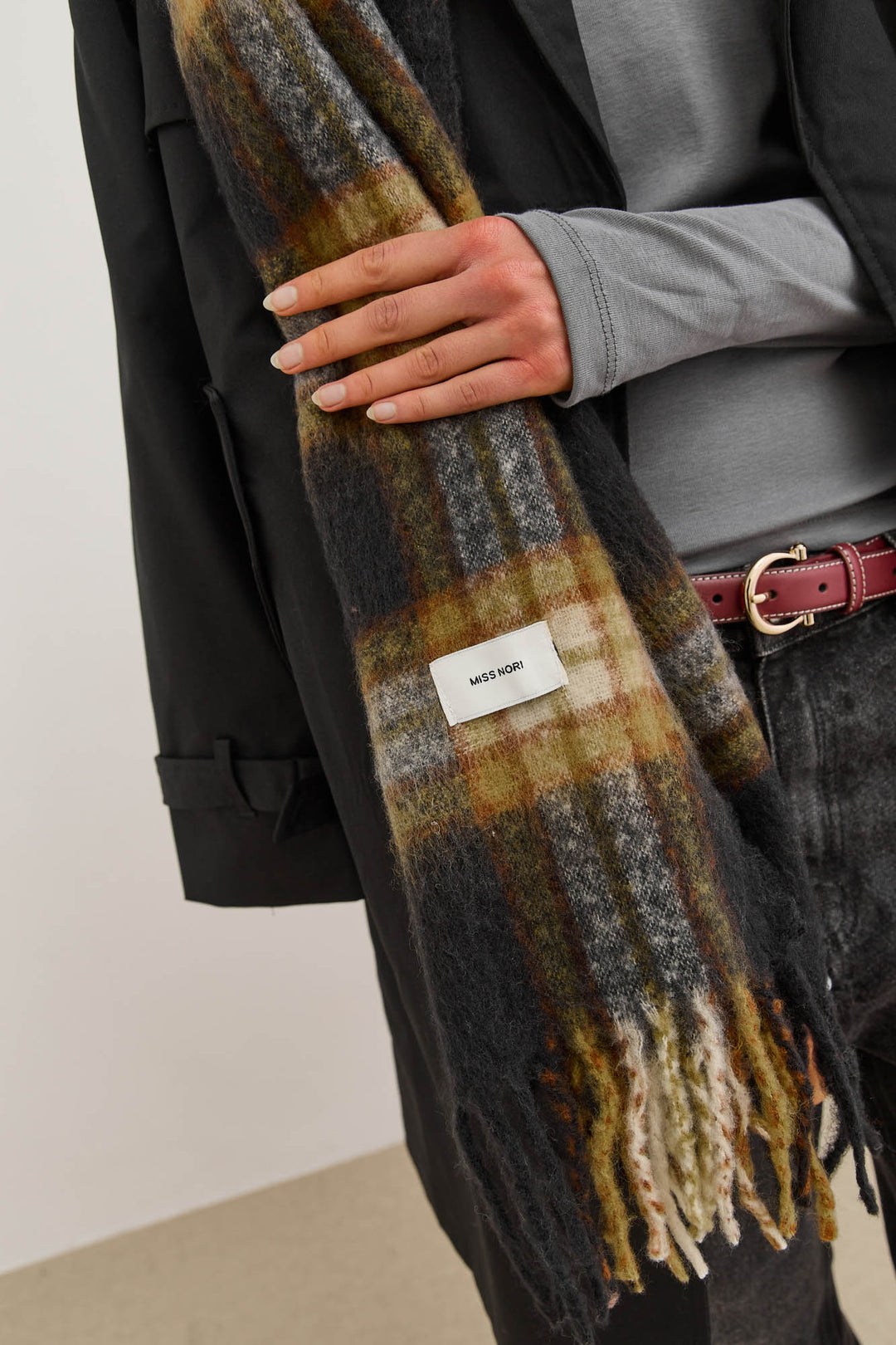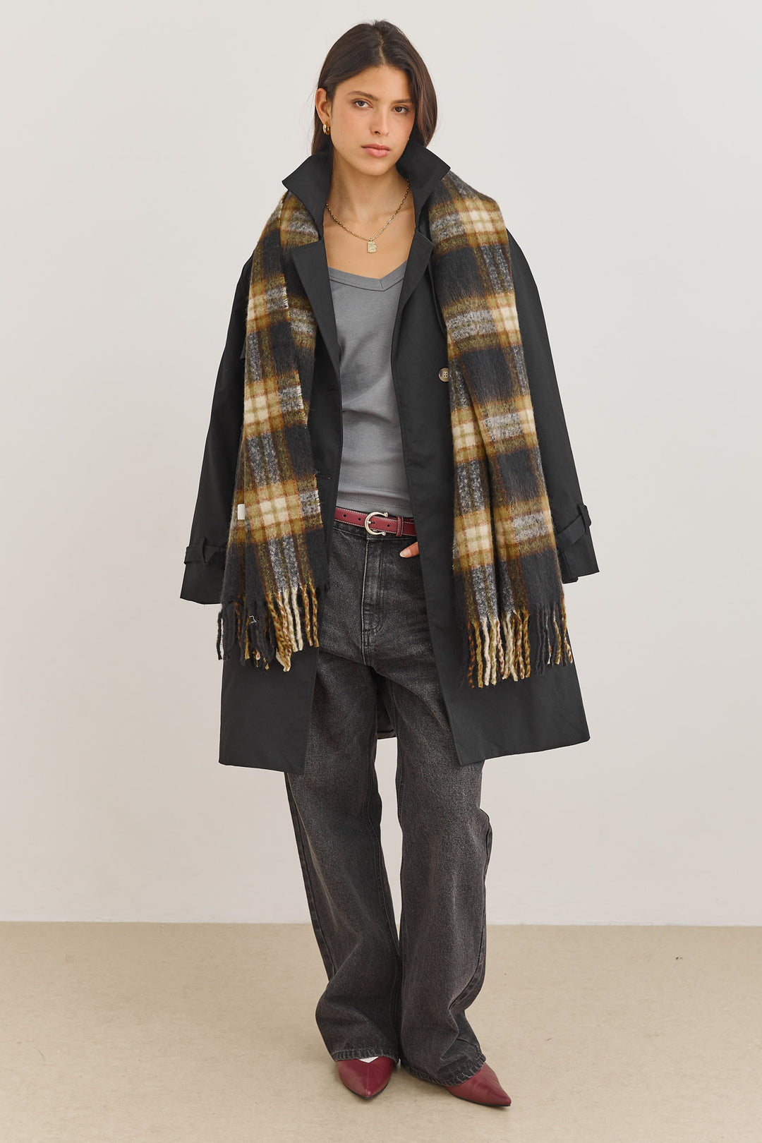 צעיף משבצות גאלה סיומת פרנזים | שחור/צהוב