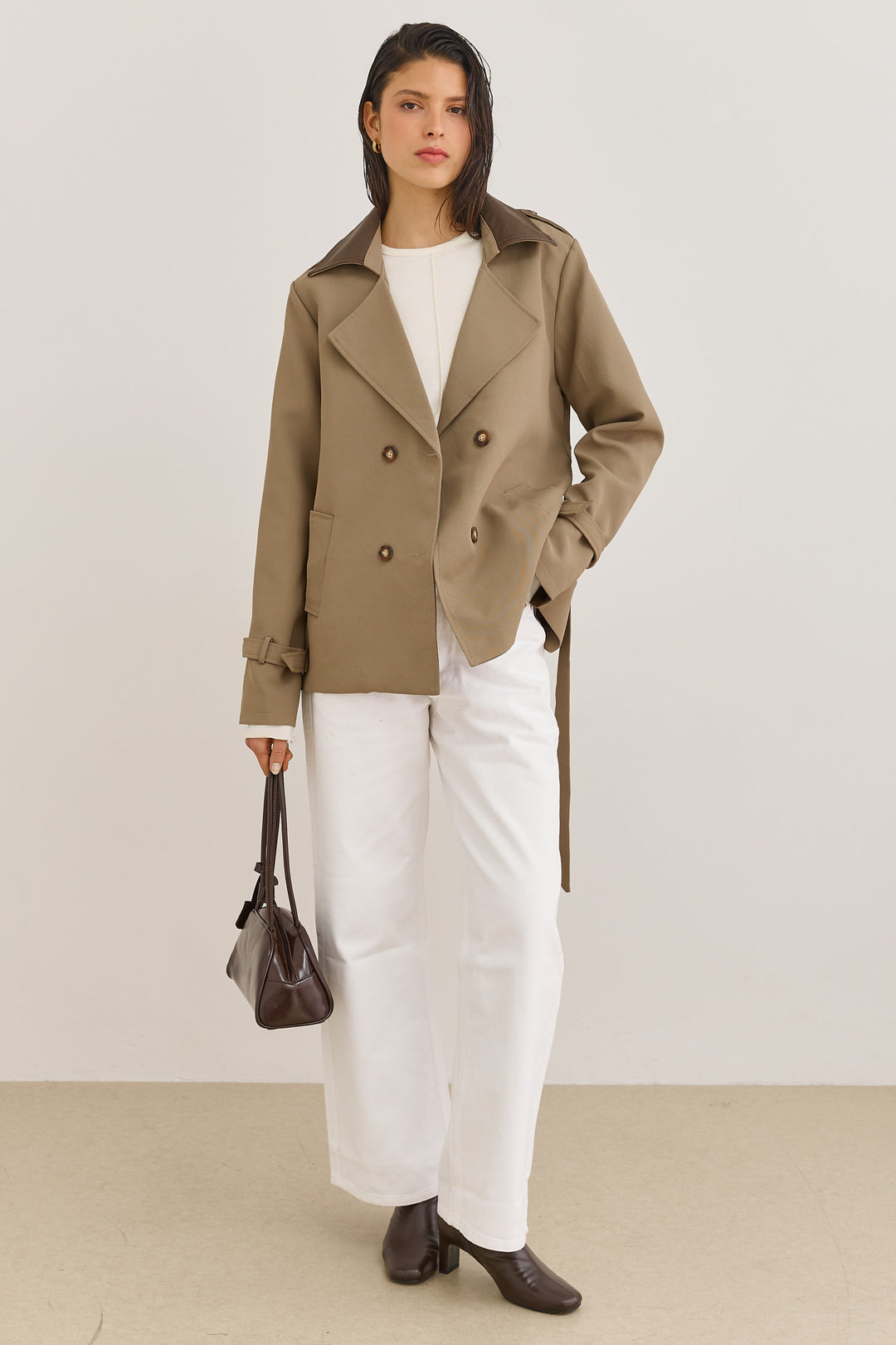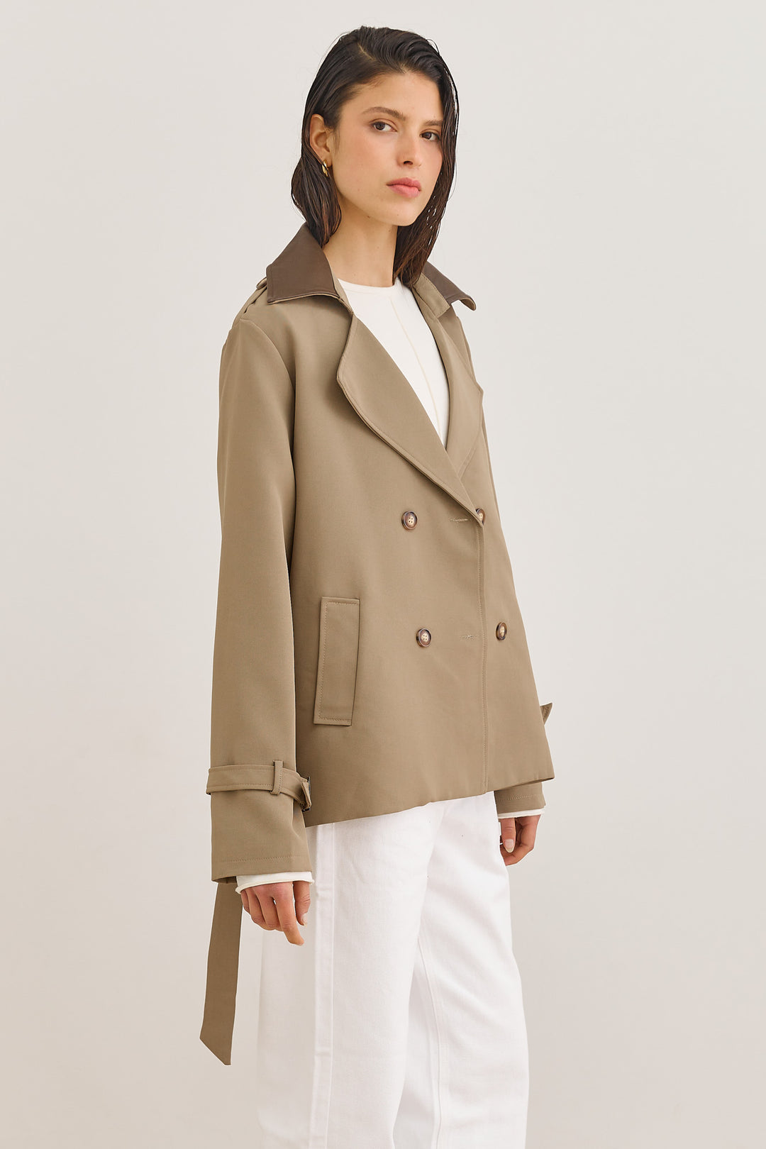 מעיל טראנץ' אנדראה צווארון דמוי עור | חאקי