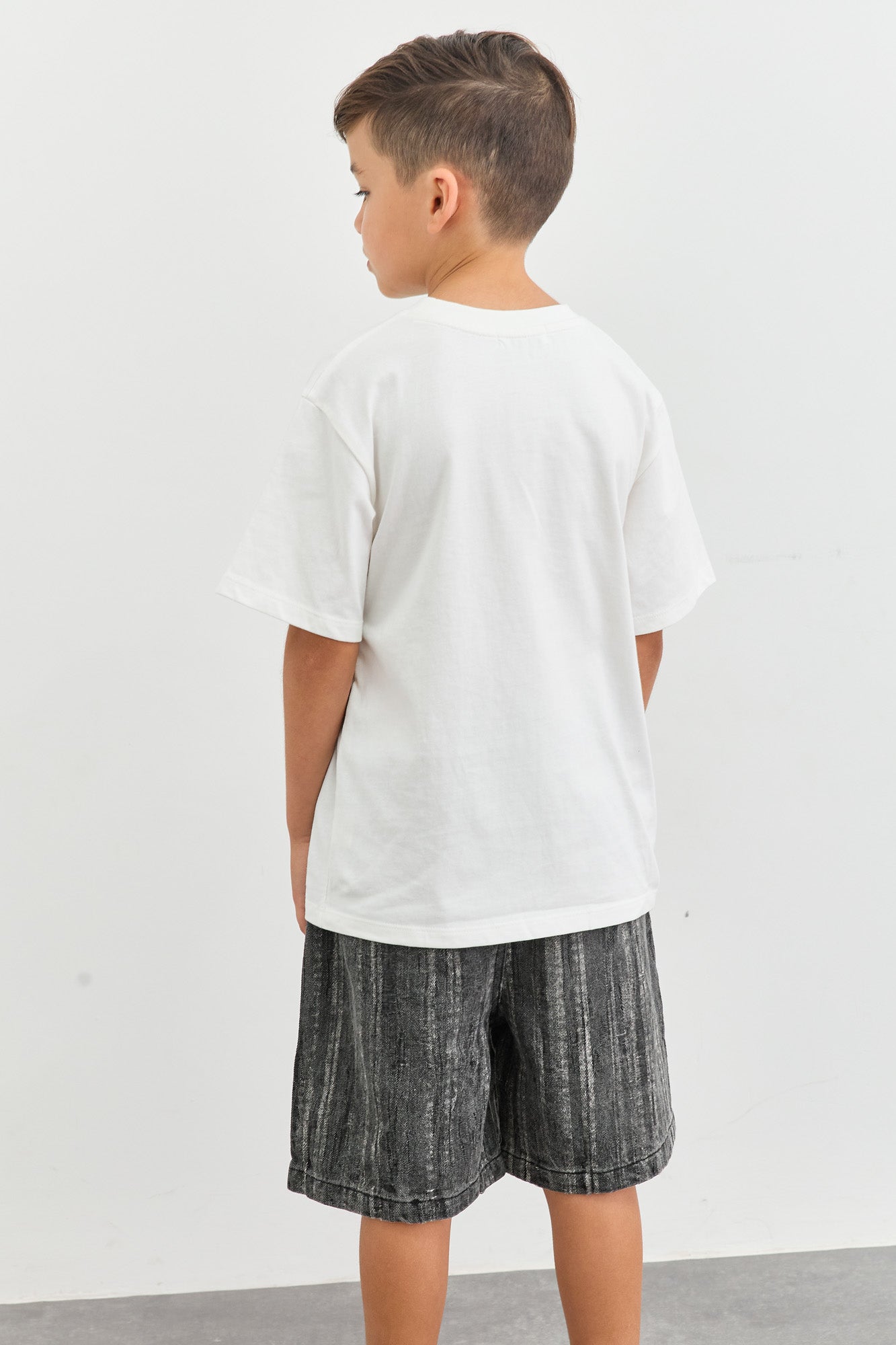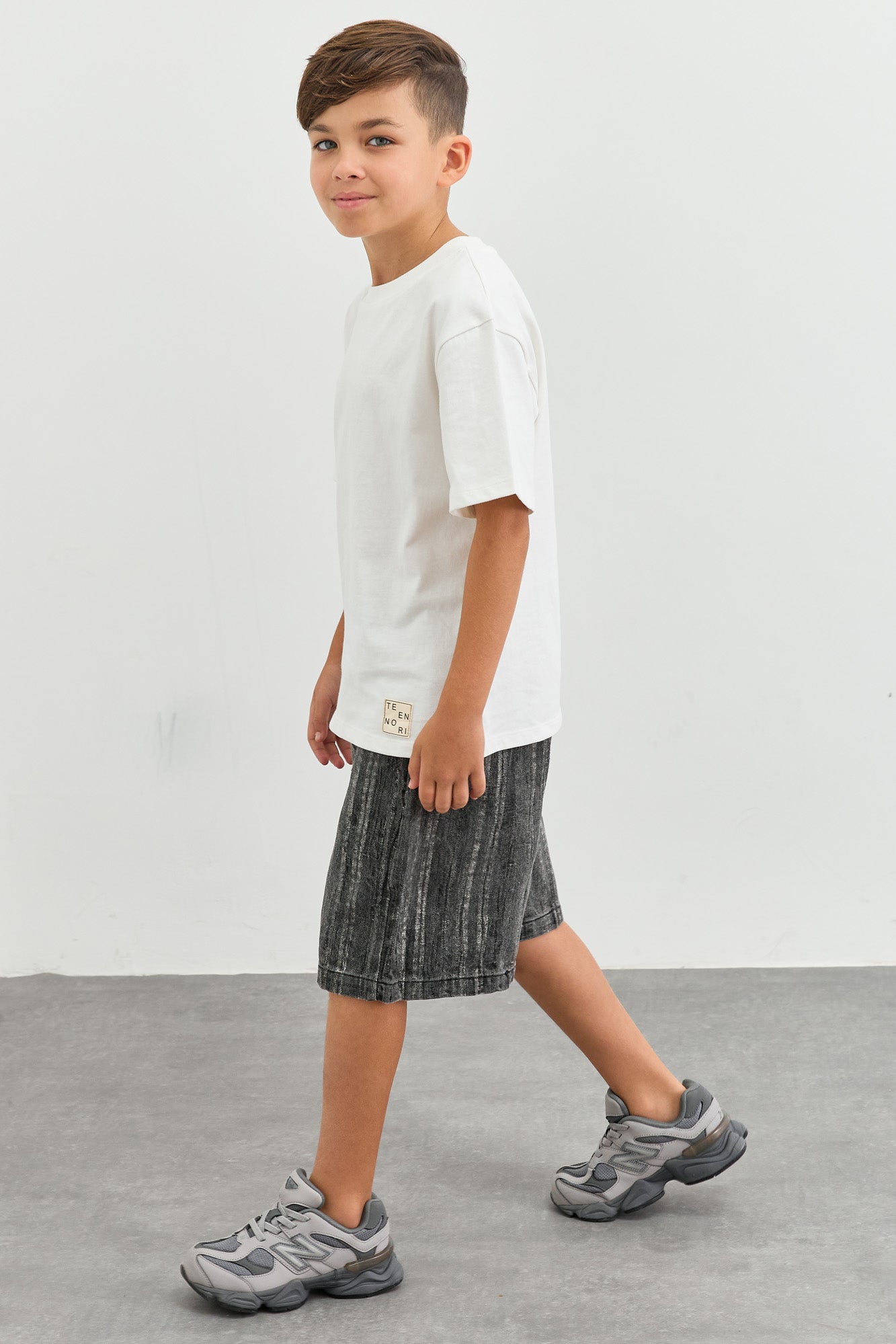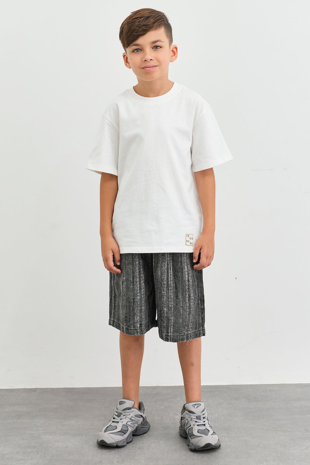 טי שירט בגזרת אוברסייז מבד כותנה עם פאץ' בסיומת החולצה