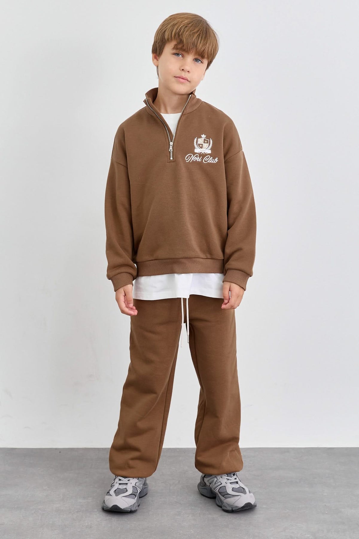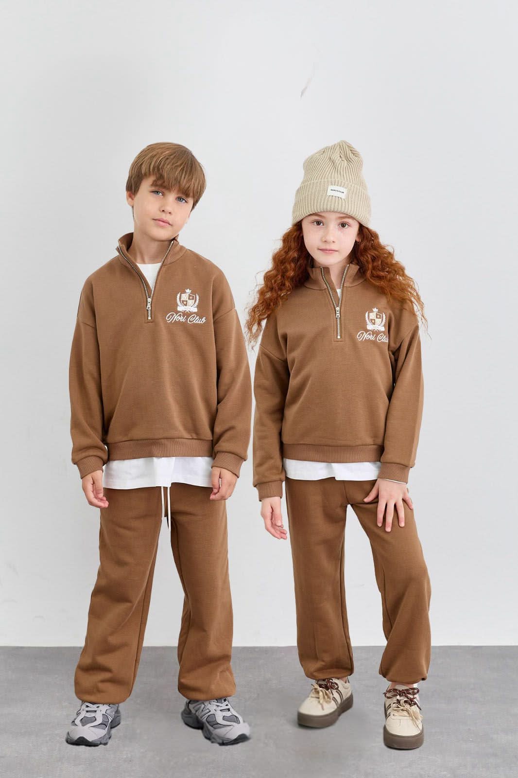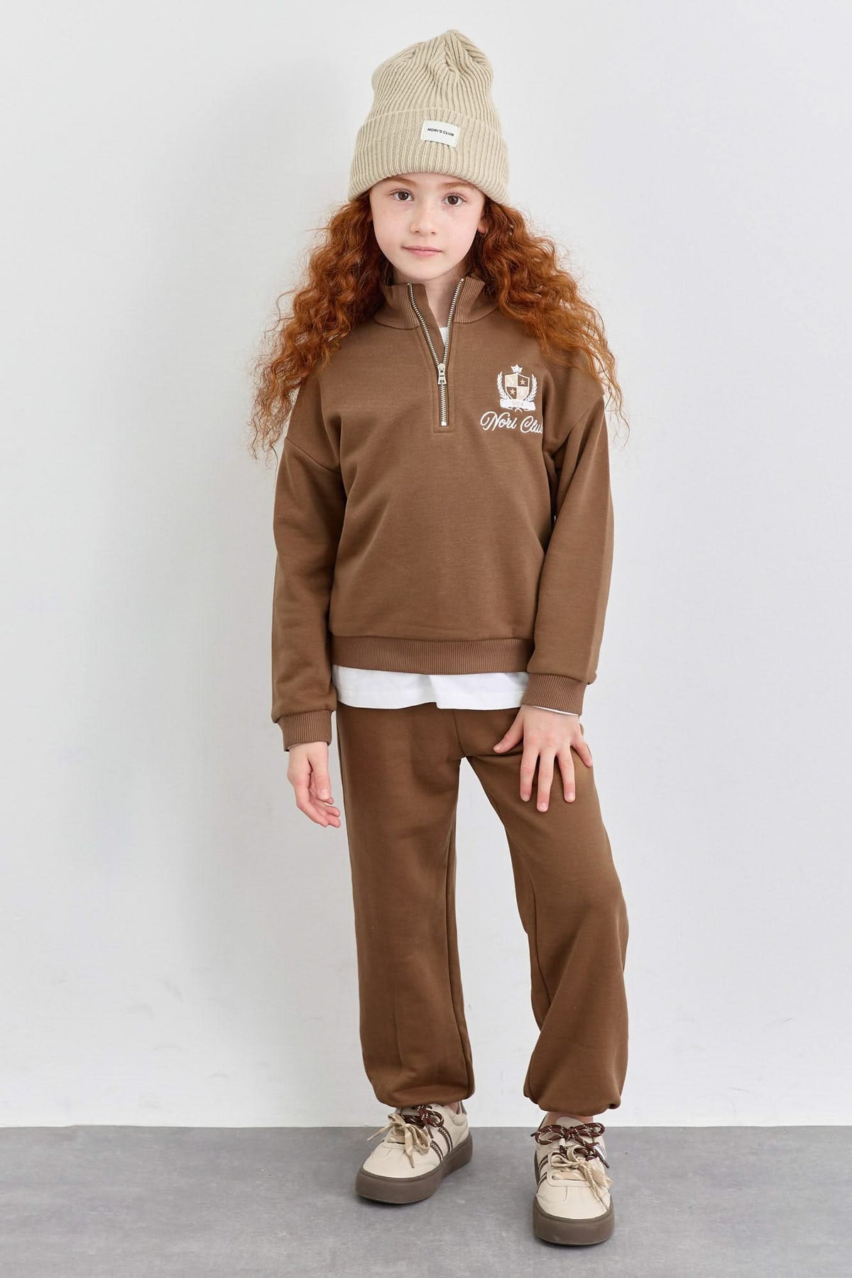 חליפה מבד פרנץ' טרי סווטשירט גולף עם רוכסן ומכנסי בלון | חום