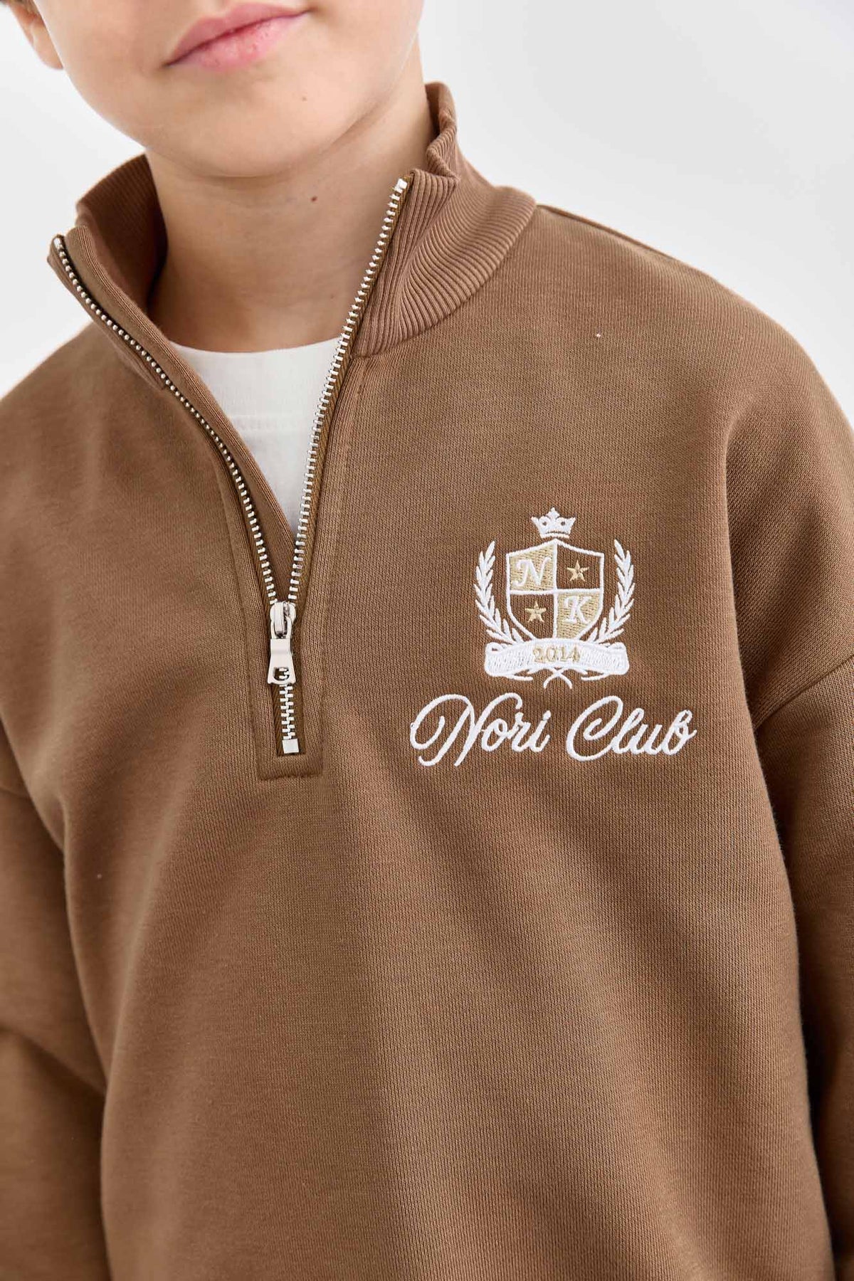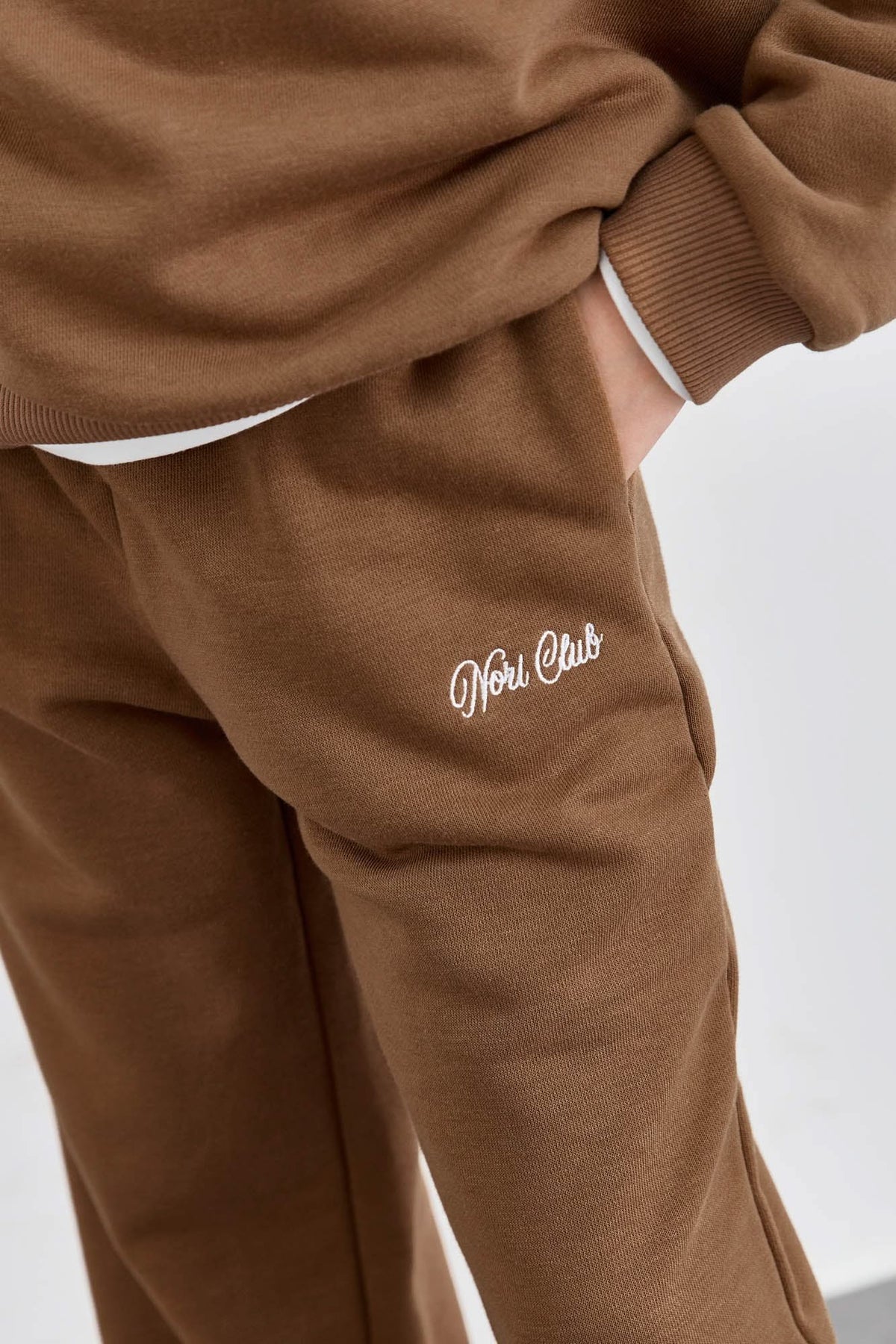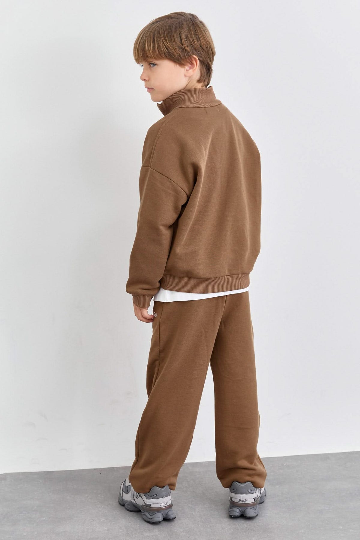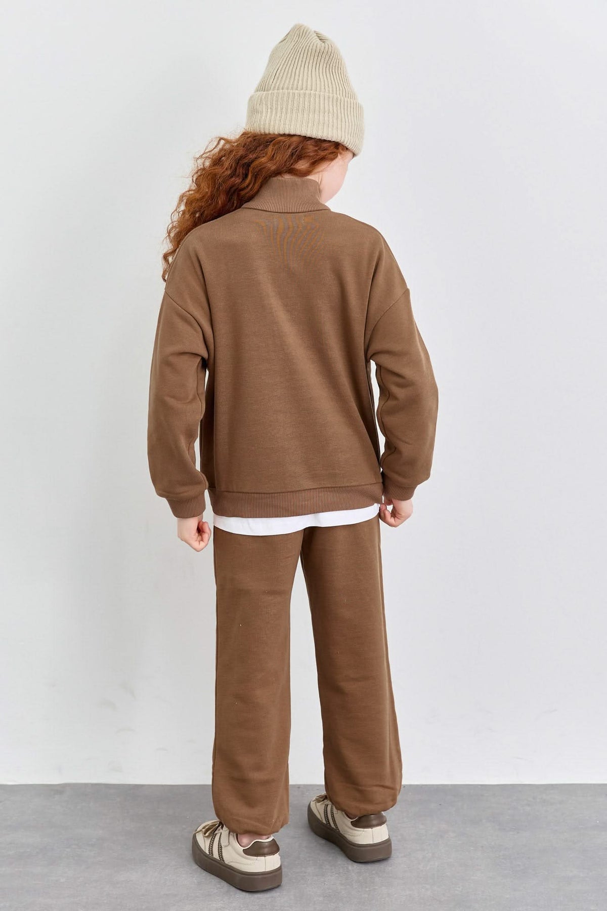 חליפה מבד פרנץ' טרי סווטשירט גולף עם רוכסן ומכנסי בלון | חום