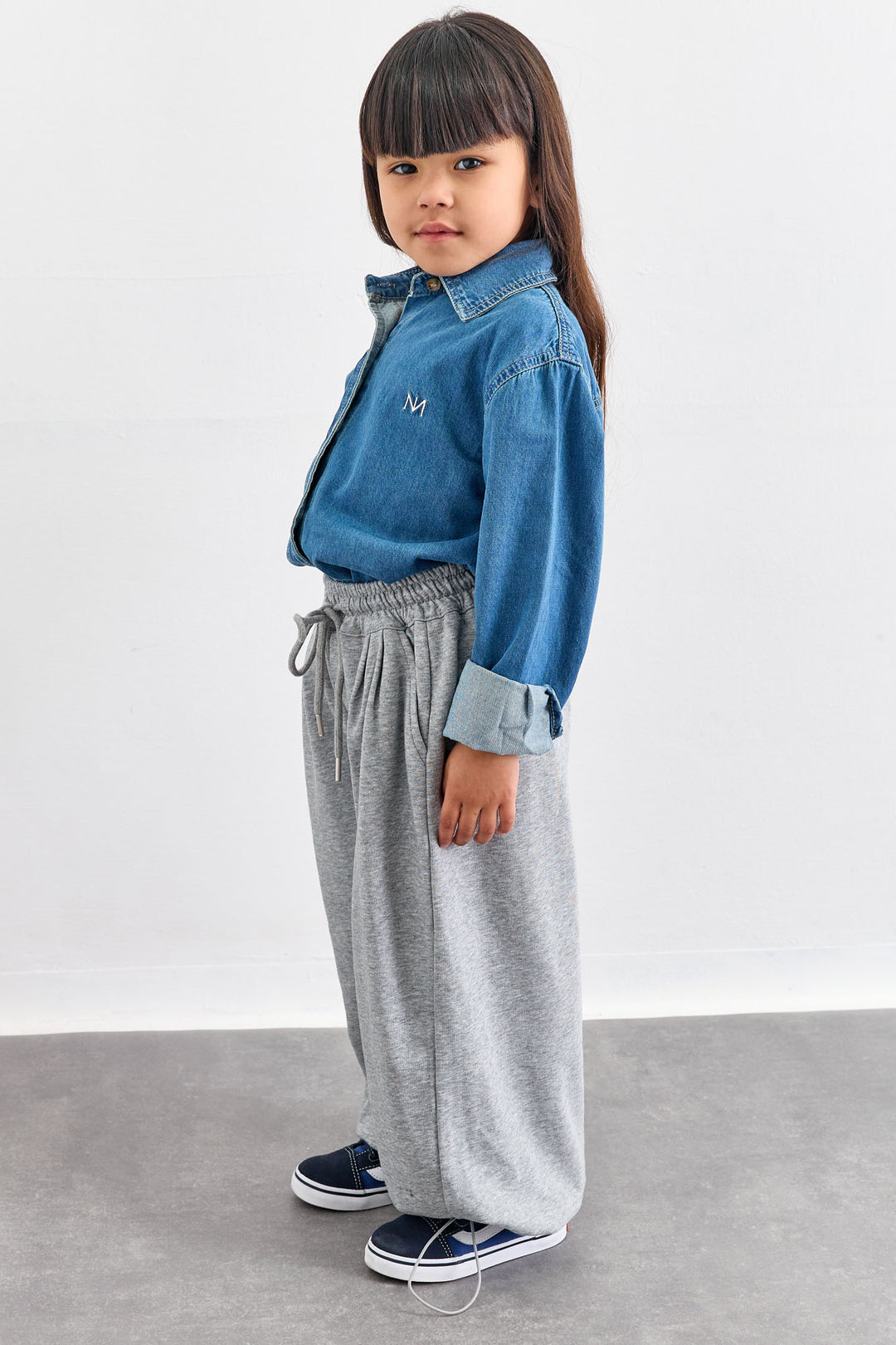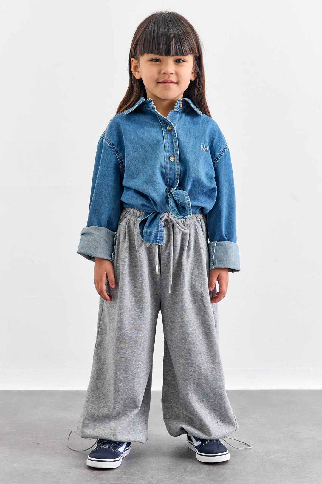 חליפת KIDS CLUB גזרת אוברסייז בשילוב רקמה | אפור