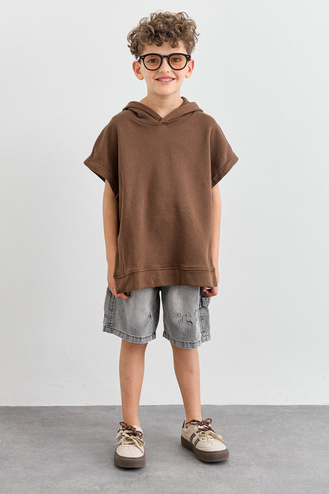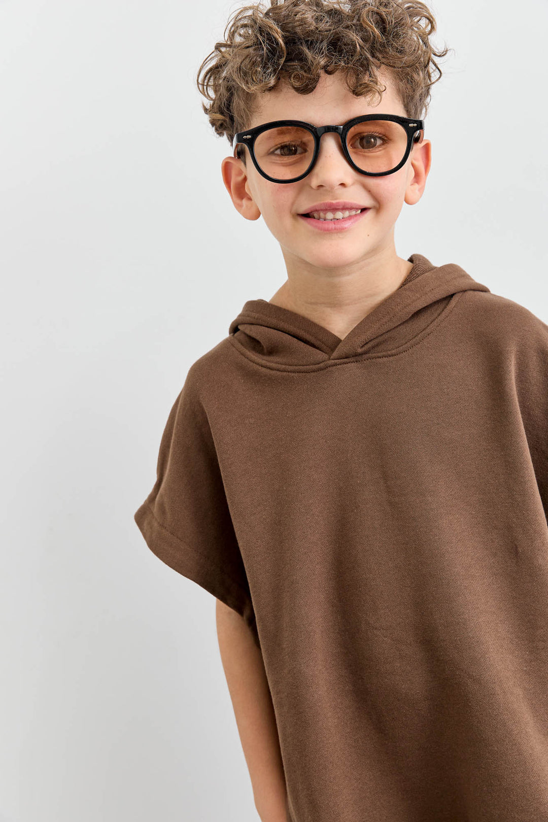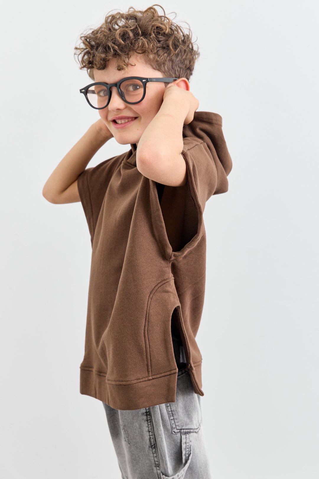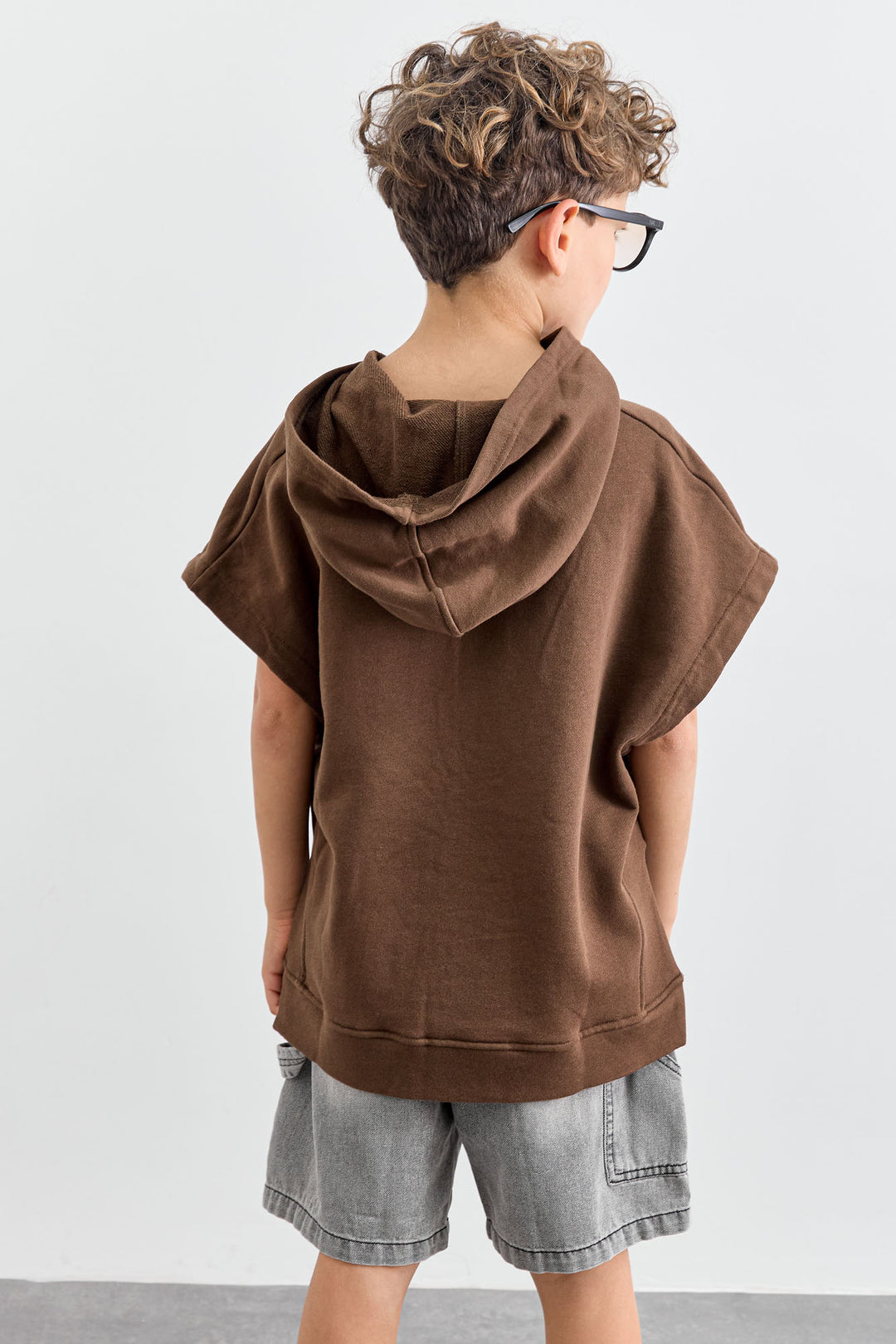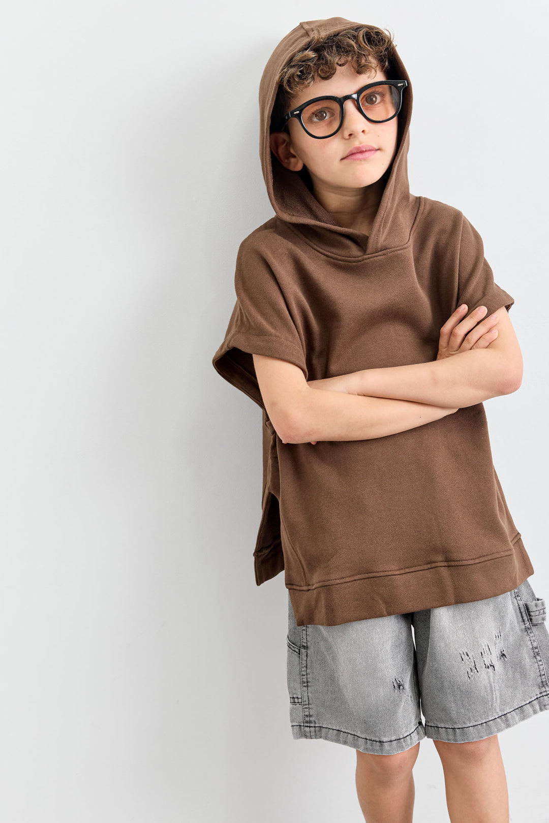 סוויטשירט ללא שרוול בשילוב קפוצ'ון | חום