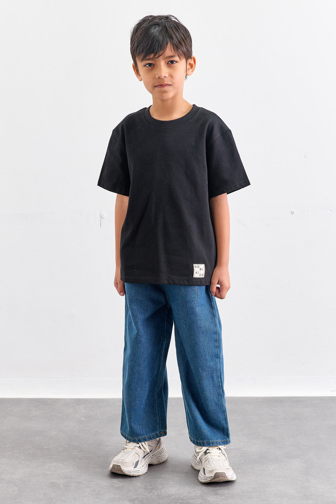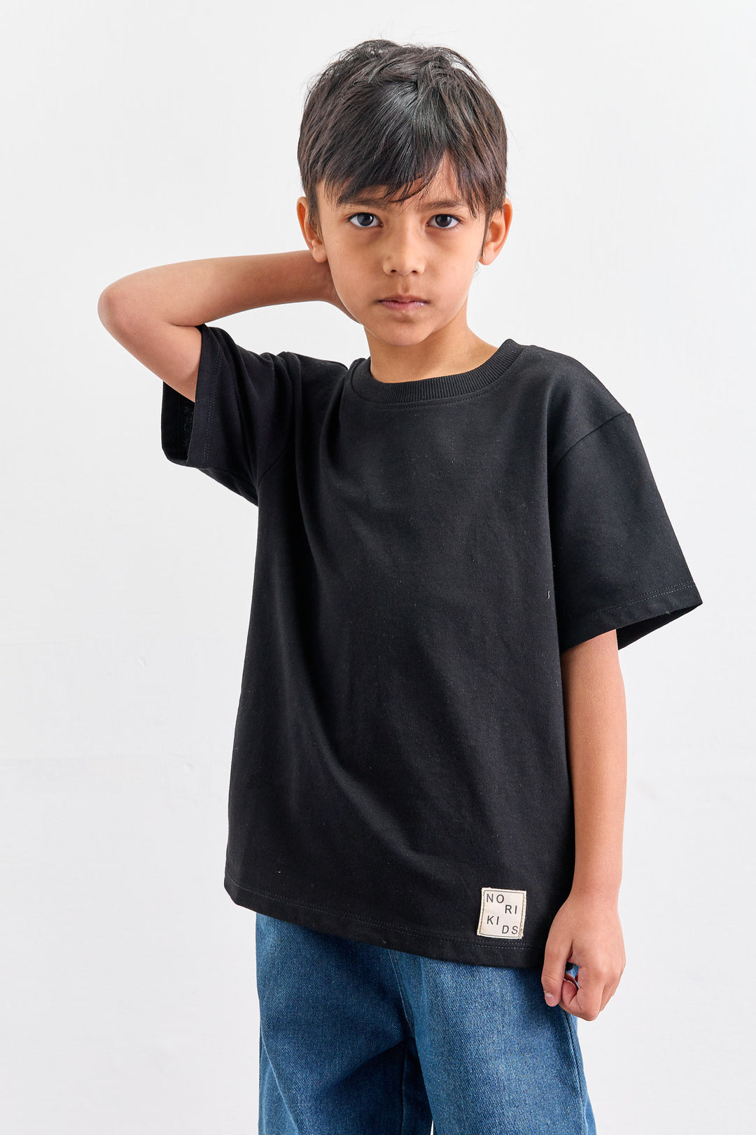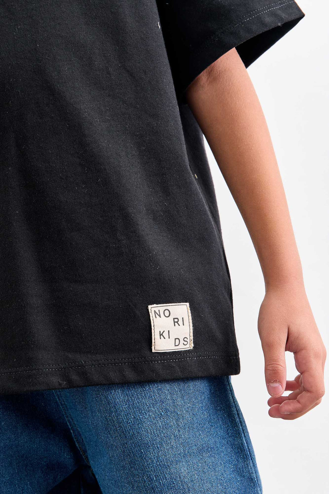 טי שירט אוברסייז בשילוב פאץ' | שחור
