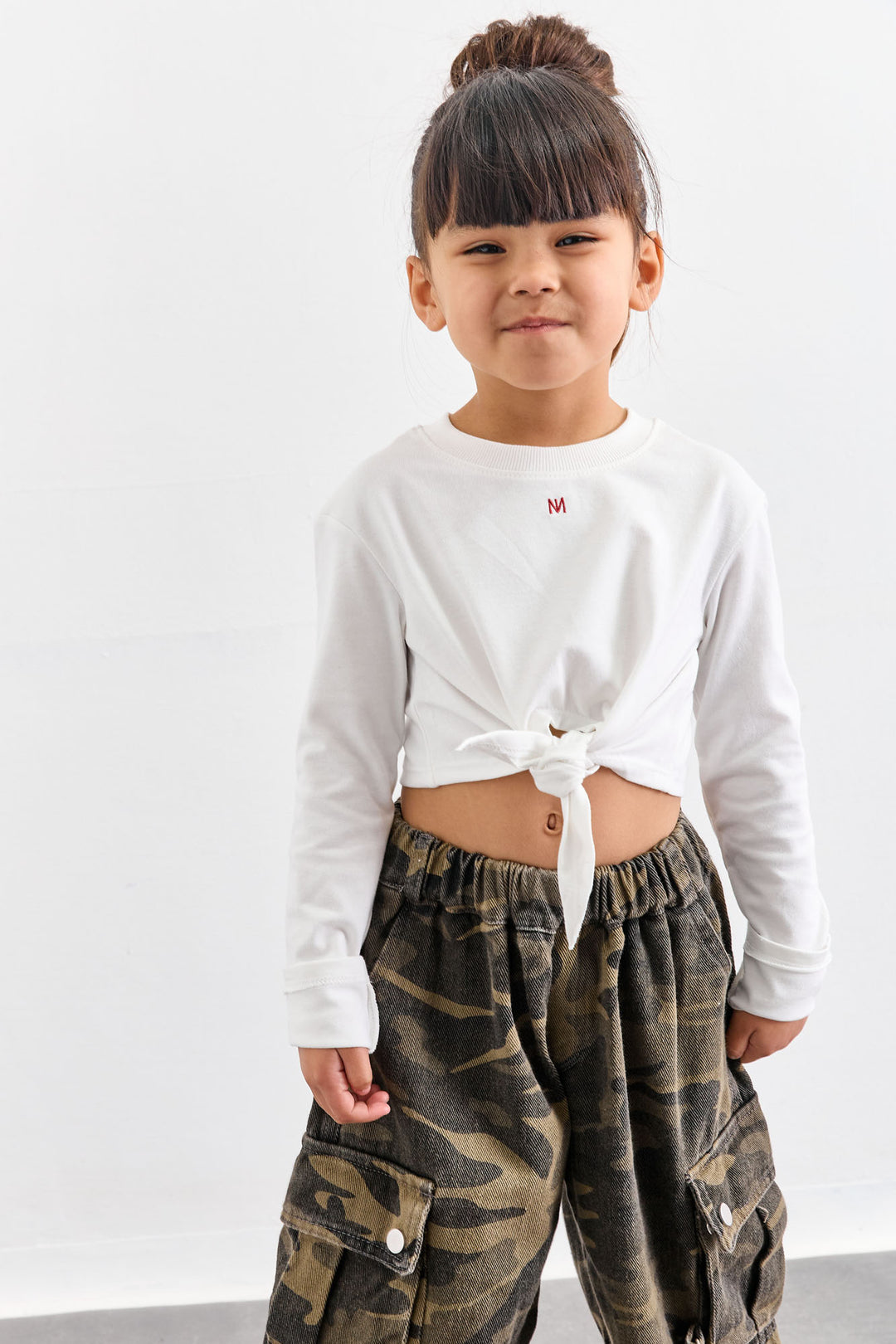 מכנסי ג'וני קצרים מבד טטרה בשילוב גומי במותן | לבן