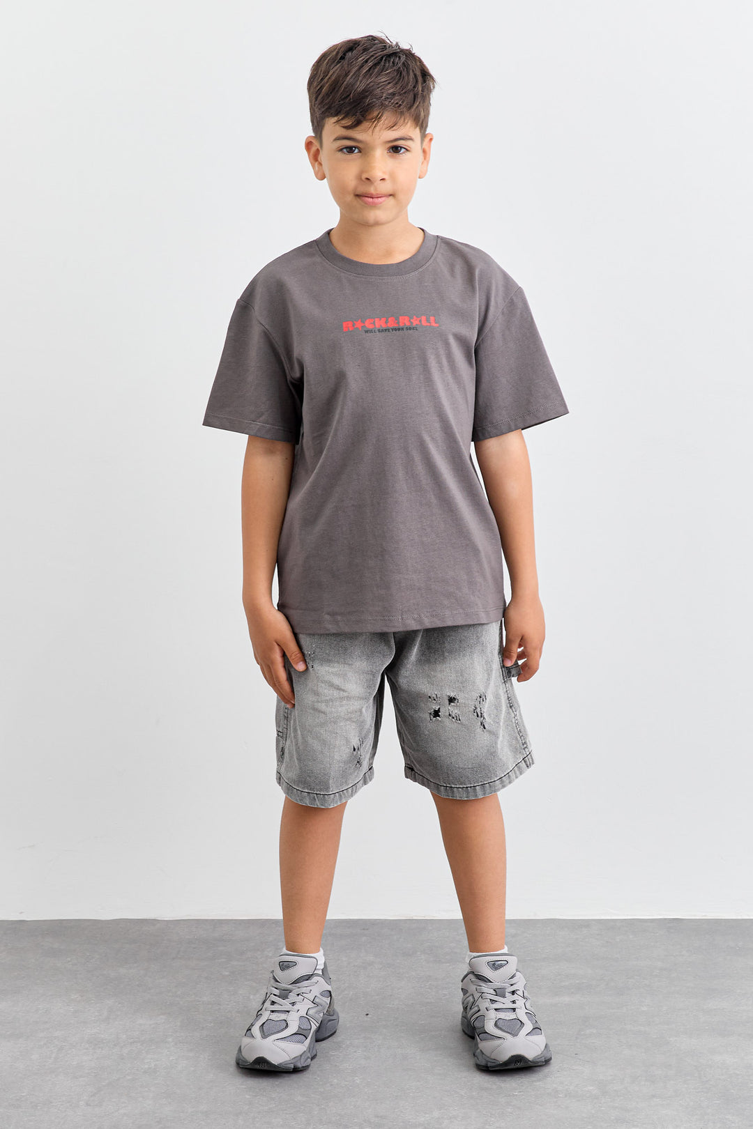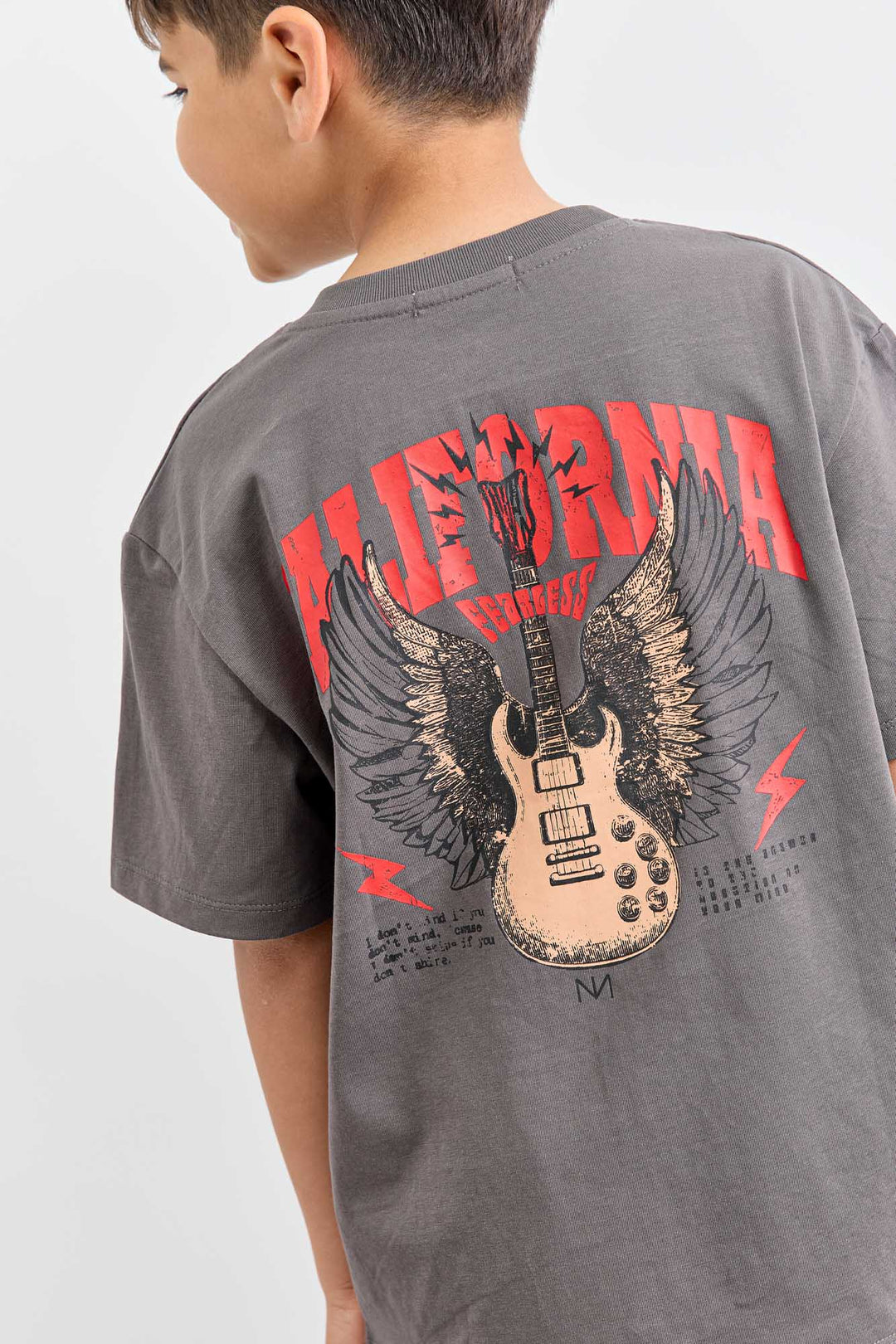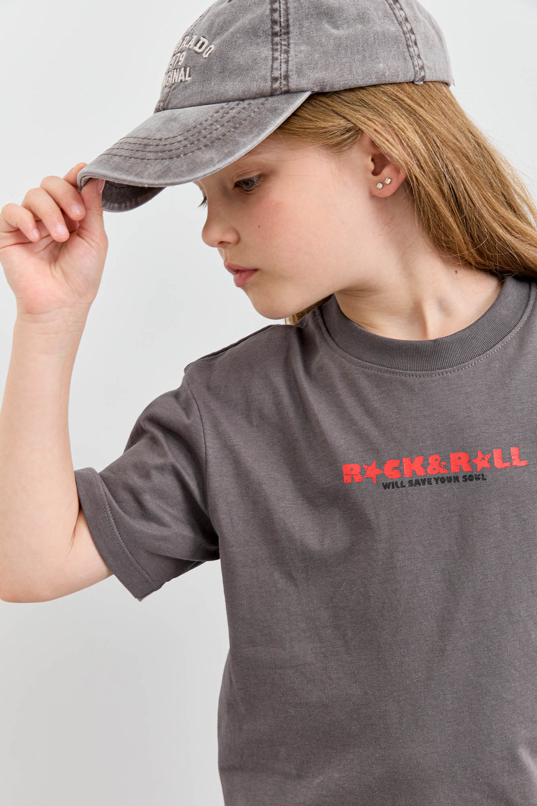 טי שירט ROCK&ROLL בגזרת אוברסייז | אפור כהה