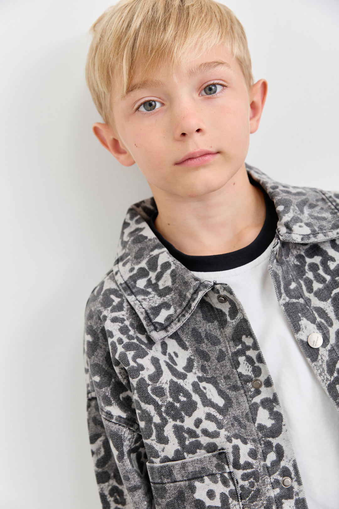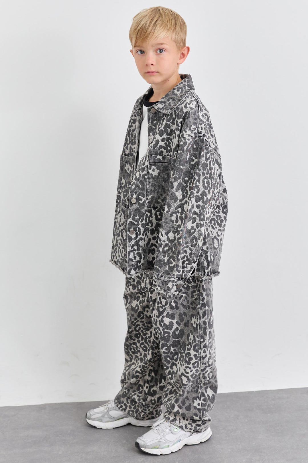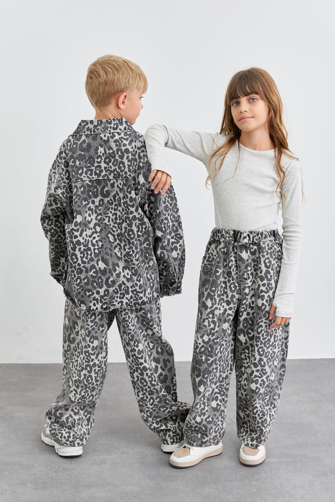 מכנסי דנים גריי לאופרד גומי במותן | מנומר