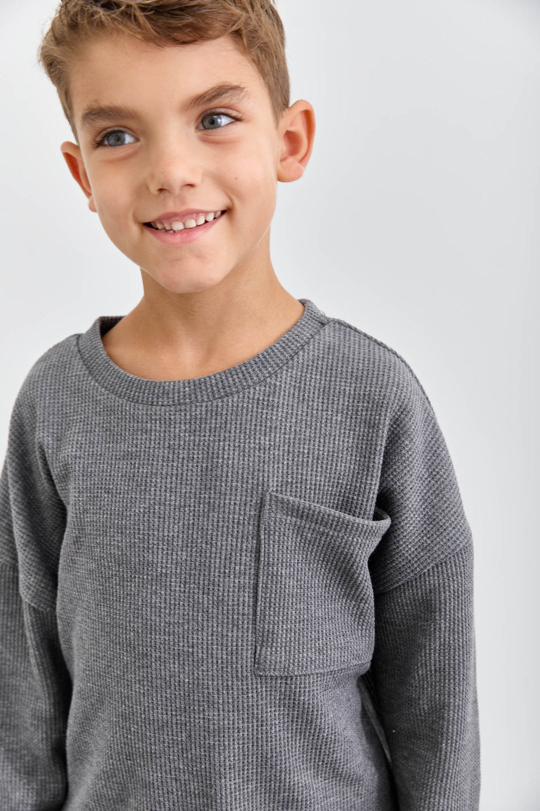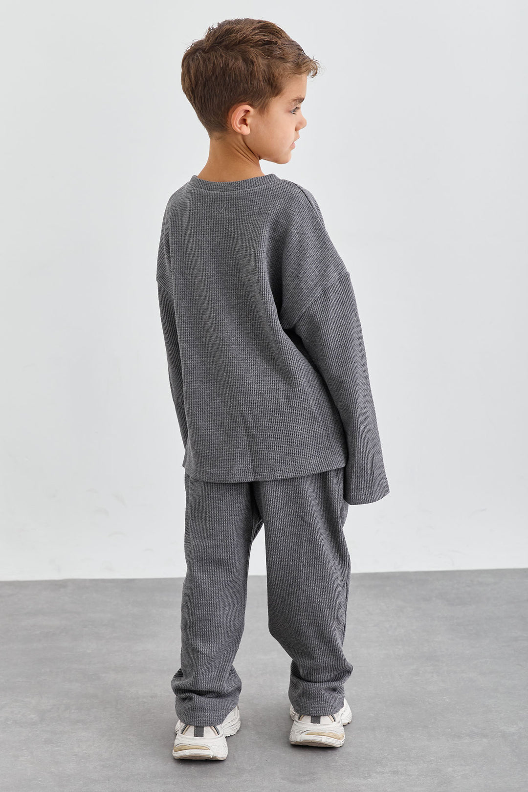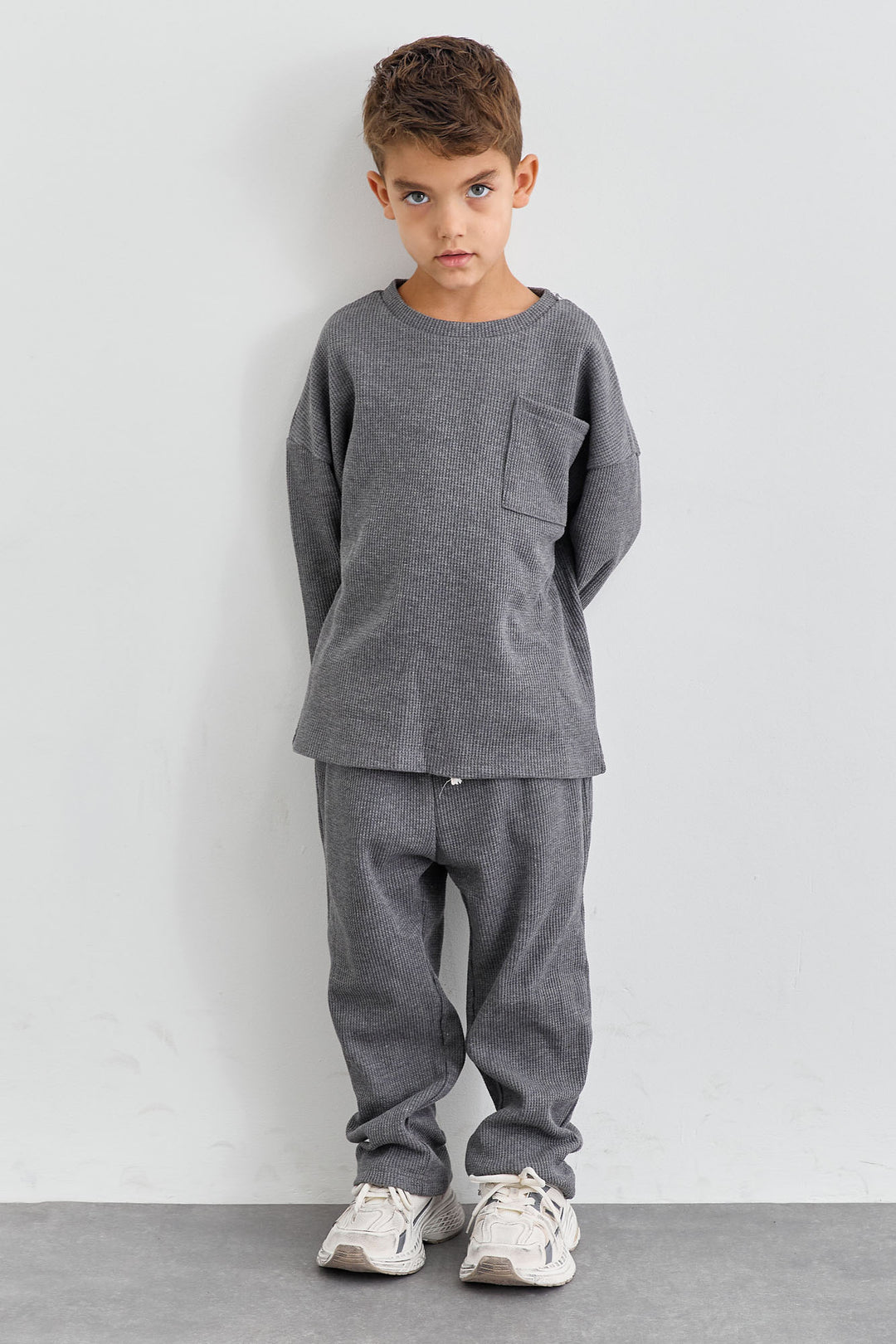 חליפת קים בד וופל בשילוב רקמת לוגו | אפור כהה