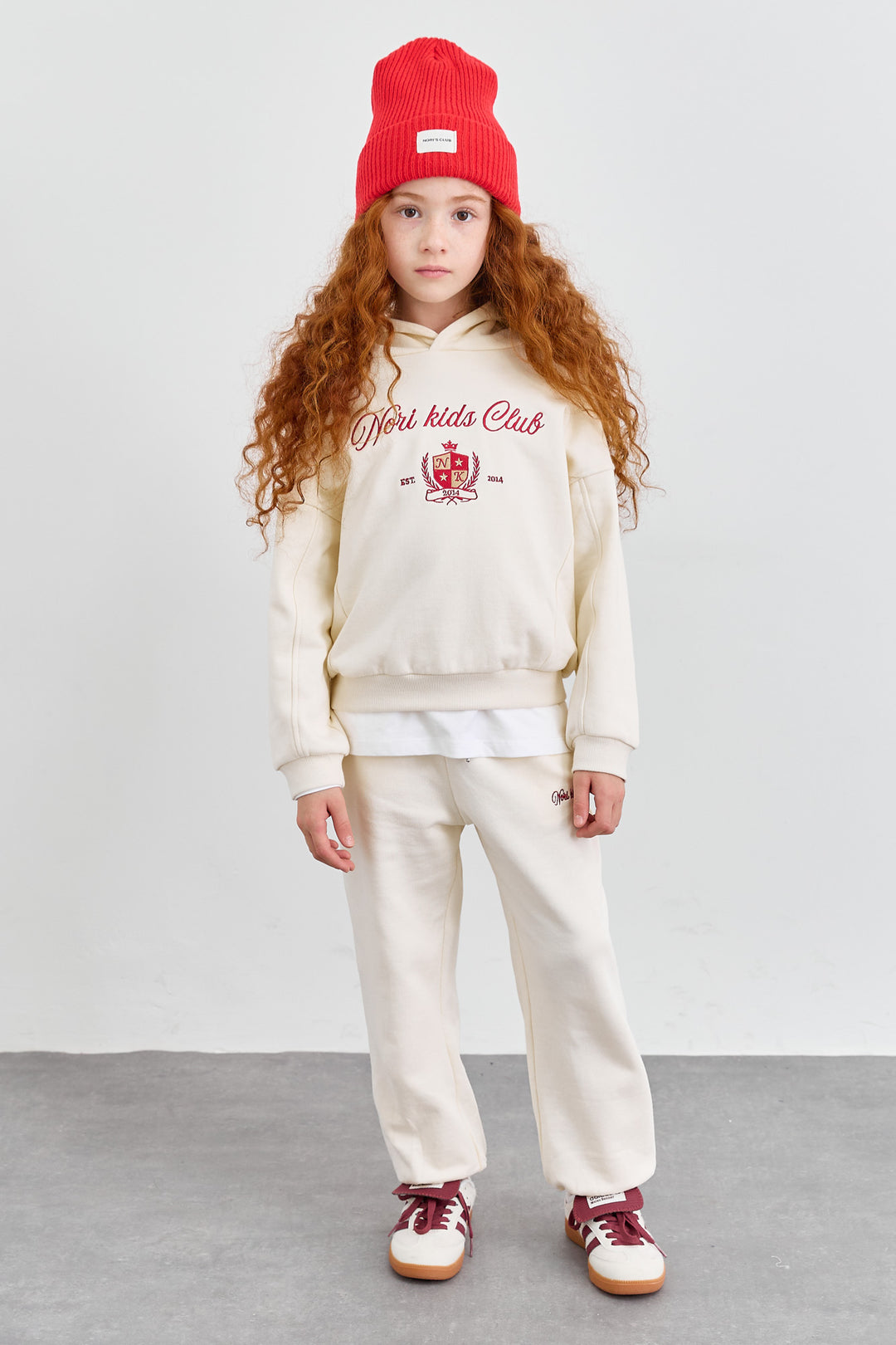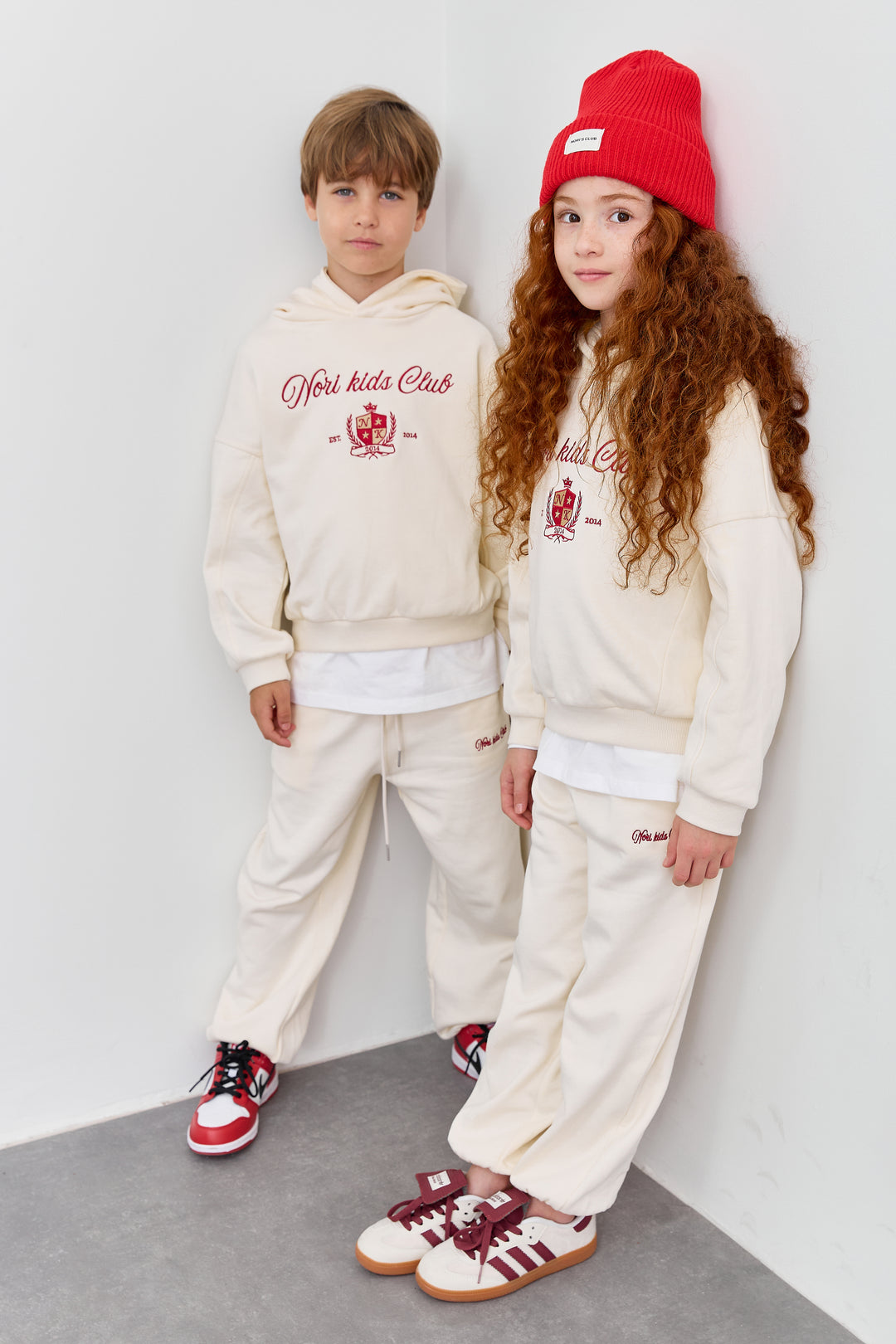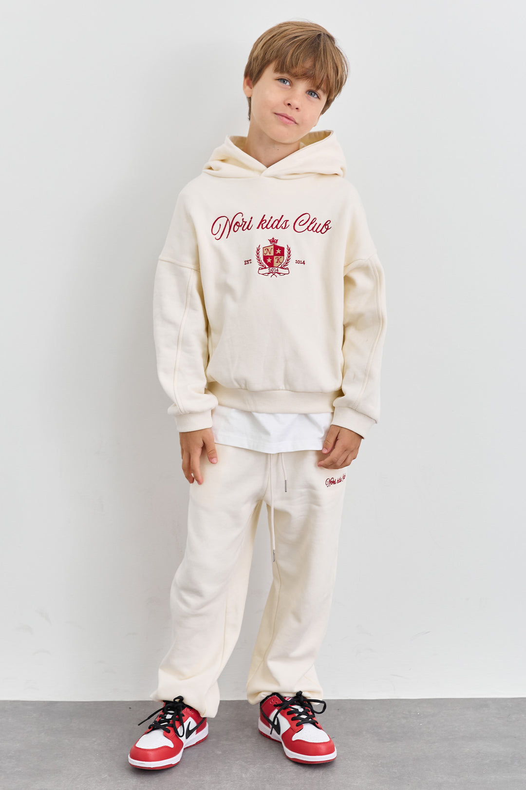 חליפת KIDS CLUB גזרת אוברסייז בשילוב רקמה | קרם