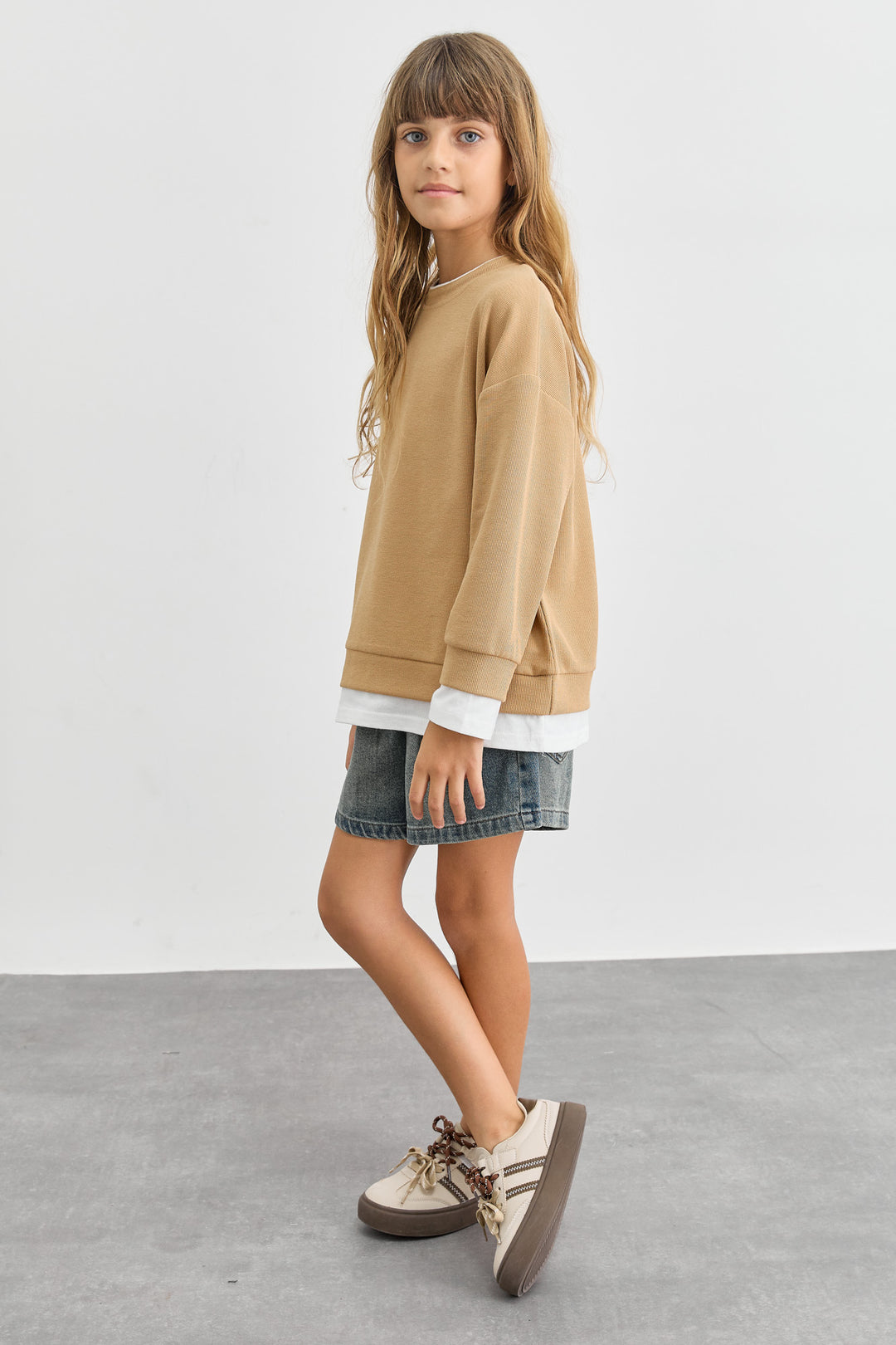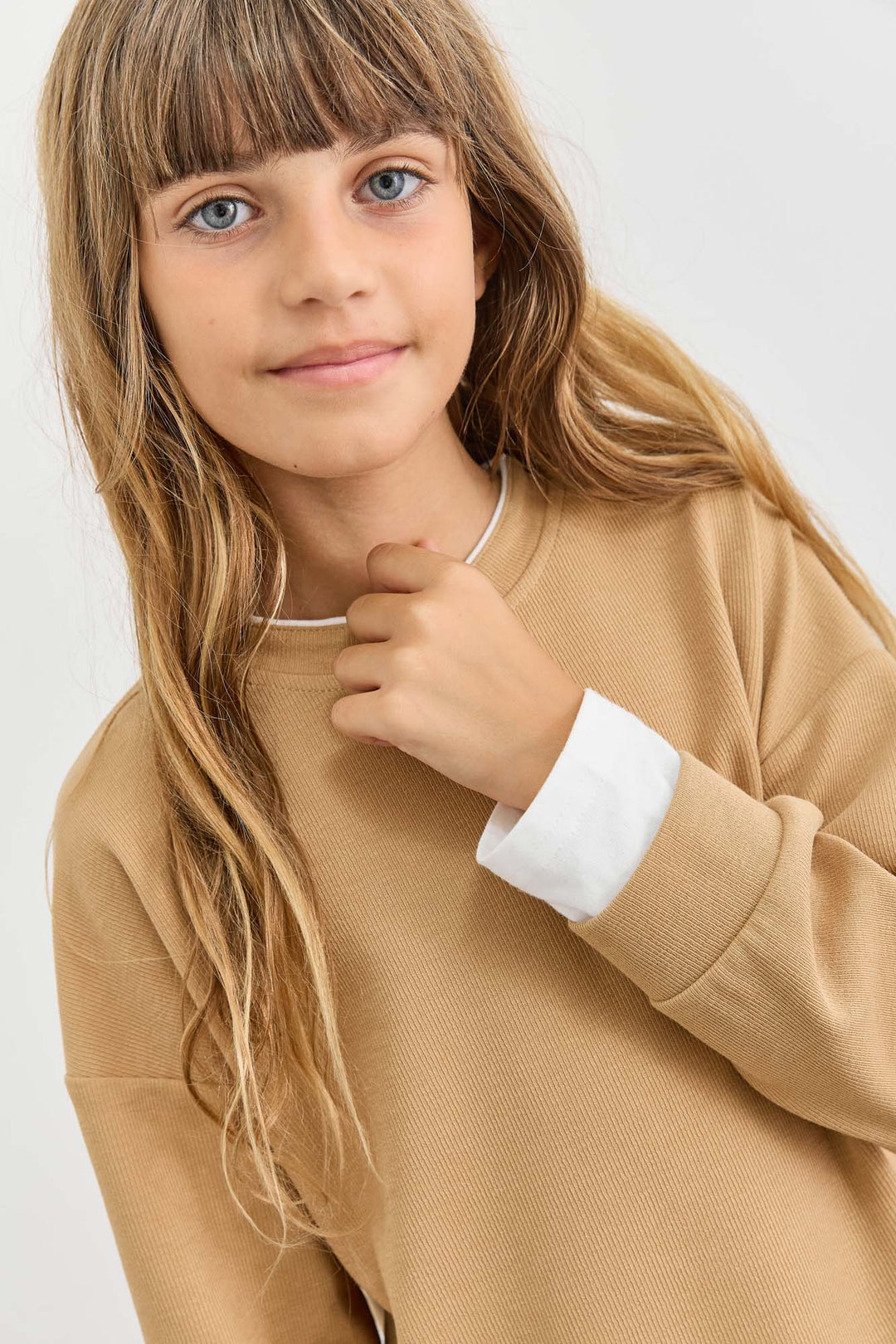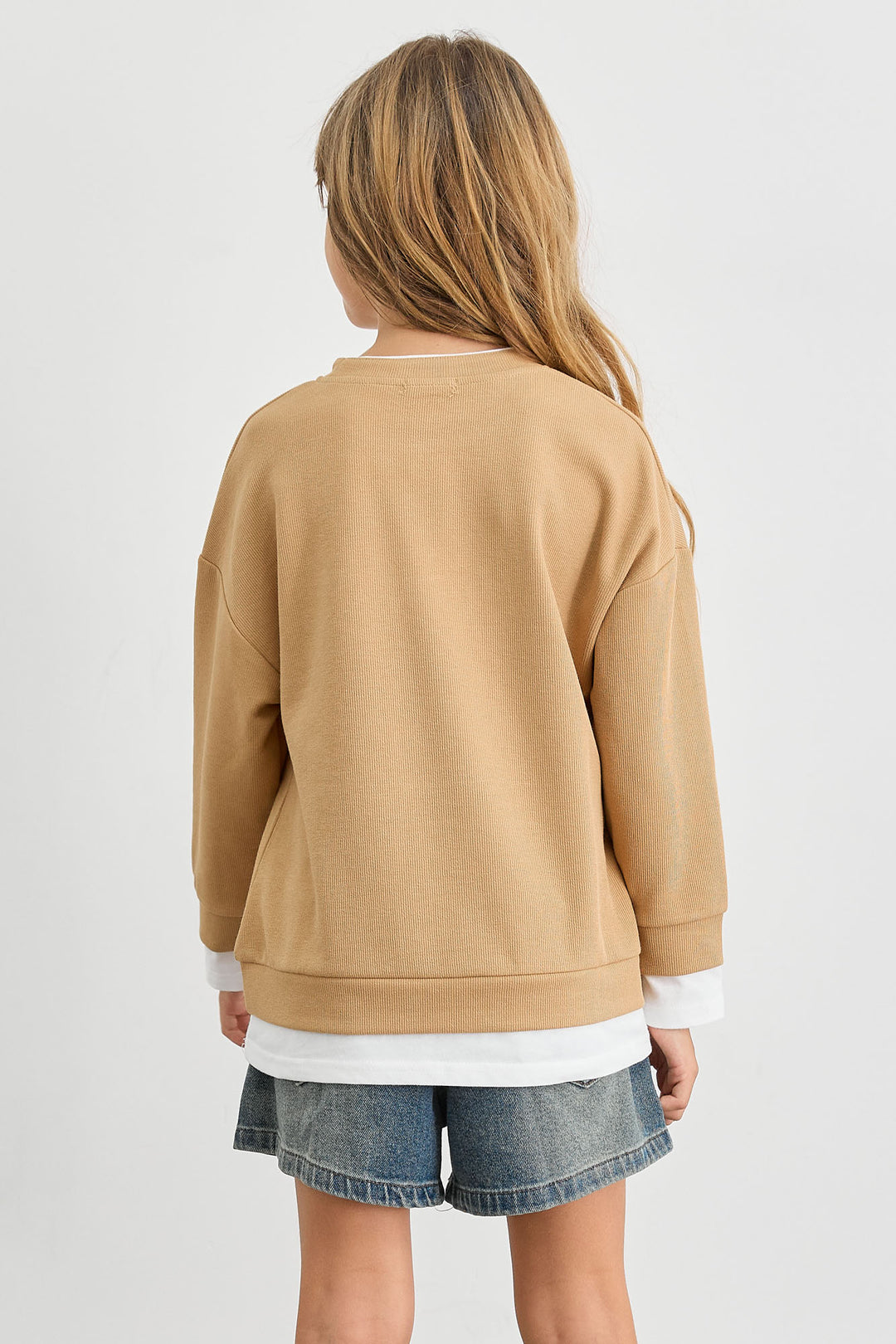 חליפת KIDS CLUB גזרת אוברסייז בשילוב רקמה | קרם