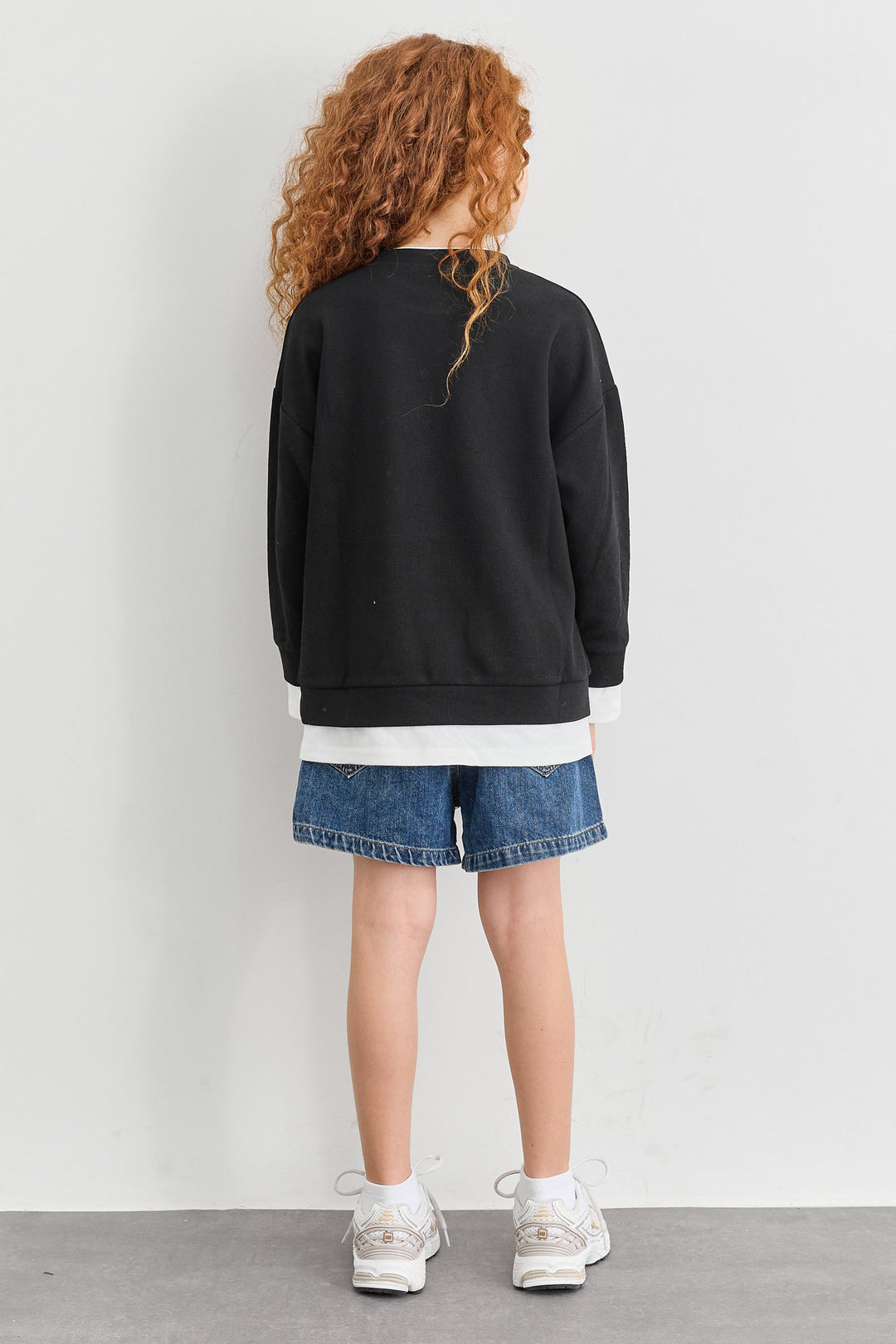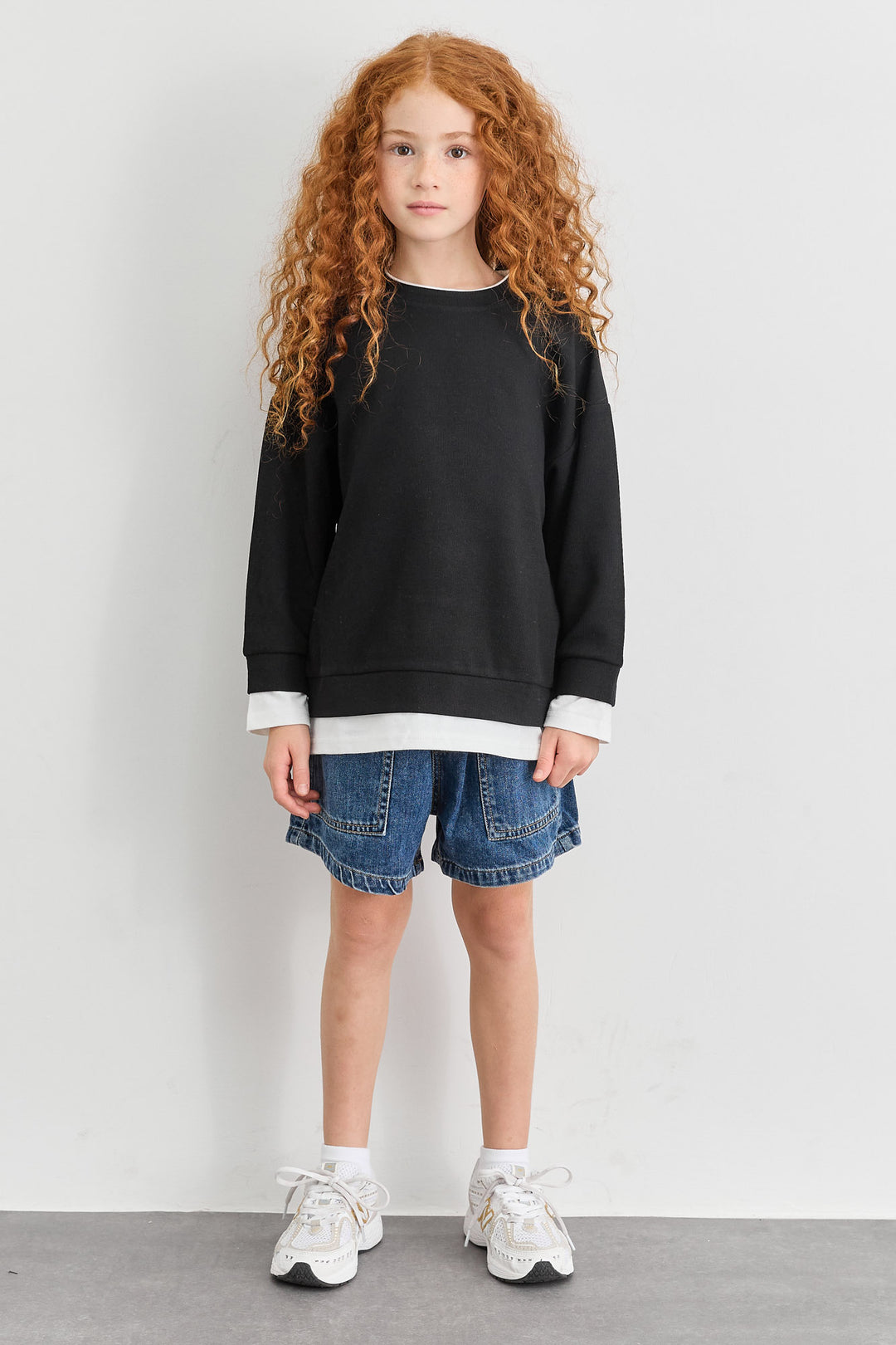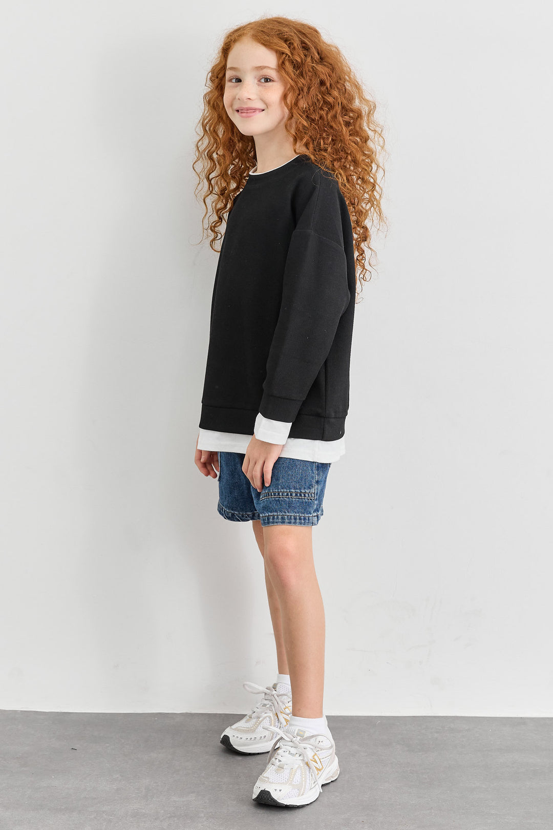חולצת ריב ארוכה בשילוב כפתורים | שחור