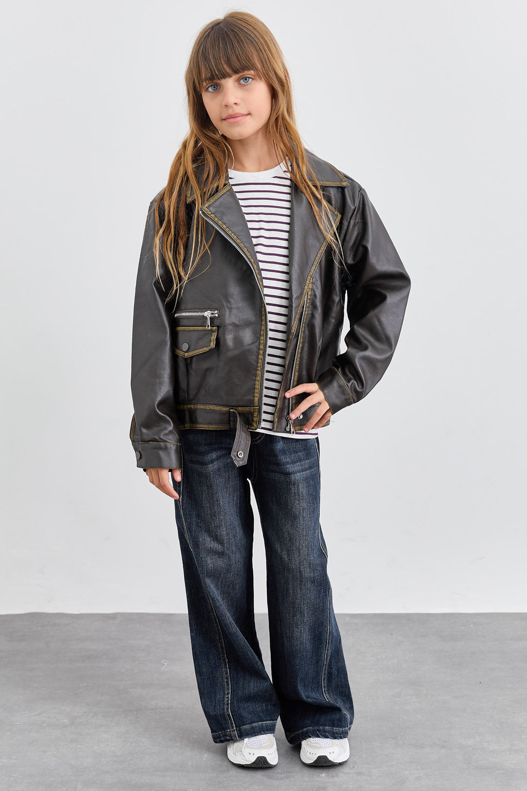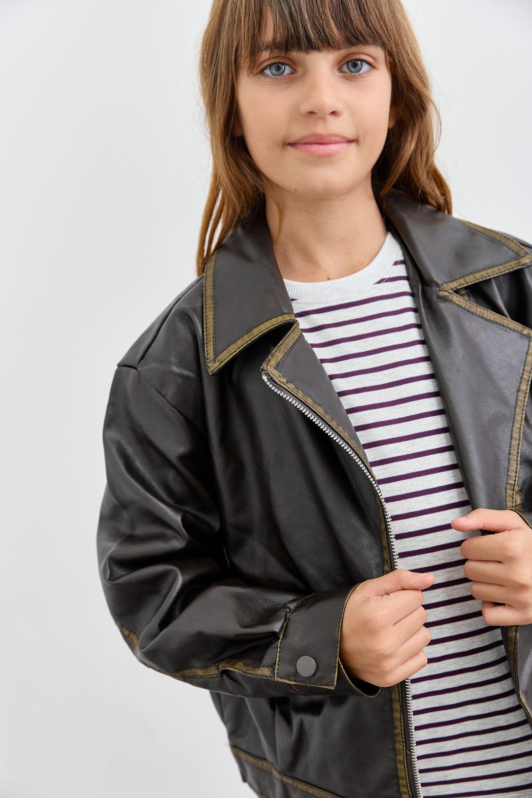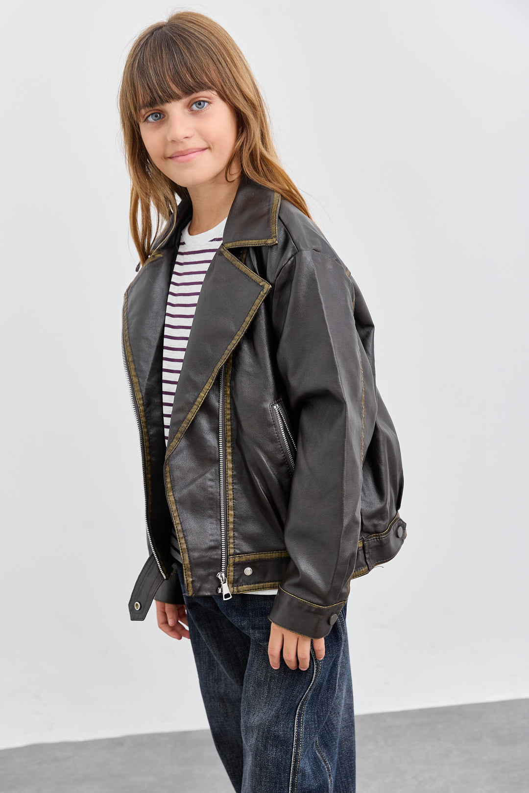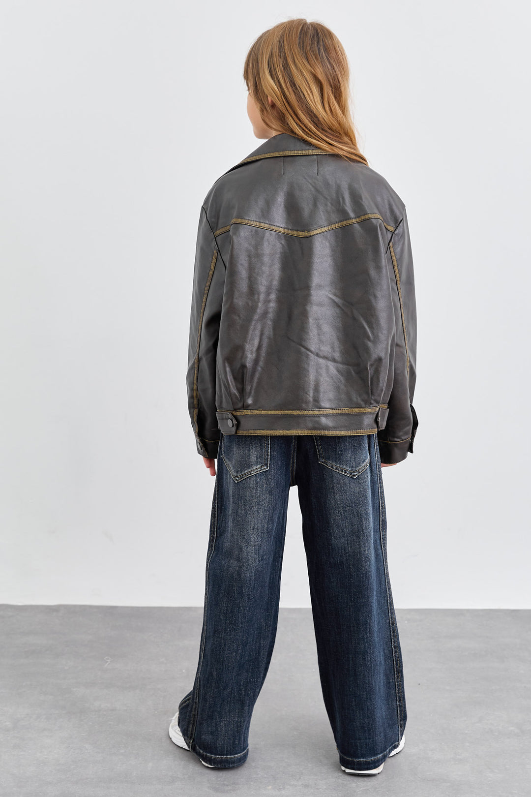 מעיל אוברסייז דמוי עור במראה משופשף | שחור