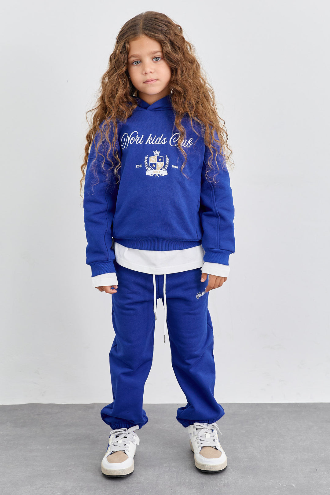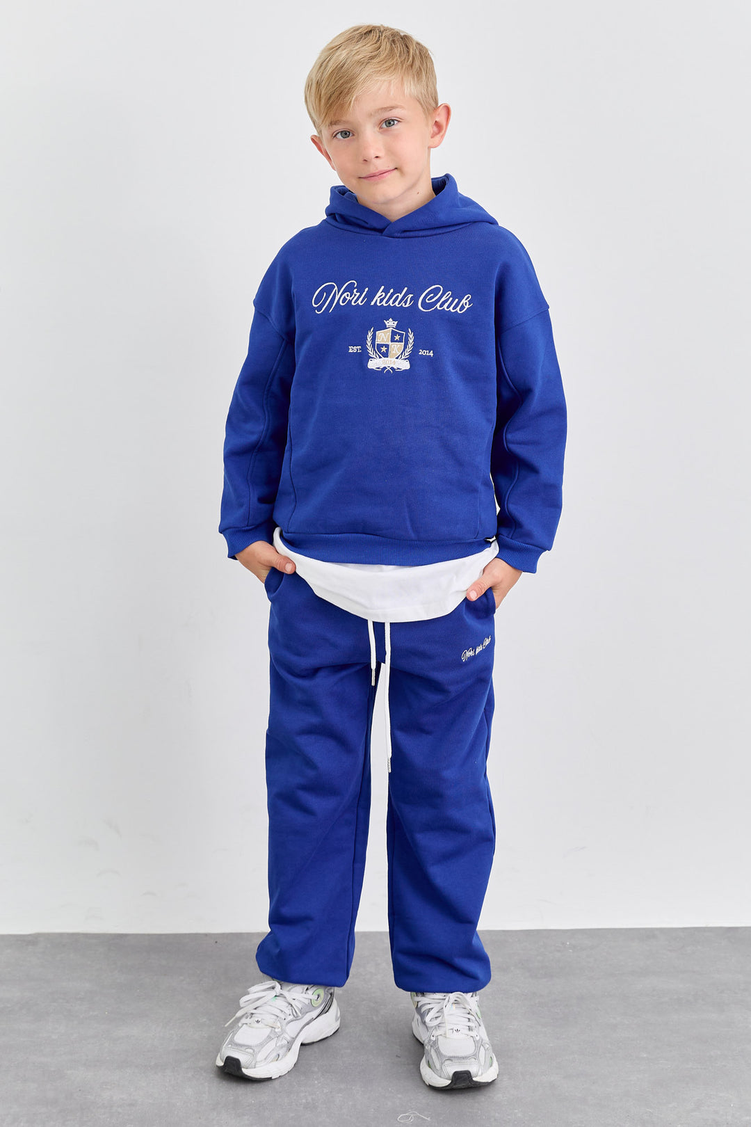 חליפת KIDS CLUB גזרת אוברסייז בשילוב רקמה | כחול