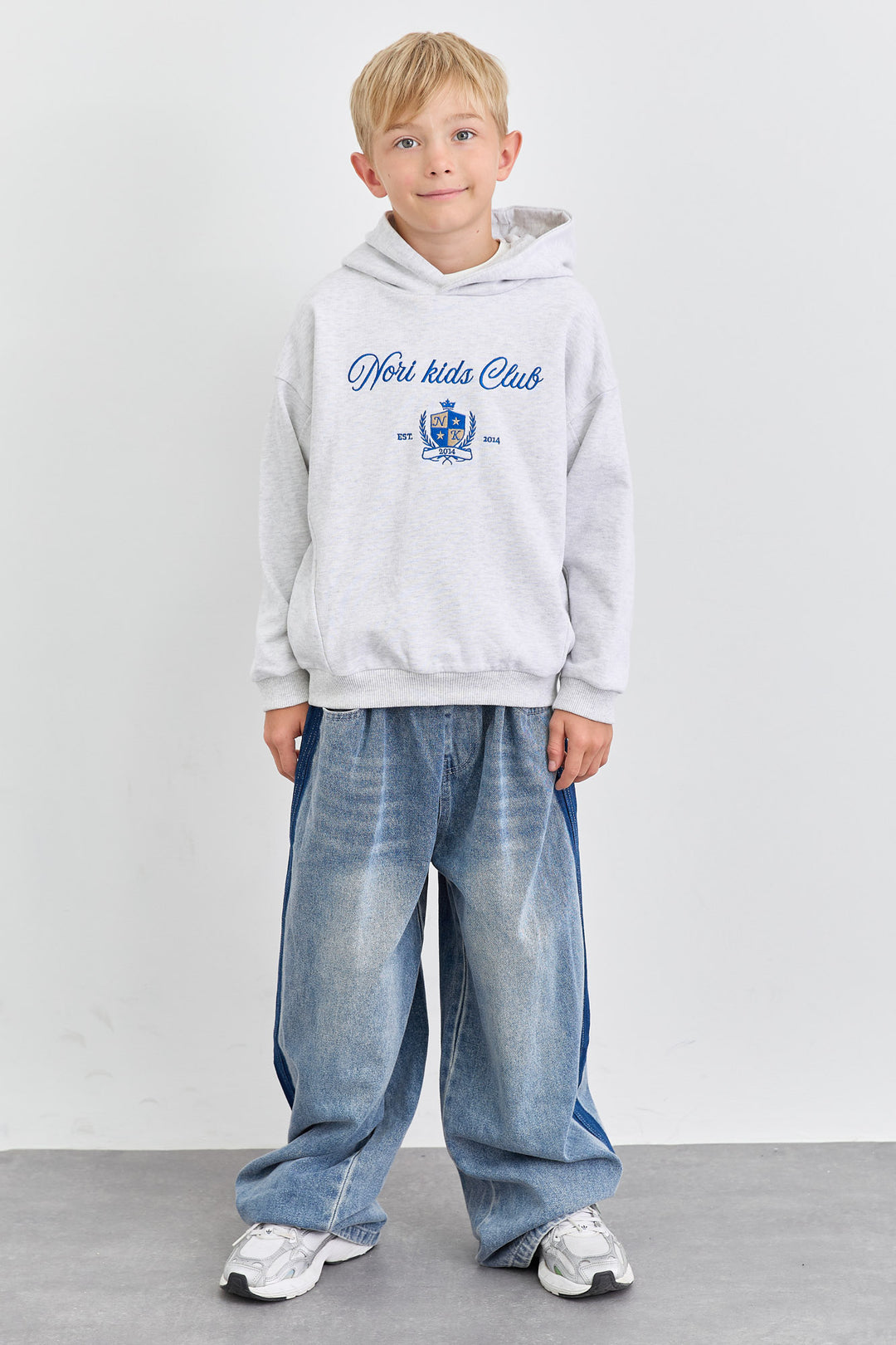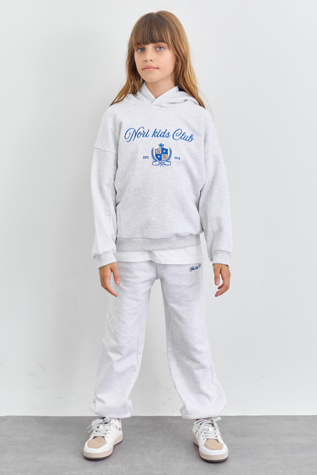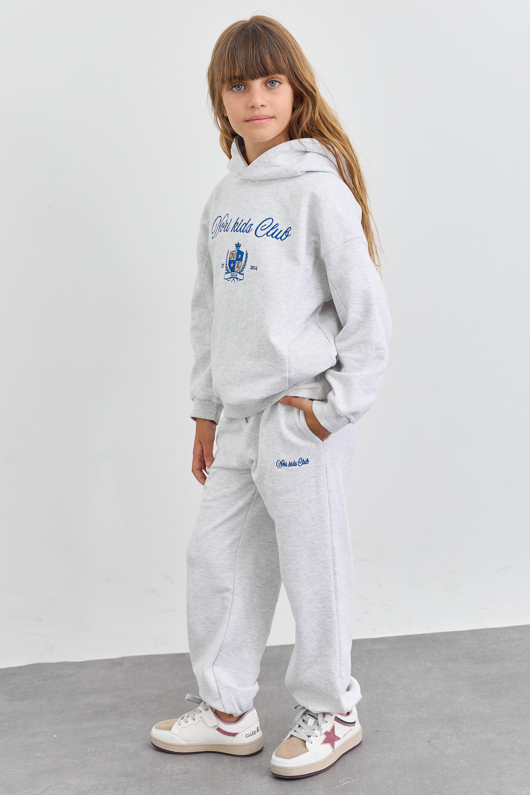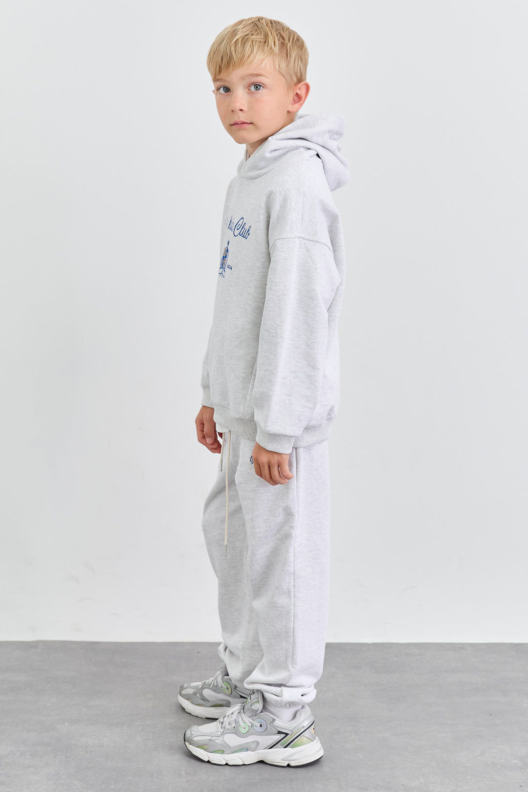 חליפת KIDS CLUB גזרת אוברסייז בשילוב רקמה | אפור