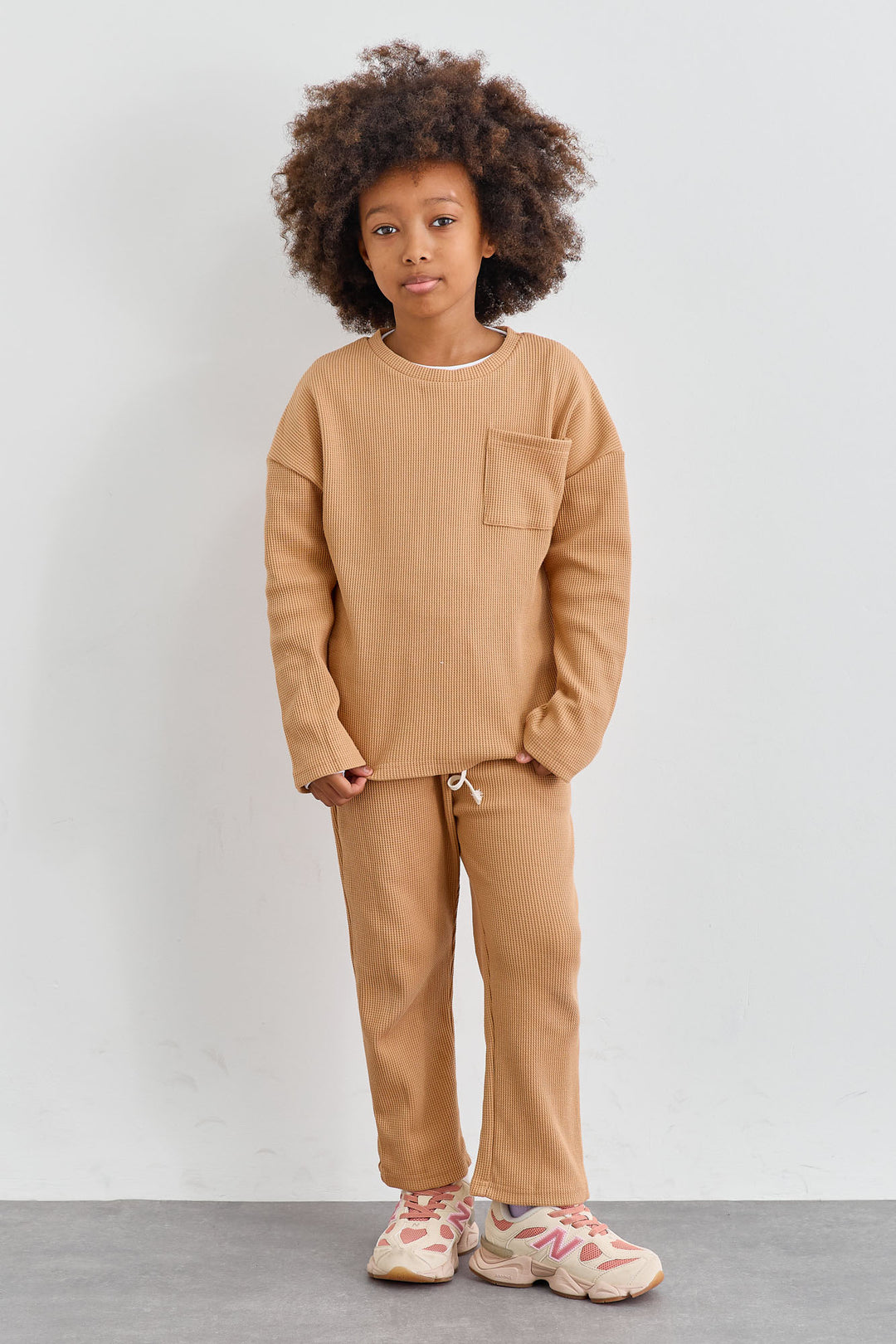 חליפת רוי בד וופל בשילוב רקמת לוגו | חום