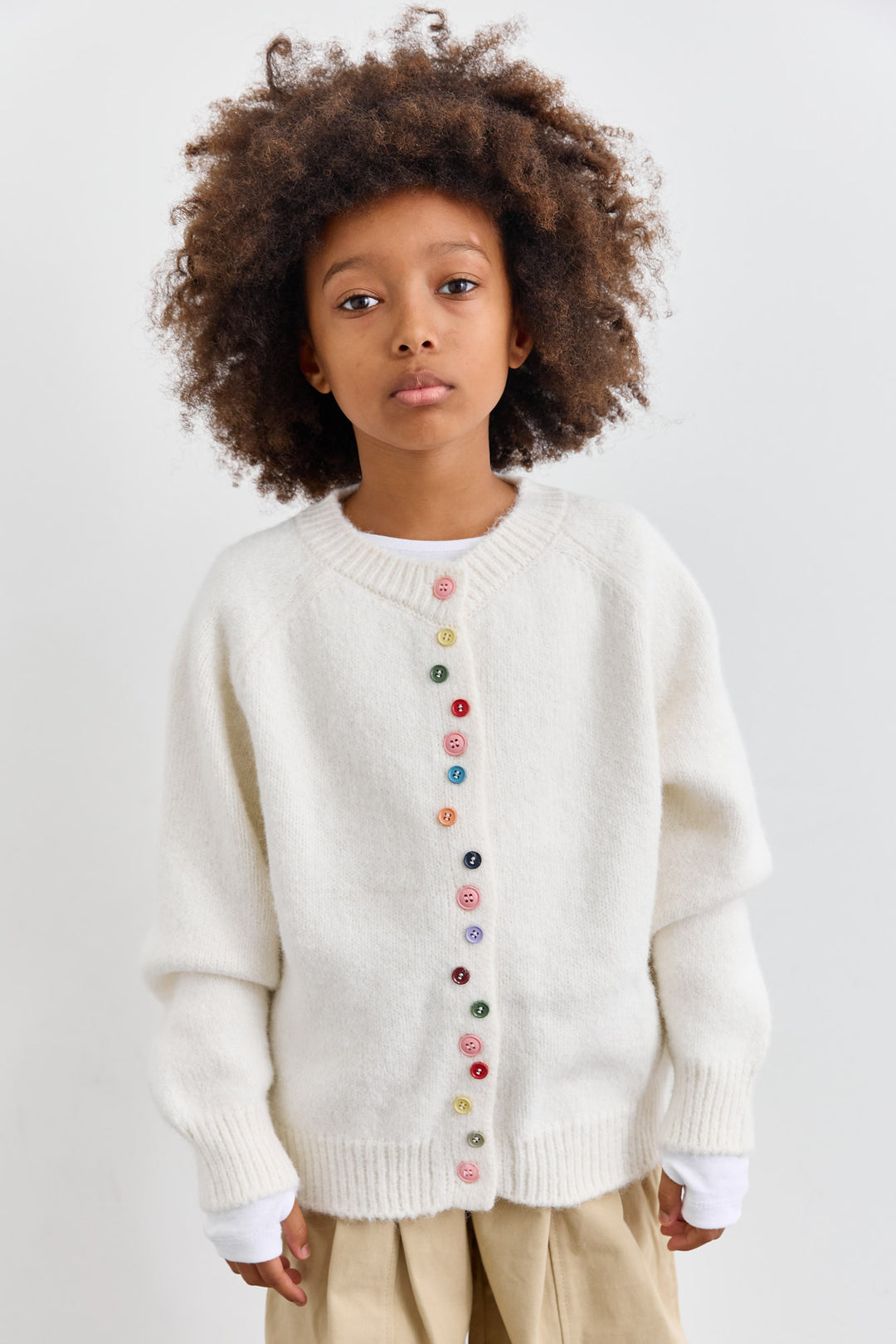 ג'קט סריג בשילוב כפתורים צבעוניים | קרם