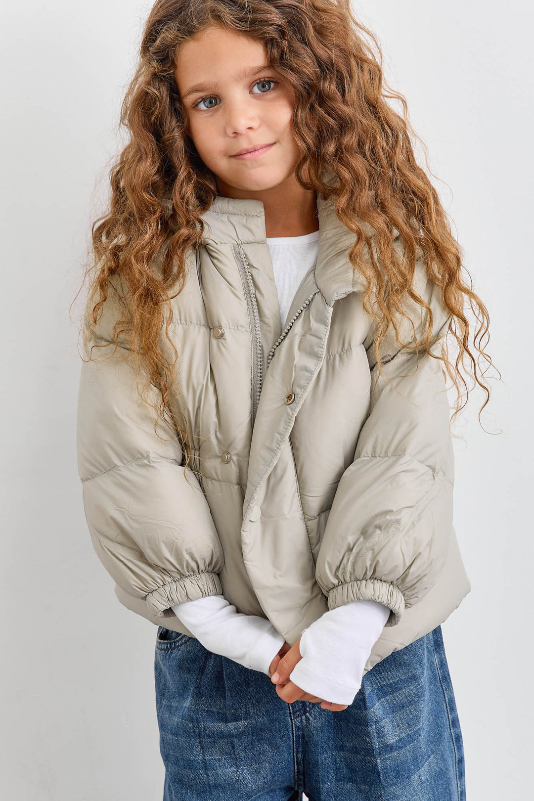 מעיל פוף בשילוב קפוצ'ון | בז'