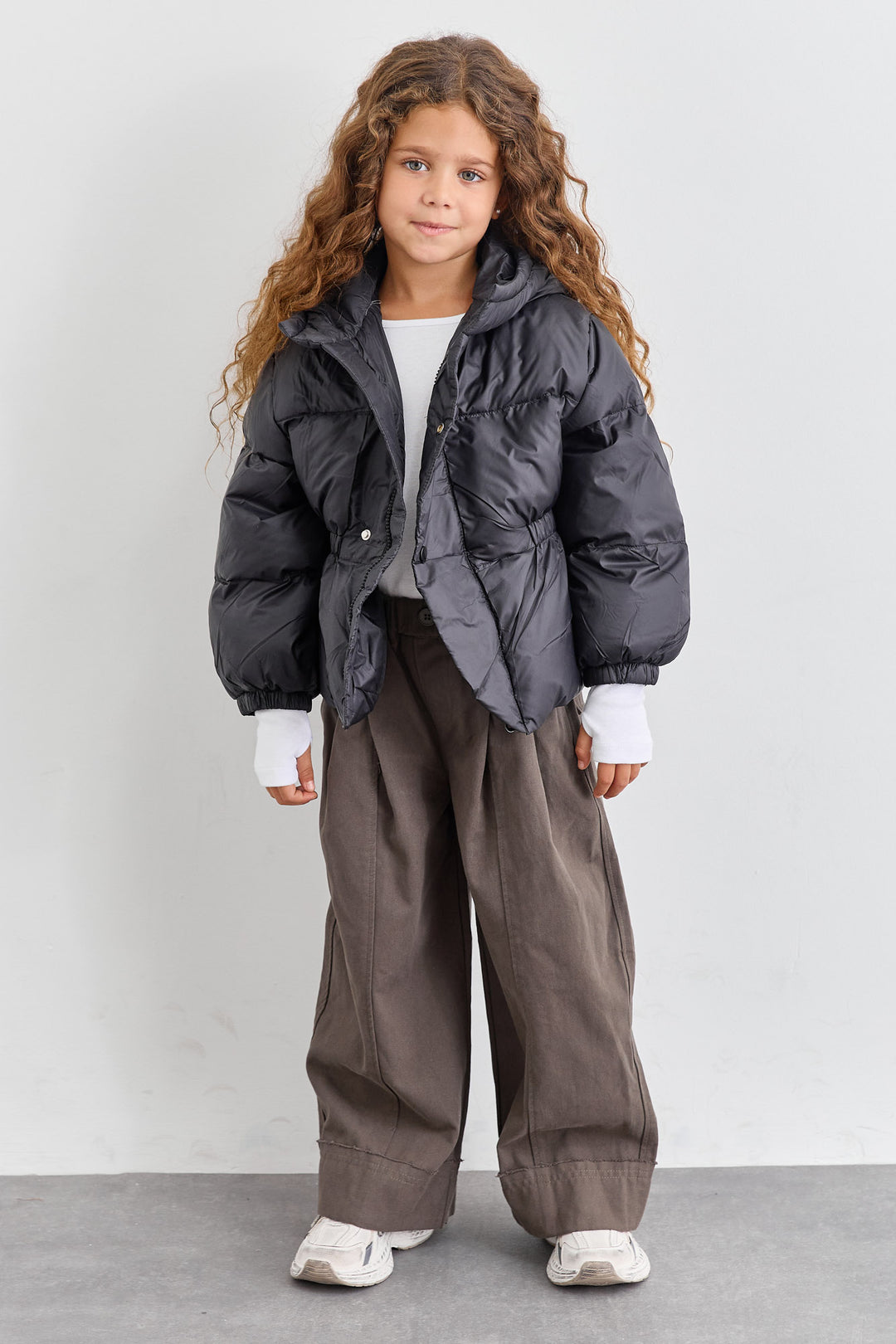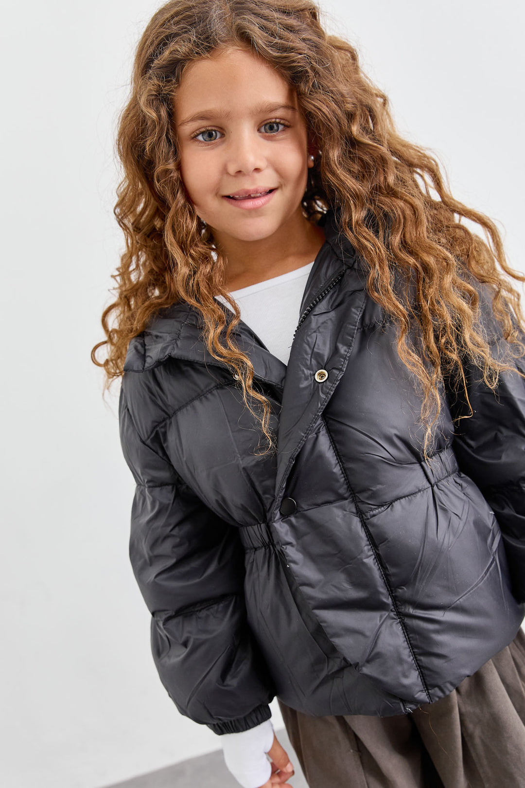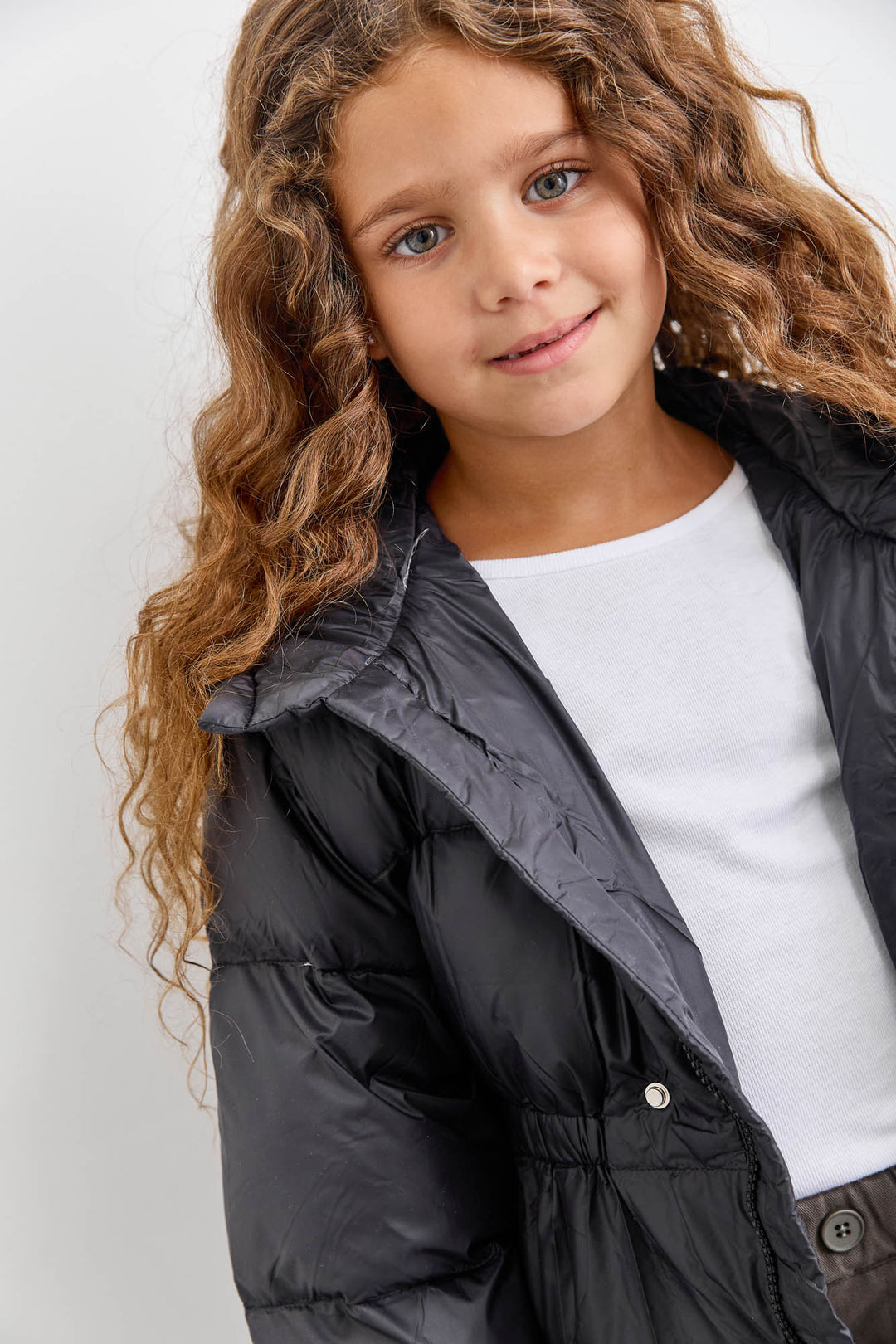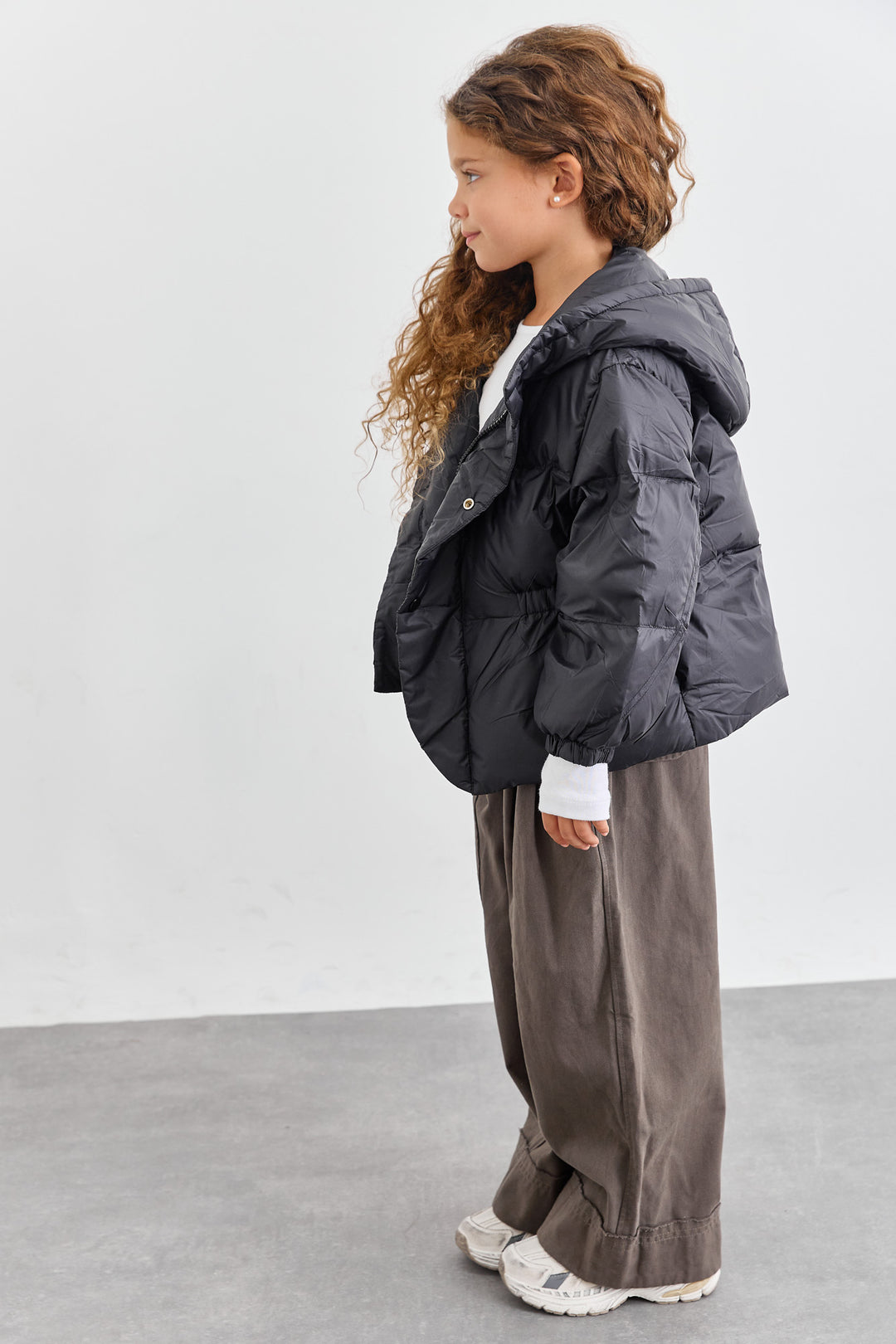 מעיל פוף בשילוב קפוצ'ון | שחור