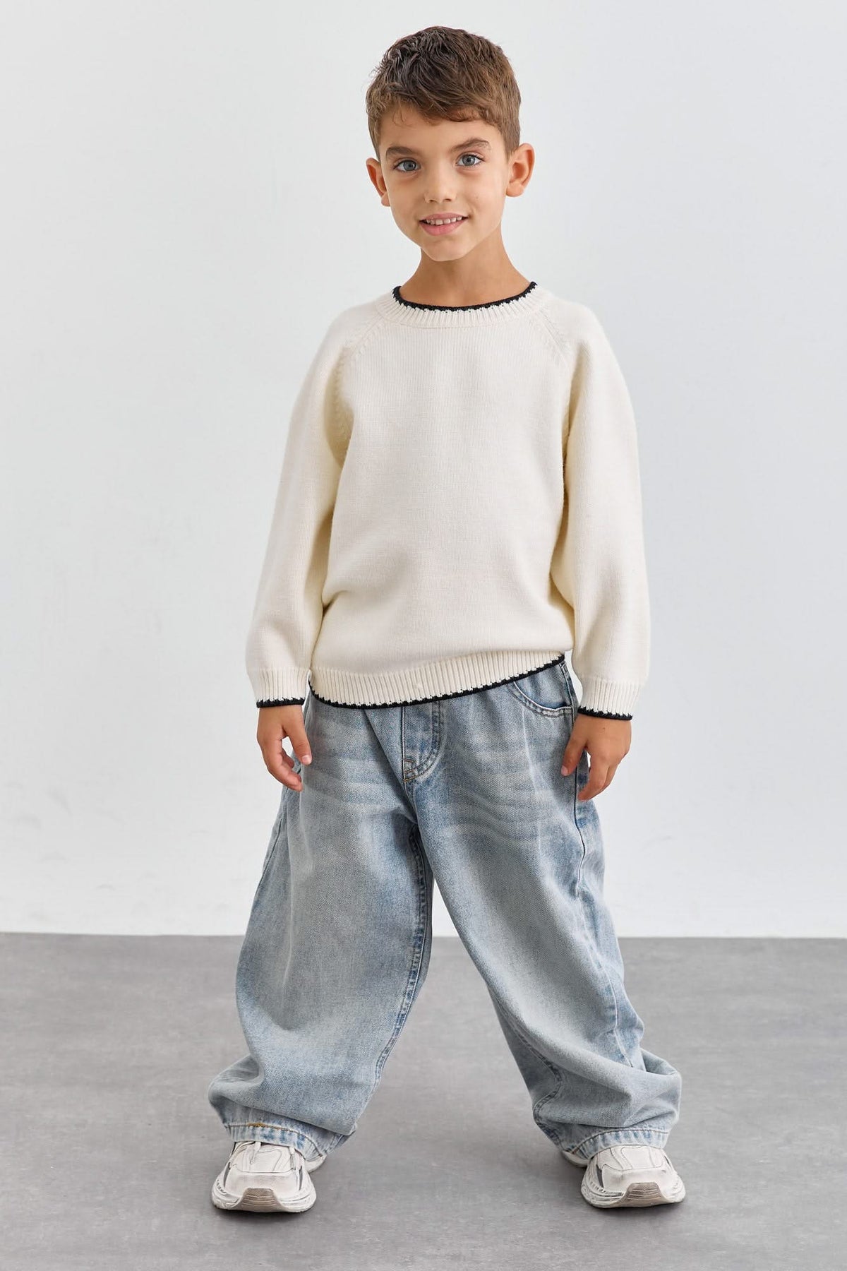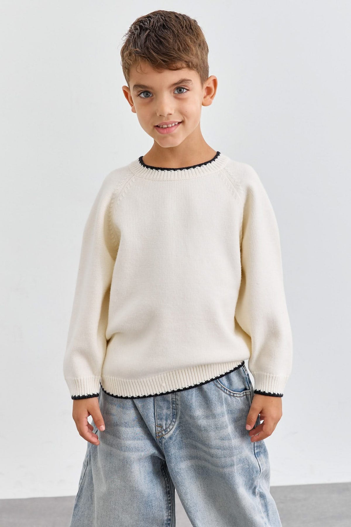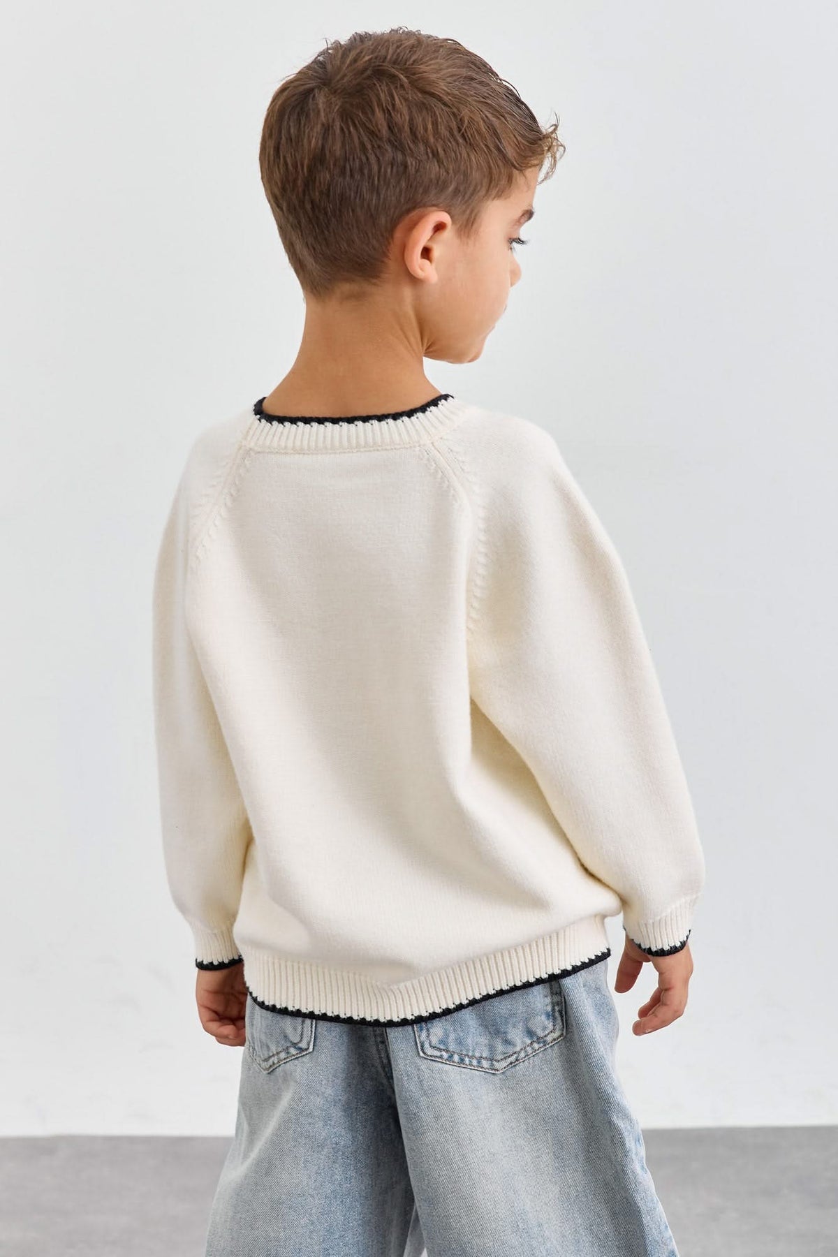 סריג יוניסקס בגזרת אוברסייז מבד רך ונעים עם סיומת עיטור בצבע אחר