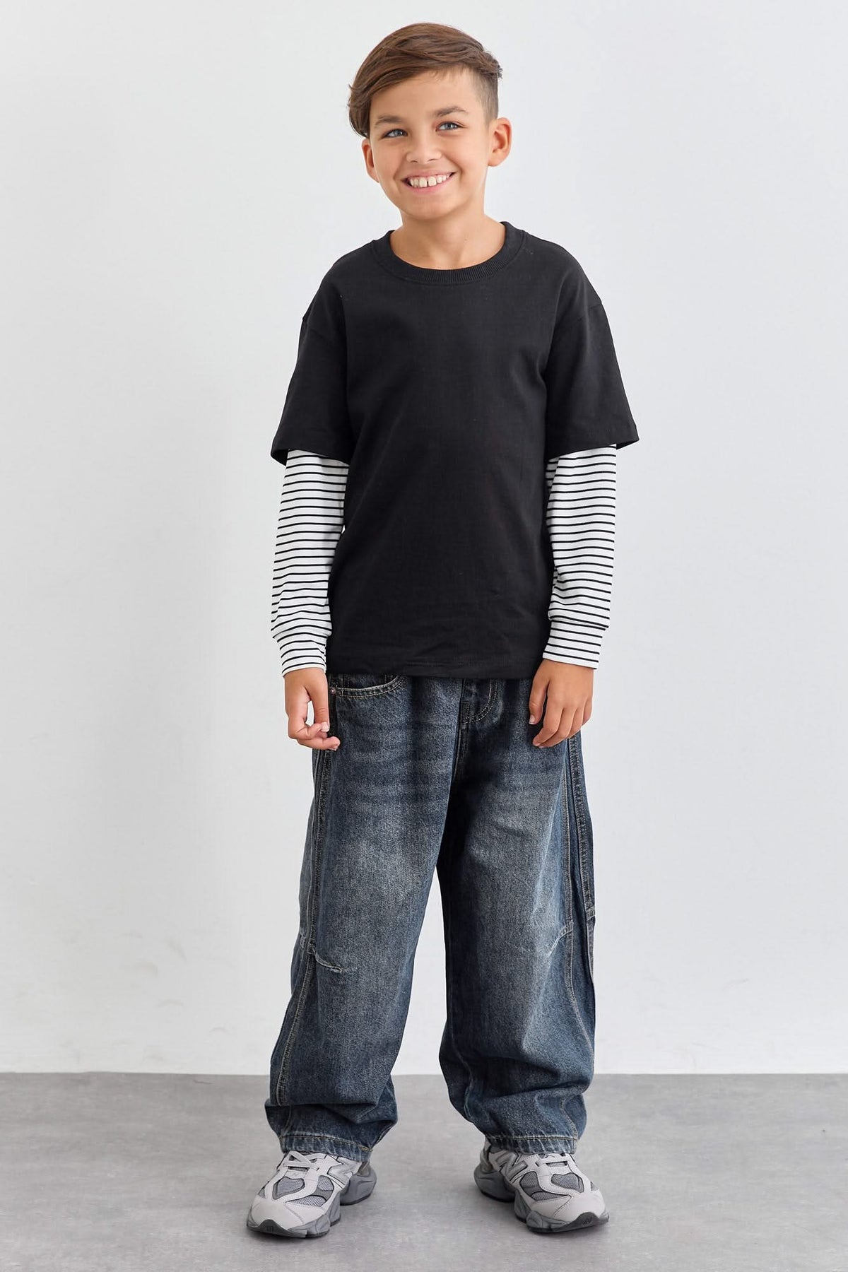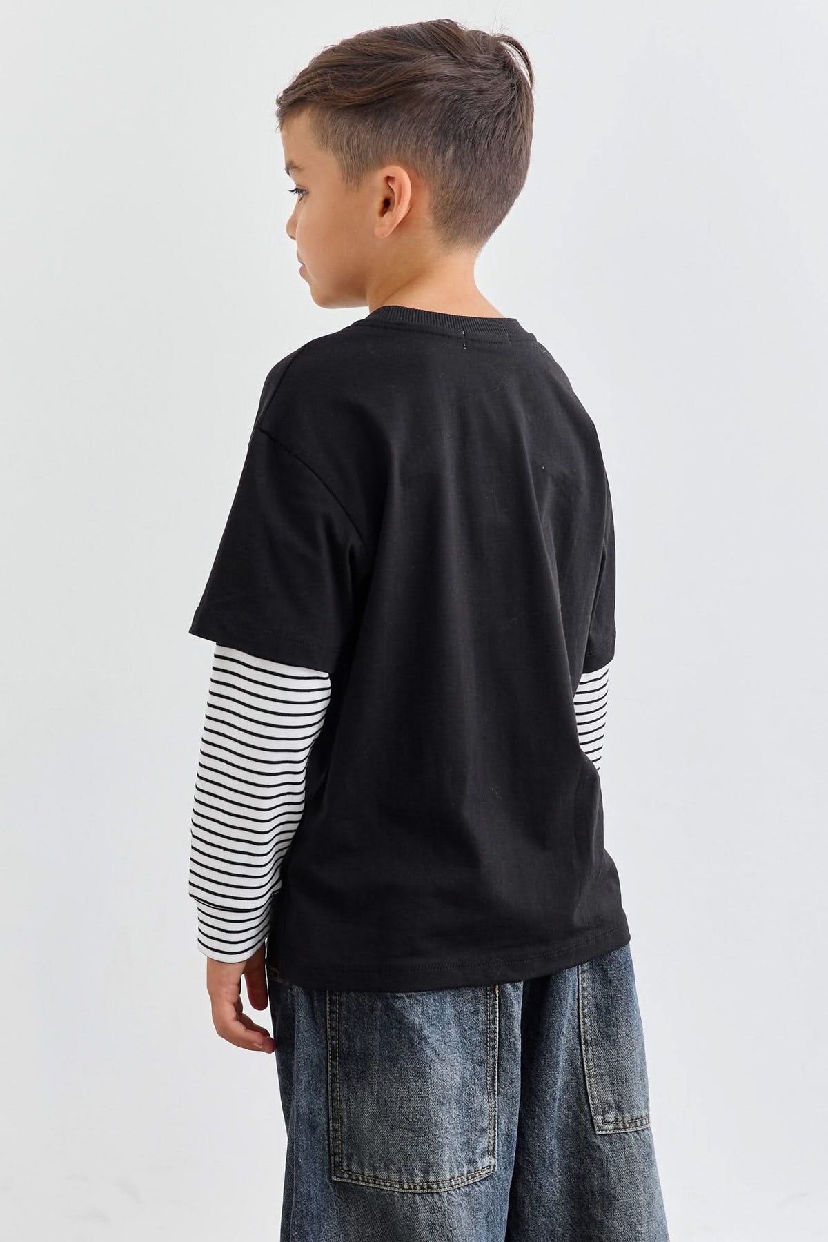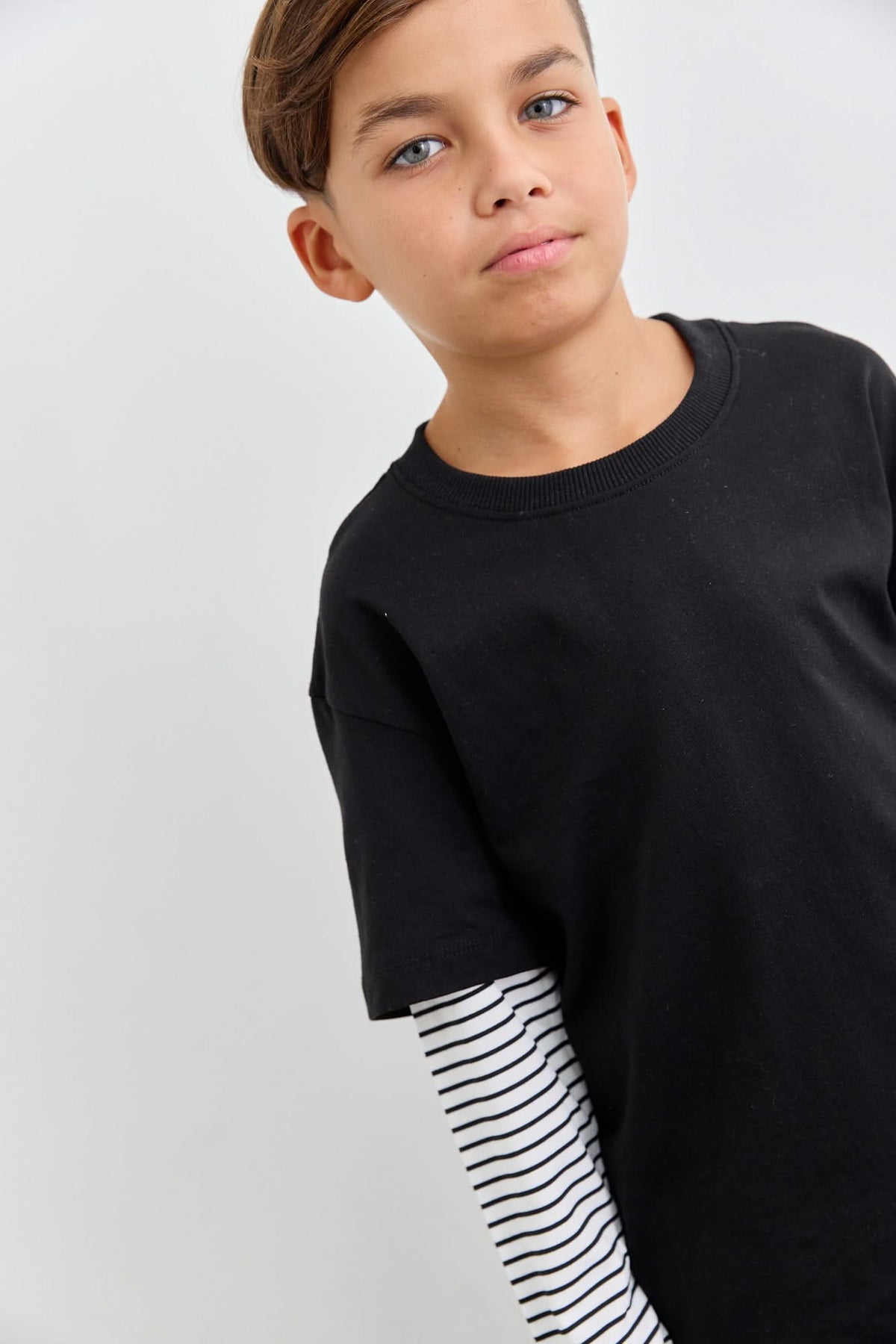 טי שירט יוניסקס בגזרת אוברסייז עם שרוול משולב מבד פסים