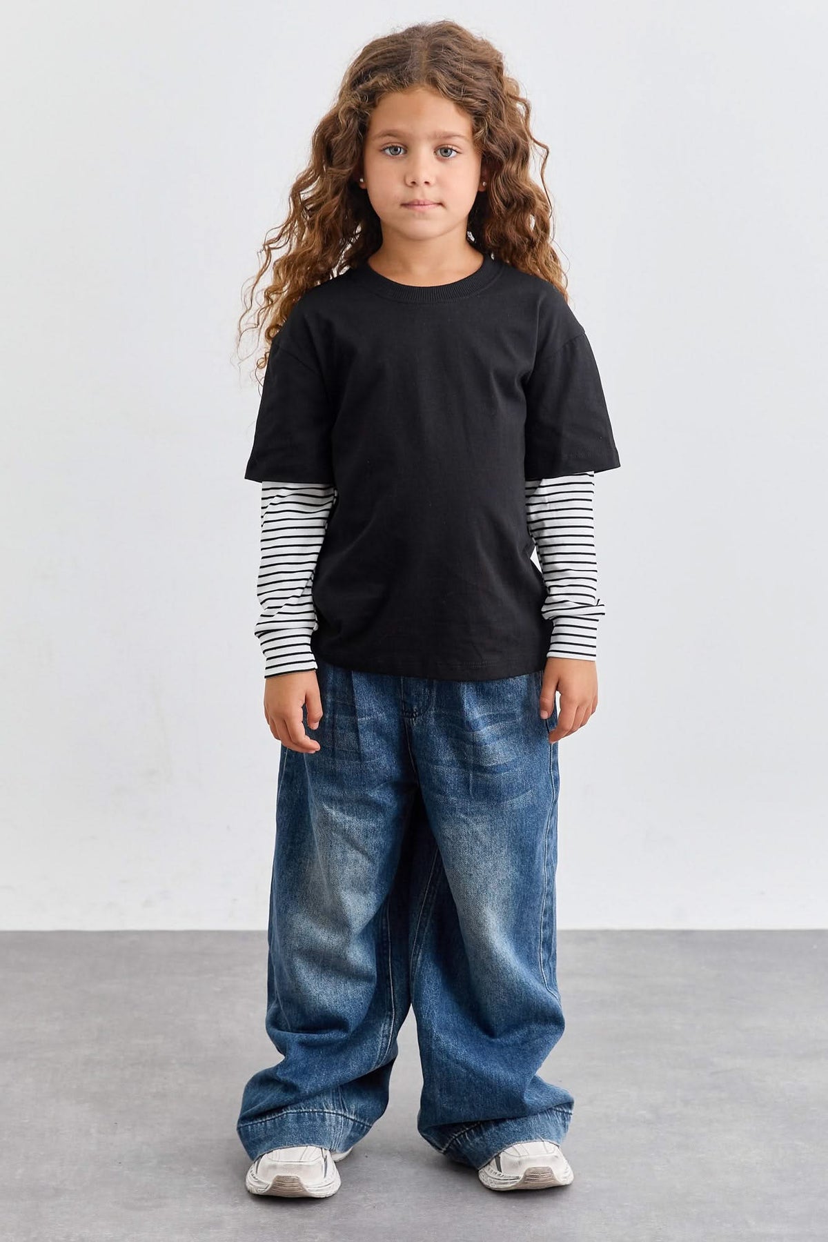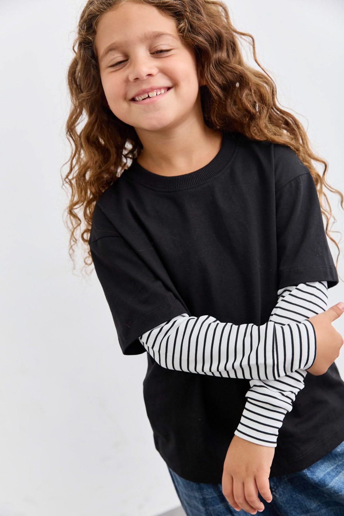 טי אוברסייז שרוולי סטרייפס | שחור