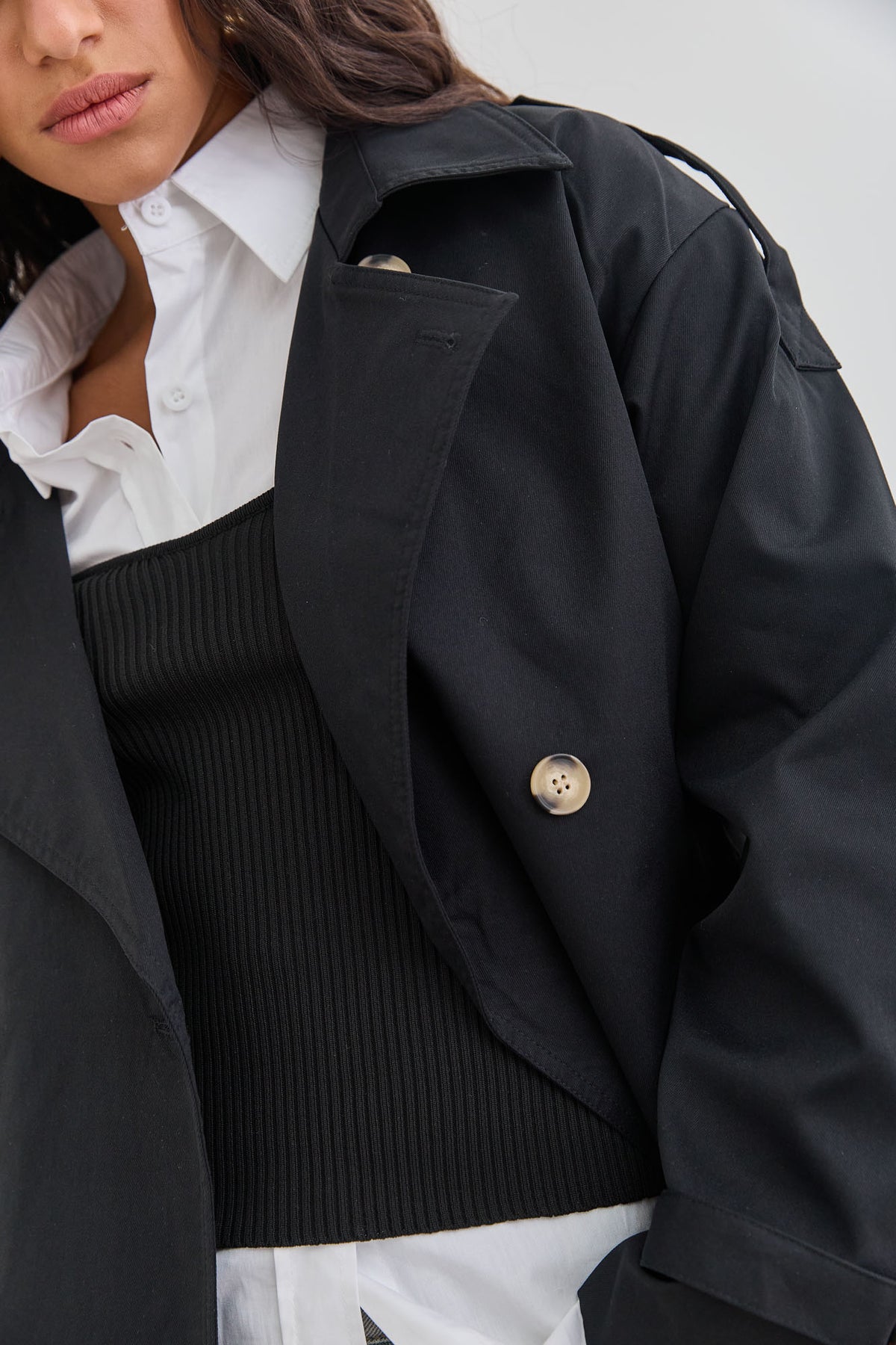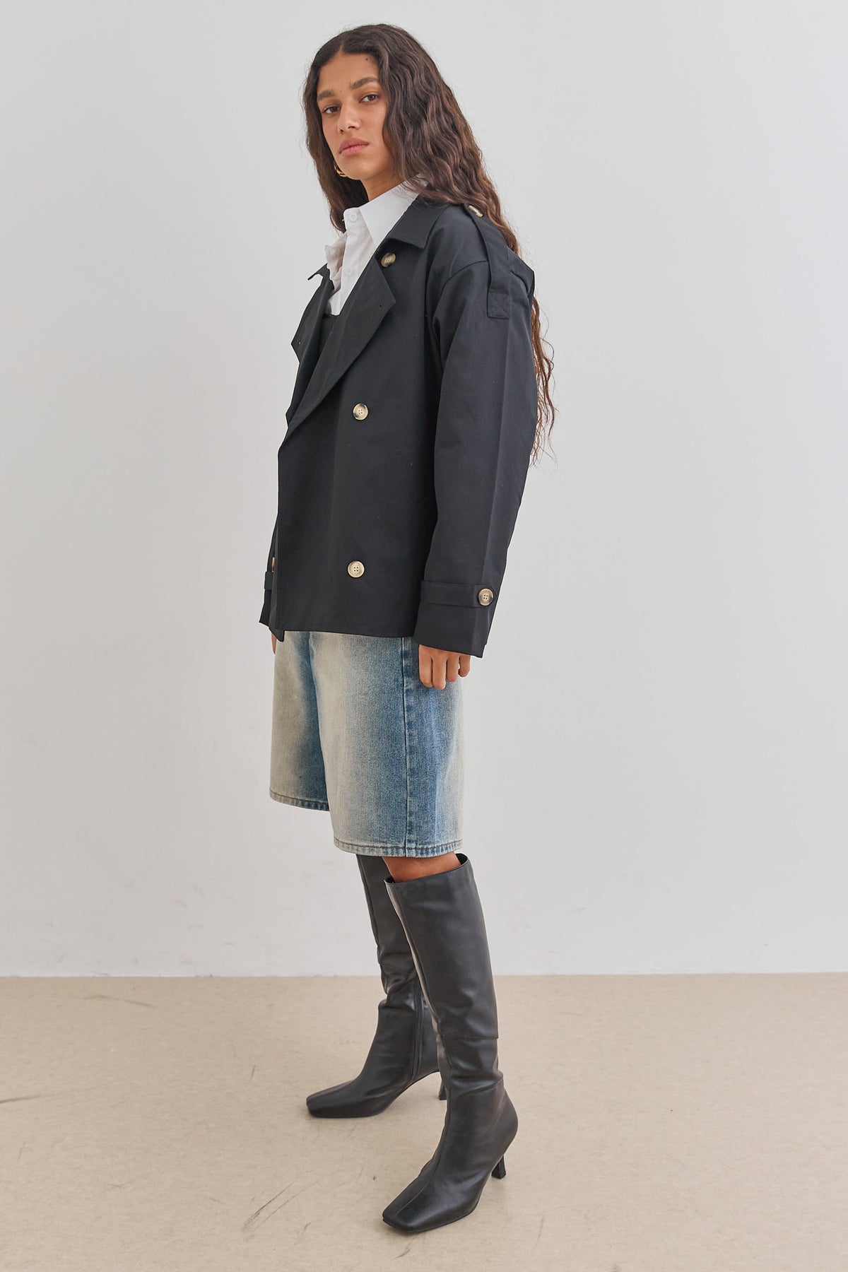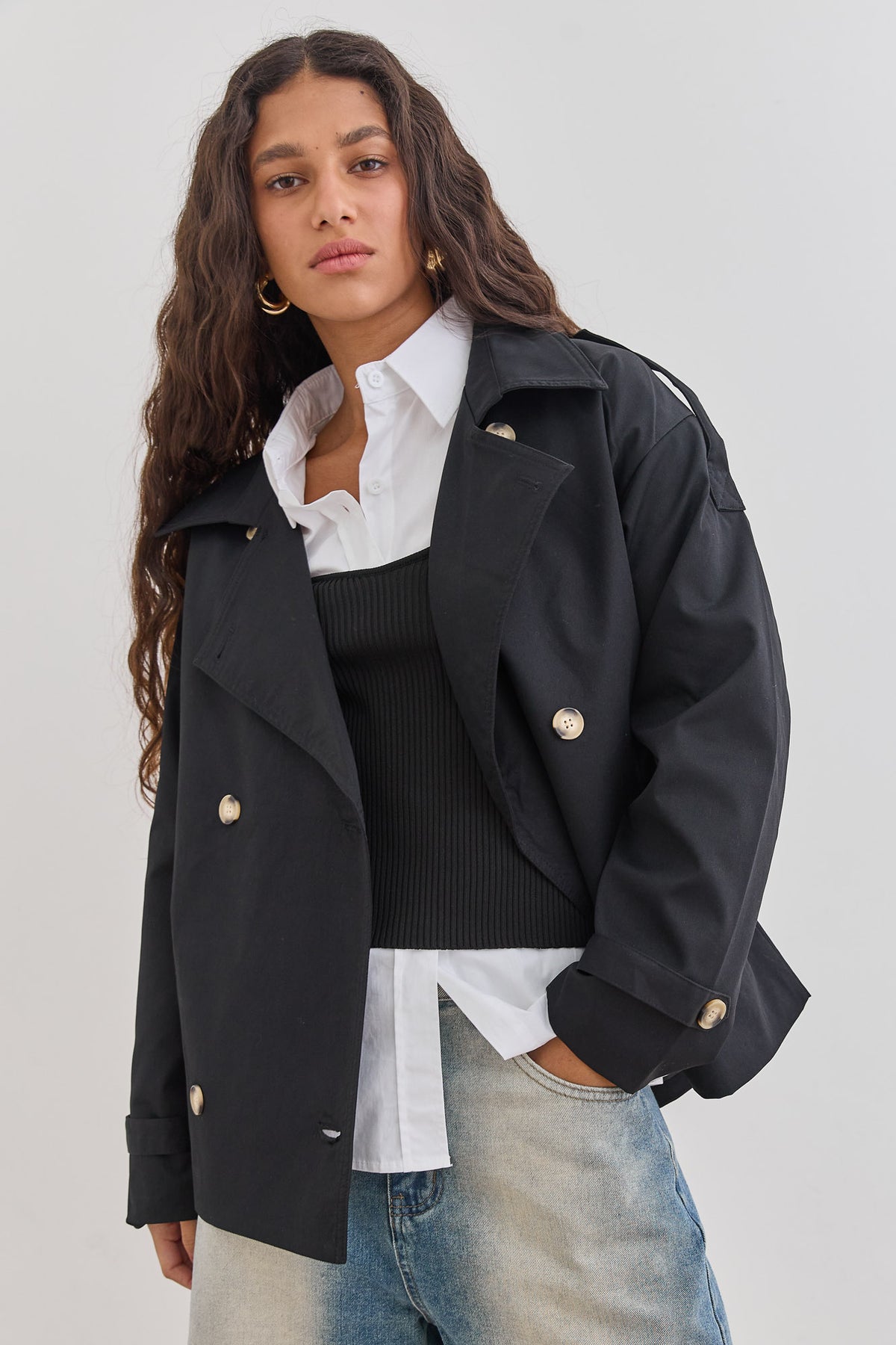 מעיל טראנץ' אורך מותן עם צווארון וכפתורים מנומרים